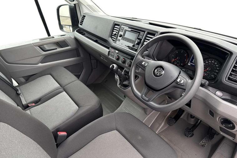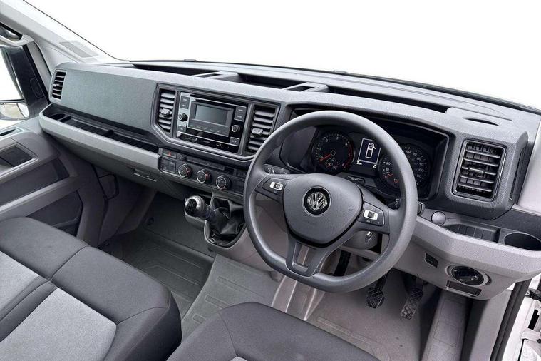 Bluetooth connectivity, Digital clock, Dimmable instrument illumination, Driver alert system, Front assist including city emergency braking, Headlight range control, Instrument cluster, Lights on warning buzzer, Lockable fuel cap, Multi function display/onboard computer medium, Rev counter, Service indicator, Start-stop system with regenerative braking, 2 cab doors, Cab rear panel without lining, Electric windows, Halogen twin headlights, Heat insulating windscreen, Integral step in front bumper, Low roof, Painted ladder carrier in front including cab guard, Radiator grille, Registration as truck, Right and left convex and wide angle exterior mirror, Roof lights on cab, Tinted laminated windscreen with top shade band, 2 sun visors folding and pivoted, Air recirculation system, Centre console storage tray, Dashboard, Document holder on centre console, Drinks holders, Electromechanical Servotronic steering, Electronically controlled heating system, Full steel bulkhead without window, Fully adjustable suspension type driver seat, Grab handle on B pillar, Grab handles on roof frame, Height adjustable head restraints, Height and reach adjustable steering wheel, Illuminated glove compartment with lockable lid, Interior roof trim, Phenolic resin coated birch, Preparation for interface for external use with terminal block, Recessed load down lashing rings, Rubber floor covering, Storage compartments in doors and in step, right, Storage tray on dashboard, Three level load lashing assembly, Non smoker pack, 3 point seat belts in front, Automatic hazard light with emergency braking, Central locking with radio remote control, interior controls without SAFELOCK, Height adjustable seatbelts for outer cab seats, Jack, Seat belt reminder with electric contact in buckle, Engine immobiliser, ABS, Automatic post collision braking system, EBA, EBD, EDL, ESP, Front disc brakes, HBA, Heavy duty front axle, Hill start assist, Parking brake - hill hold control, TCS, Hub cap, Low rolling resistance tyres,