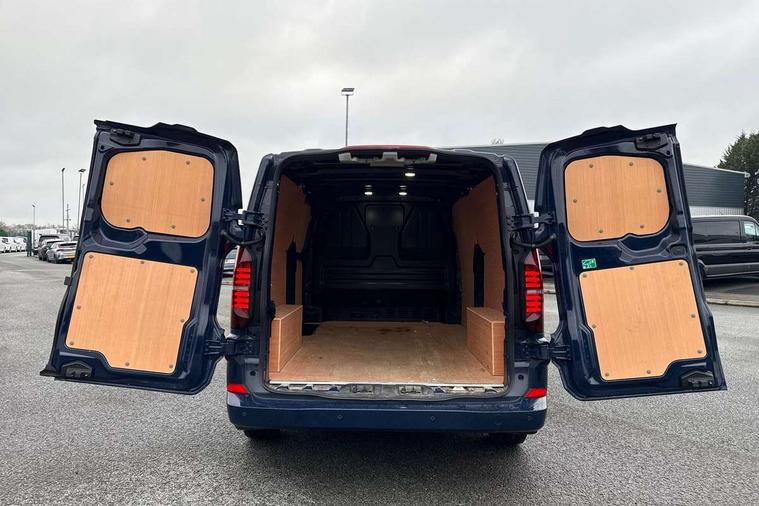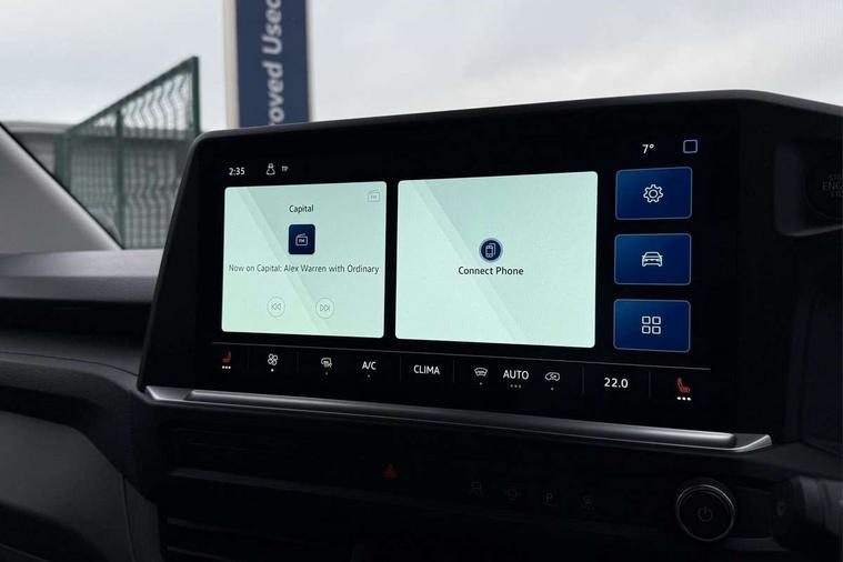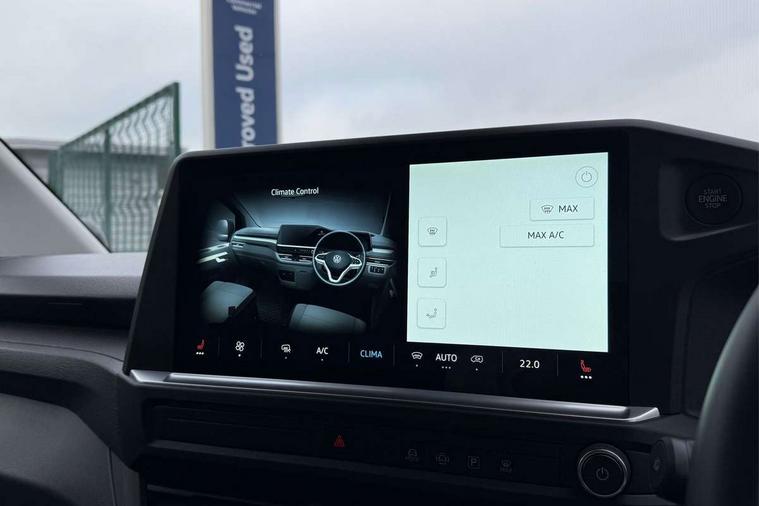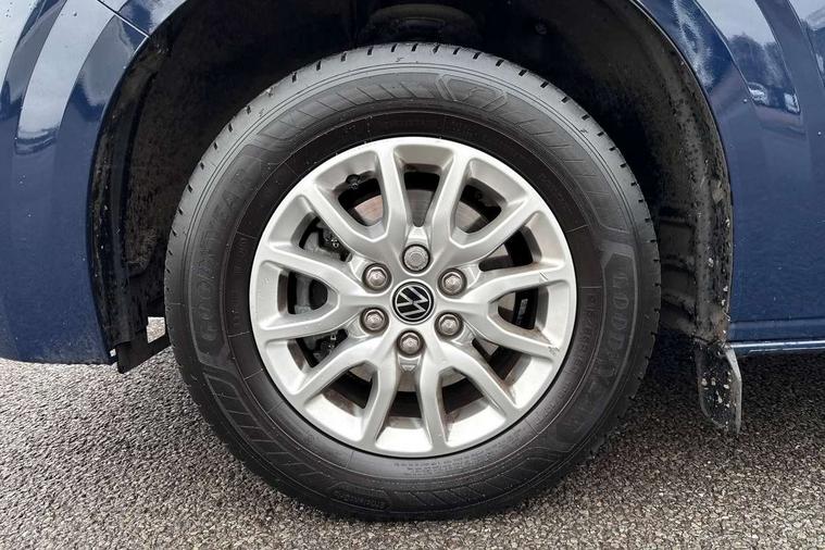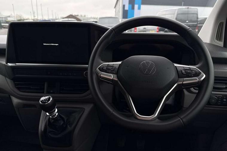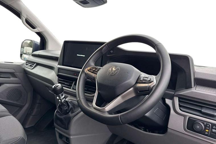 12" digital drivers display, 13" touchscreen infotainment display with wireless app connect and DAB radio, 5G Modem, Adaptive cruise control, Apple CarPlay and Android Auto, Dynamic road sign display, eCall emergency system, Electromechanical speed sensitive power steering, height and longitudinally adjustable steering column, Lane and blind spot assist with exit warning system, Preparation of VW connect and connect plus, Wireless mobile phone charging, Wrong way driver warning, Body colour bumpers, Body coloured door handles, Body coloured door mirrors, Body coloured radiator grille, Electrically heated, adjustable and folding door mirrors, Heat reflecting side window glass, Mud flaps front and rear, Rear Transporter nameplate in black grained decorative trim, Vehicle opening configuration 1x 1st row of seats, 2x all doors, 12V outlet in centre console and 12V outlet on rear right D-pillar, 2x 15-W USB data/charging ports in dashboard and 1x USB-C, 1x USB-A center bottom, 2x LED lights in load compartment, 3x additional super bright LED lights in load compartment, 4 way height and tilt adjustable head restraints, 5 additional USB-C charging ports, Black plastic scuff plate for sliding door in cargo without illumination, Cabin interior lighting, Glasses compartment in driver side roof, Grab handle on A-pillar passenger side, Illuminated lockable glovebox, Lashing rings for reinforced floor covering, Leatherette gear lever, Narrow centre console with cup holder and compartment for mobile phone, Overhead storage compartment, Rubber floor covering in cab, Striped fabric upholstery, Without passenger seats in load compartment, Driver and front passenger airbag with front passenger airbag deactivation, Dual tone horn, Front and curtain airbags for driver and front passenger, Seat belt pretensioner for driver seat, Anti theft alarm system with interior monitoring in cab, backup horn and towing protection, Electronic immobiliser, Lockable wheel bolts, Preparation for alcohol ignition interlock, 5+ Promise, Alternator - 230A, Electromechanical brake booster, Electronic stability control, ABS, ASR with deactivation button, hill start assist and brake assist system,