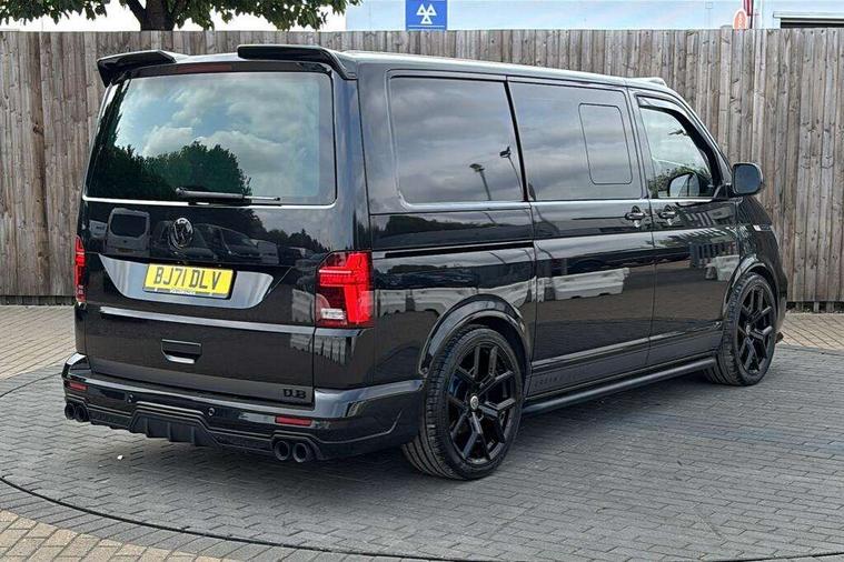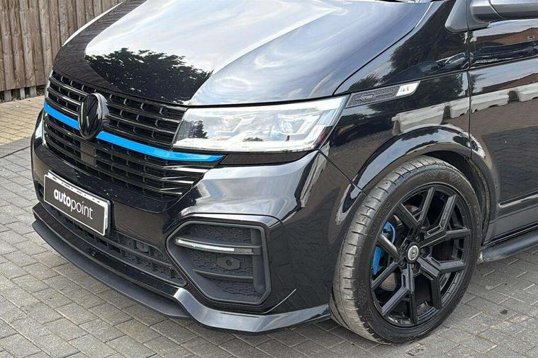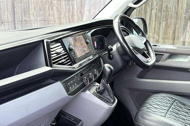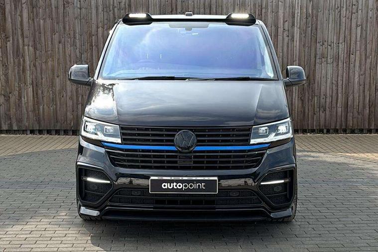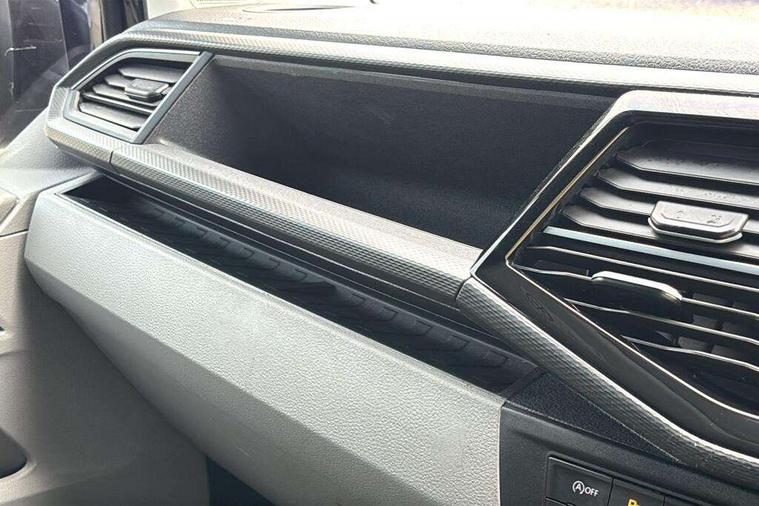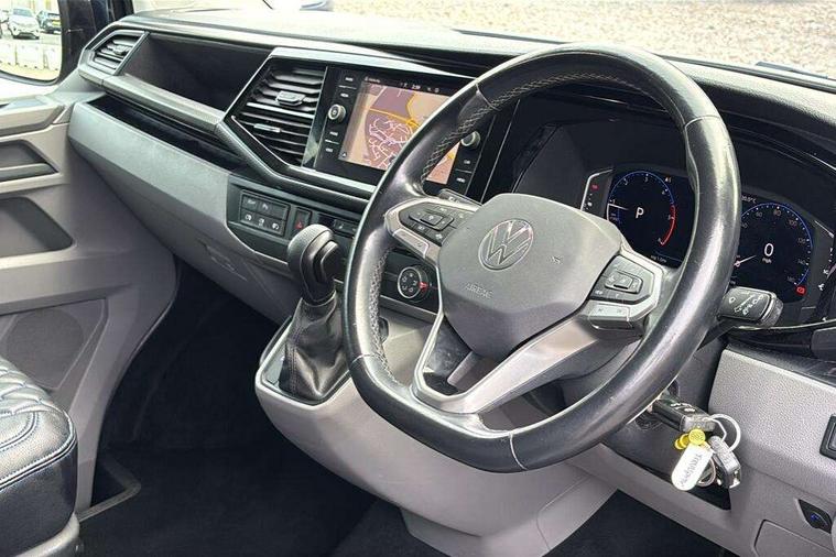 Adaptive cruise control, Child seat anchors ISOFIX and top tether in 2nd row of seats, Cross wind assist, Dimmable illuminated instruments, Driver alert with black and white multi function display plus, eCall emergency system, Electromechanical speed sensitive power steering, height and longitudinally adjustable steering column, Forward collision warning front assist with autonomous emergency braking, Headlight range control, Mobile phone interface, Without voice control, 2 USB interfaces type C in dashboard, 4 speakers with 2 tweeters and 2 woofers, Composition colour radio with 6.5" touchscreen, Digital radio reception (DAB+), Volkswagen app connect, Automatic headlight control, leaving home and manual coming home feature, Front fog lamps with cornering light, Green heat insulating glass, Heated front windscreen, Illuminated steps in passenger/load compartment, Left convex exterior mirror, Power adjustable and heated exterior mirrors, Power folding door mirrors, Privacy glass in passenger compartment, Radiator grille with 2 chrome trims, Rear window with heated insulating glass, heated rear window wiper and washer system, Right convex exterior mirror, Tailgate closing with unlatching from the inside, Tailgate with window aperture, Transporter nameplate on the rear fender, Windshield wiper intermittent control with rain sensor for windshield wipers, Without adhesive film, 3 spoke leather wrapped multi function steering wheel, Additional sound deadening measures in cab and passenger compartment, Auto dimming breakaway interior rear view mirror, Comfort headliner in cab, hardboard roof trim in passenger and load compartment, Dust/pollen filter, Folding grab handles and storage compartments on cab seats, reading light, Front seats on the right in 1st row of seat, Glove compartment with illumination, Heavy duty tool kit and jack, Interior plastic loading edge protection, Lashing rings for load restraint system, LED Interior lighting in load and passenger compartment, Medium height for vehicles with window aperture hardboard side trim panels in passenger/load compartment, Refrigerant R134a, Rubber floor covering in cab, Rubber floor covering in passenger/load compartment with loading edge protection in rear, Standard lower part dashboard in palladium, Without partition, Without seats in 3rd row of seats, Exterior pack without fog light- Transporter, Non smoker pack - Transporter, 3 point height adjustable seat belts on outer seats cab with electric pretensioners, Driver and front passenger airbag with front passenger airbag deactivation, Power operated child safety lock, Single tone horn, Warning buzzer and light for driver seat belt not fastened, Anti theft alarm system with interior monitoring in cab, backup horn and towing protection, Lockable wheel bolts, 16" chassis with 16" brake system, 70 L volume fuel tank, Additional 12V socket, Diesel particulate filter, Electronic stability control, ABS, ASR with deactivation button, hill start assist and brake assist system, Speed limiter, Start/stop system with regenerative breaking, 17" Devonport silver alloy wheels, Wheel trims,