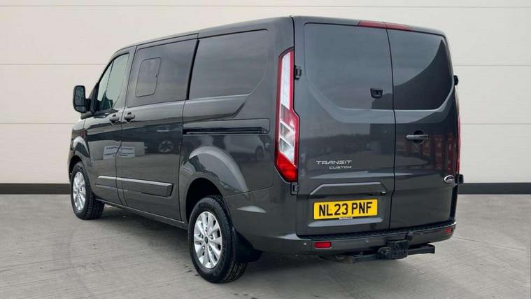 Easy fuel capless refuelling system, Embedded modem, Ford Eco mode, PAS, Selectable drive mode, Trip computer, Vehicle maintenance monitor, Audio controls mounted on steering wheel, 180 Degree rear cargo check arms, Automatic headlamps with follow me home, Automatic lights and wipers, Automatic windshield wiper, Body colour door handles, Body coloured body side mouldings, Body coloured door mirrors, Body coloured lift/decklid exterior handles, Body coloured rear bumpers, Chormed grille with 3 bars, Delete roof mounted turn signals, Door open tyre carrier drop, Driver only power front window with one touch down, Emergency brake light flashing, Headlamp levelling, High mounted stop lamp, Intermittent front wash/wipe, Intermittent variable windshield wiper, Kerbside side load doors, Low roof line, Passenger side sliding load door with track cover, Quad beam headlamps, Rear cargo hinged door, Rear door edge warn reflectors, Rear mudflaps, Rear splash guards, Restricted side load door opening, Tutone painted plastic front bumper, Wide bodyside body coloured moulding, 2 Interior grab handles, 2nd row three seat wide bench, 2nd/3rd Row courtesy light, 4 Load compartment tie down loops, Assist handle, B pillar assist handle, Cloth upholstery, Colour keyed exterior pack, Driver and passenger sunvisors with illuminated vanity mirrors, Extended carpet inside floor cover with rubber rear, Extended molded headliner, Floorwell lights, Front manual air conditioning, Front splash guards/Mud flaps, Glazed bulkhead, Header mounted courtesy lights - 2 map lights, Height adjustable head restraints, Illuminated footwell, Internal grab handles, Isofix child seat attachments - centre and offside 2nd row seats, LED load compartment light, Lockable glove box, Map reading lights, Molded gear shift knob, Passenger underseat storage box, Reach and rake adjustable steering column, Rear coat hook, Recirculation heater, Side rear door trim panel - Level 1, Sunglasses roof storage, Tool kit, Washer tank level warning lamp, Interior trim accent pack C - Transit custom, Rear seat pack 3 - Transit Custom, 3 point seatbelts for all seats, Drivers airbag, Dual note electric horn, Front active seat belts, Front passenger airbag restraint with driver/Passenger front seat belt buckle pretensioner and Passenger air bag deactivation, Height adjustable drivers seatbelt mount, Passenger seatbelt height adj, Rear seat belts, Seatbelt remainder for driver and passenger, Auto locking on drive-away, Auto relocking, Configurable unlocking 2, Locking wheel lug nut, Multi channel door entry remote and 3 Button key fob, Power door dead locks, Power lock group, Remote central locking, Thatcham category 1 alarm, Two step door unlock system, 2 12v sockets, 80 litre fuel tank, ABS, Auto start/stop system, Diesel particulate filter, ESP, ESP + EBA, Extra heavy duty alternator, Mechanical parking brake, Non limited slip front axle, Roll stability control, Side wind mitigation, Standard duty suspension, 16" 6.5 alloy wheels, Full wheelcovers,