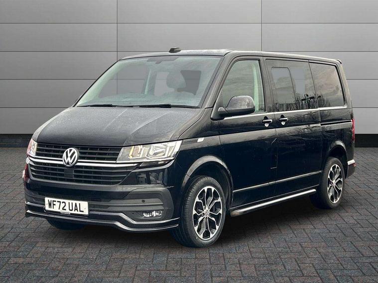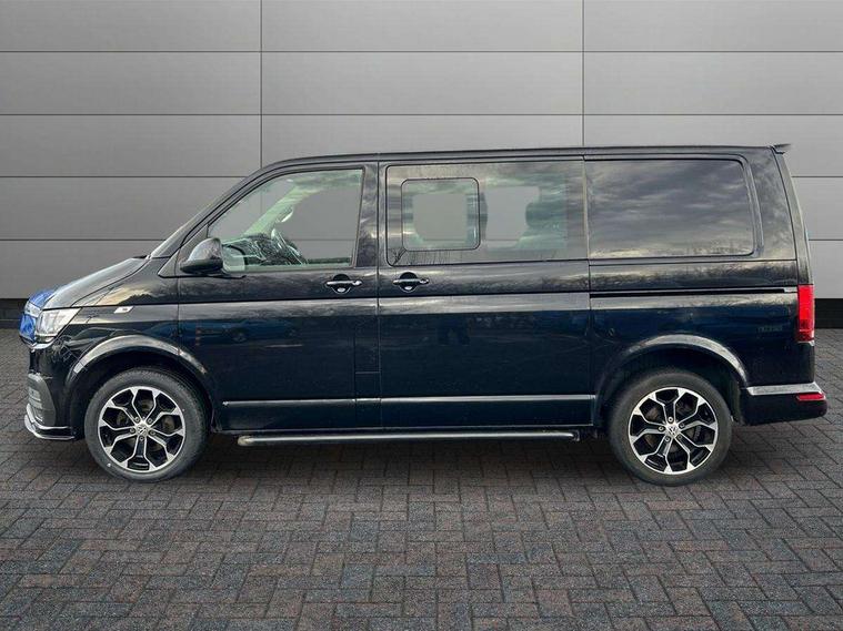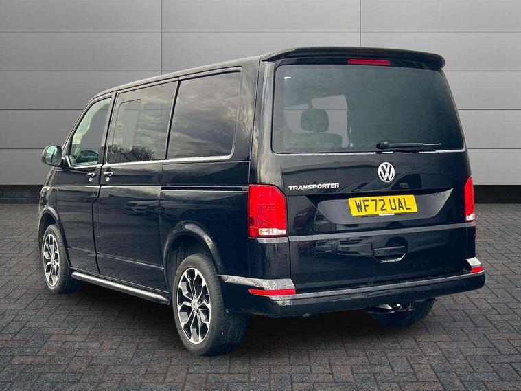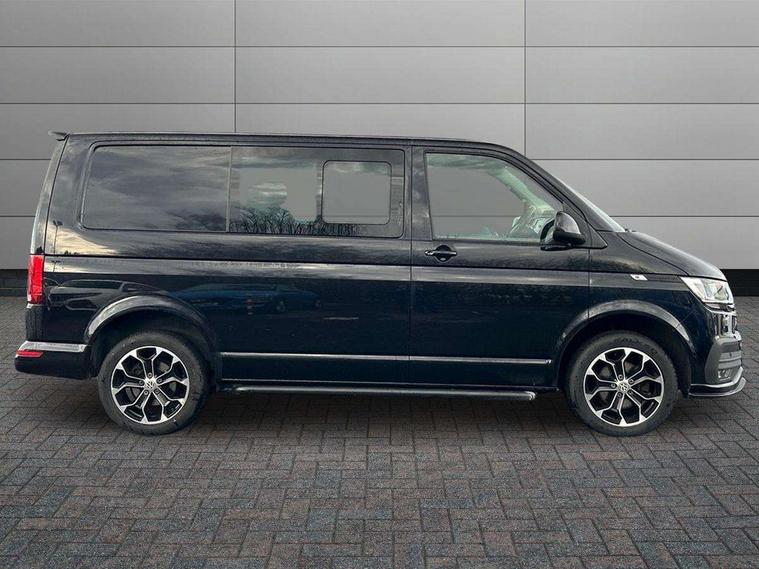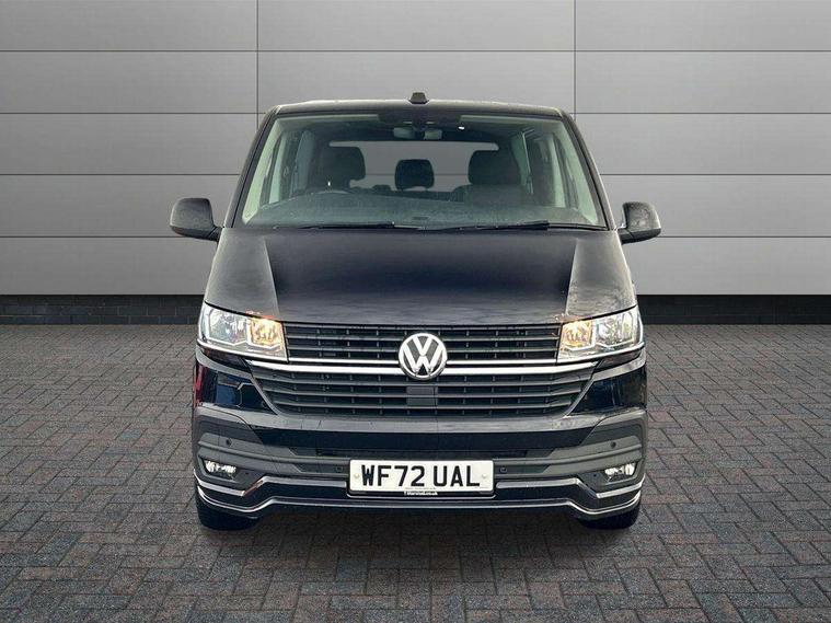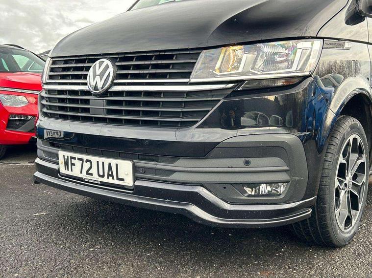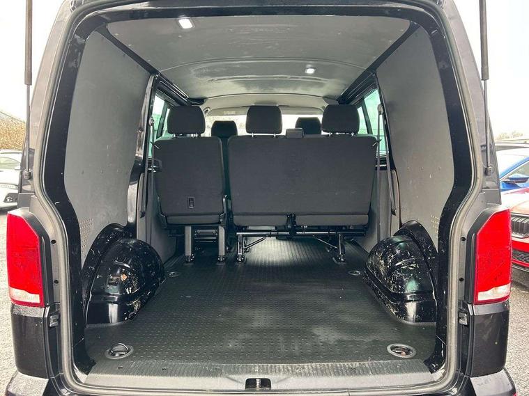 Adaptive cruise control, Child seat anchors ISOFIX and top tether in 2nd row of seats, Cross wind assist, Dimmable illuminated instruments, Driver alert with black and white multi function display plus, eCall emergency system, Forward collision warning front assist with autonomous emergency braking, Headlight range control, Mobile phone interface, Without voice control, 2 USB interfaces type C in dashboard, 4 speakers with 2 tweeters and 2 woofers, Composition colour radio with 6.5" touchscreen, Digital radio reception (DAB+), Volkswagen app connect, Automatic headlight control, leaving home and manual coming home feature, Front fog lamps with cornering light, Green heat insulating glass, Heated front windscreen, Illuminated steps in passenger/load compartment, Left convex exterior mirror, Power folding adjustable door mirrors with separately heated, Privacy glass from the B-pillar and heat-insulating glass in front, Radiator grille with 2 chrome trims, Rear window with heated insulating glass, heated rear window wiper and washer system, Right convex exterior mirror, Tailgate closing with unlatching from the inside, Transporter nameplate on the rear fender, Windshield wiper intermittent control with rain sensor for windshield wipers, Without adhesive film, 3 spoke leather wrapped multi function steering wheel, Additional sound deadening measures in cab and passenger compartment, Auto dimming breakaway interior rear view mirror, Comfort headliner in cab, hardboard roof trim in passenger and load compartment, Dust/pollen filter, Folding grab handles and storage compartments on cab seats, reading light, Front seats on the right in 1st row of seat, Glove compartment with illumination, Heavy duty tool kit and jack, Interior plastic loading edge protection, Lashing rings for load restraint system, LED Interior lighting in load and passenger compartment, Medium height for vehicles with window aperture hardboard side trim panels in passenger/load compartment, Refrigerant R134a, Standard lower part dashboard in palladium, Without partition, Without seats in 3rd row of seats, Comfort pack - Transporter, Exterior pack without fog light- Transporter, Light and vision pack - Transporter, Non smoker pack - Transporter, 3 point height adjustable seat belts on outer seats cab with electric pretensioners, Driver and front passenger airbag with front passenger airbag deactivation, Power operated child safety lock, Warning buzzer and light for driver seat belt not fastened, Anti theft alarm system with interior monitoring in cab, backup horn and towing protection, Lockable wheel bolts, 16" chassis with 16" brake system, Diesel particulate filter, Electronic stability control, ABS, ASR with deactivation button, hill start assist and brake assist system, Speed limiter, Start/stop system with regenerative breaking, 16" Clayton alloy wheels, Wheel trims,