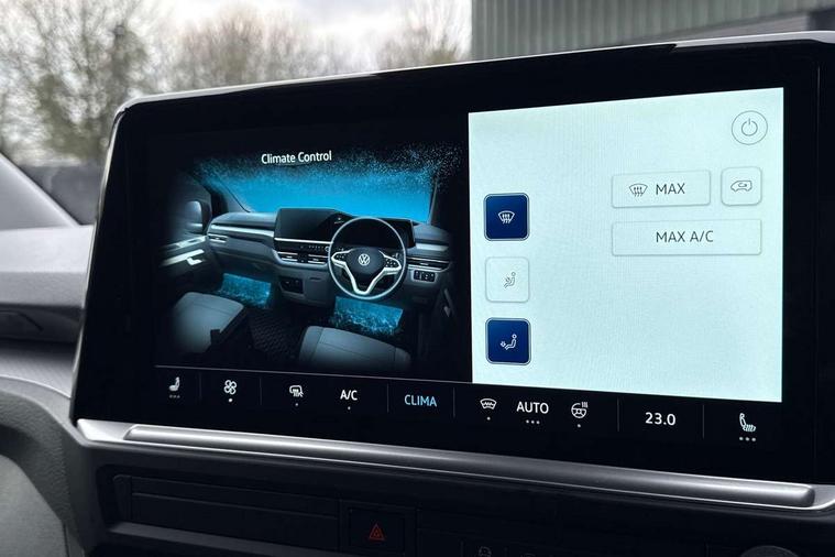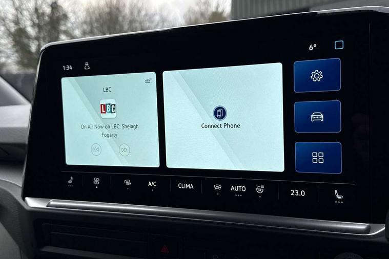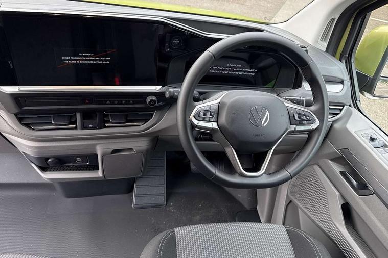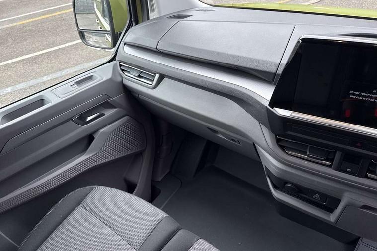 12" digital drivers display, 13" touchscreen infotainment display with wireless app connect and DAB radio, 5G Modem, Adaptive cruise control, Apple CarPlay and Android Auto, Dynamic road sign display, eCall emergency system, Electromechanical speed sensitive power steering, height and longitudinally adjustable steering column, Lane and blind spot assist with exit warning system, Preparation of VW connect and connect plus, Wireless mobile phone charging, Wrong way driver warning, Body colour bumpers, Body coloured door handles, Body coloured door mirrors, Body coloured radiator grille, Electrically heated, adjustable and folding door mirrors, Heat reflecting side window glass, Mud flaps front and rear, Rear Transporter nameplate in black grained decorative trim, Vehicle opening configuration 1x 1st row of seats, 2x all doors, 12V outlet in centre console and 12V outlet on rear right D-pillar, 2x 15-W USB data/charging ports in dashboard and 1x USB-C, 1x USB-A center bottom, 2x LED lights in load compartment, 3x additional super bright LED lights in load compartment, 4 way height and tilt adjustable head restraints, 5 additional USB-C charging ports, Black plastic scuff plate for sliding door in cargo without illumination, Cabin interior lighting, Glasses compartment in driver side roof, Grab handle on A-pillar passenger side, Illuminated lockable glovebox, Lashing rings for reinforced floor covering, Leatherette gear lever, Narrow centre console with cup holder and compartment for mobile phone, Overhead storage compartment, Rubber floor covering in cab, Striped fabric upholstery, Without passenger seats in load compartment, Driver and front passenger airbag with front passenger airbag deactivation, Dual tone horn, Front and curtain airbags for driver and front passenger, Seat belt pretensioner for driver seat, Anti theft alarm system with interior monitoring in cab, backup horn and towing protection, Electronic immobiliser, Lockable wheel bolts, Preparation for alcohol ignition interlock, 5+ Promise, Alternator - 230A, Electromechanical brake booster, Electronic stability control, ABS, ASR with deactivation button, hill start assist and brake assist system,