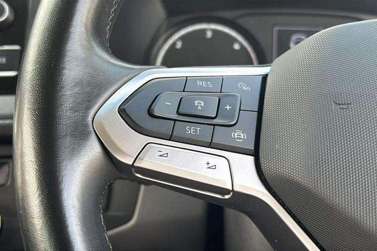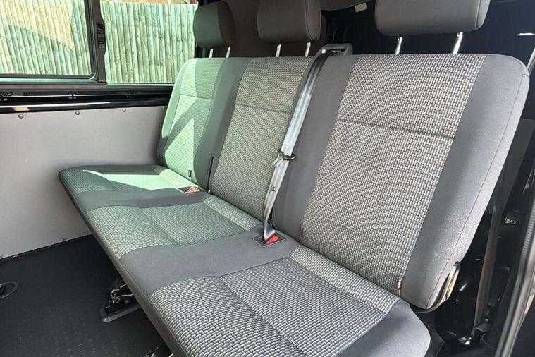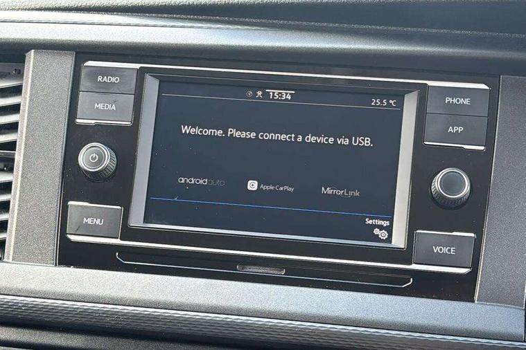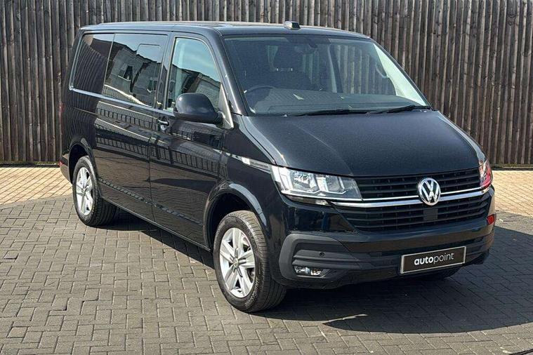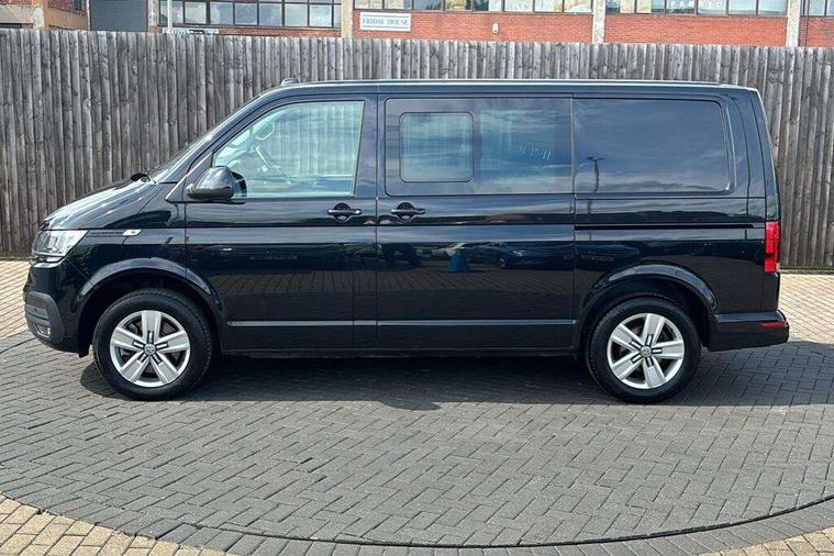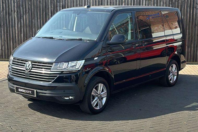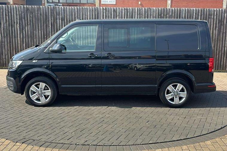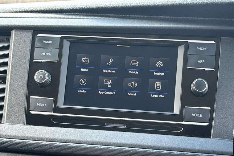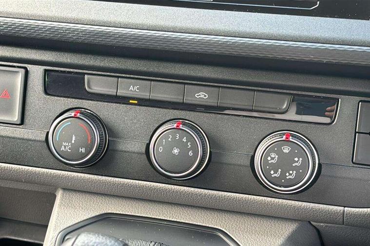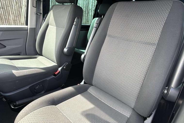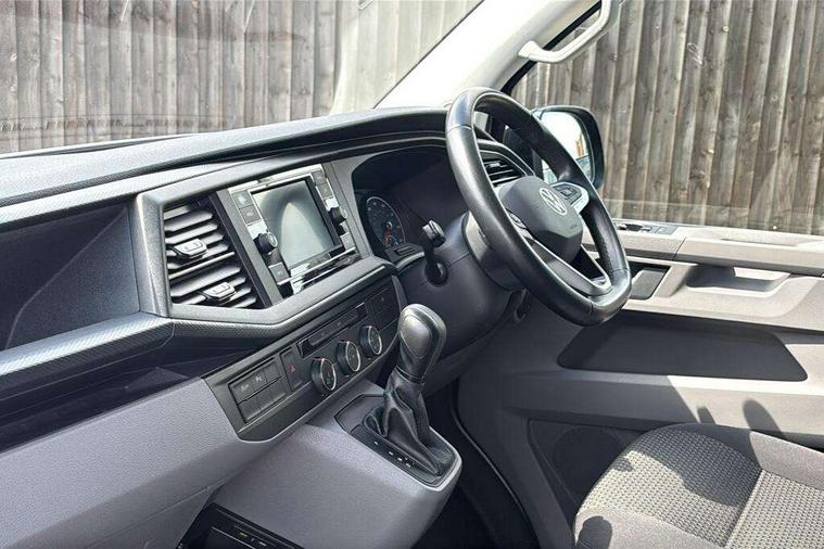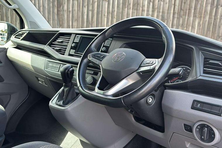 Adaptive cruise control, Child seat anchors ISOFIX and top tether in 2nd row of seats, Cross wind assist, Dimmable illuminated instruments, Driver alert with black and white multi function display plus, eCall emergency system, Forward collision warning front assist with autonomous emergency braking, Headlight range control, Mobile phone interface, Without voice control, 2 USB interfaces type C in dashboard, 4 speakers with 2 tweeters and 2 woofers, Composition colour radio with 6.5" touchscreen, Digital radio reception (DAB+), Volkswagen app connect, Automatic headlight control, leaving home and manual coming home feature, Front fog lamps with cornering light, Green heat insulating glass, Heated front windscreen, Illuminated steps in passenger/load compartment, Left convex exterior mirror, Power folding adjustable door mirrors with separately heated, Privacy glass from the B-pillar and heat-insulating glass in front, Radiator grille with 2 chrome trims, Rear window with heated insulating glass, heated rear window wiper and washer system, Right convex exterior mirror, Tailgate closing with unlatching from the inside, Transporter nameplate on the rear fender, Windshield wiper intermittent control with rain sensor for windshield wipers, Without adhesive film, 3 spoke leather wrapped multi function steering wheel, Additional sound deadening measures in cab and passenger compartment, Auto dimming breakaway interior rear view mirror, Comfort headliner in cab, hardboard roof trim in passenger and load compartment, Dust/pollen filter, Folding grab handles and storage compartments on cab seats, reading light, Front seats on the right in 1st row of seat, Glove compartment with illumination, Heavy duty tool kit and jack, Interior plastic loading edge protection, Lashing rings for load restraint system, LED Interior lighting in load and passenger compartment, Medium height for vehicles with window aperture hardboard side trim panels in passenger/load compartment, Refrigerant R134a, Standard lower part dashboard in palladium, Without partition, Without seats in 3rd row of seats, Comfort pack - Transporter, Exterior pack without fog light- Transporter, Light and vision pack - Transporter, Non smoker pack - Transporter, 3 point height adjustable seat belts on outer seats cab with electric pretensioners, Driver and front passenger airbag with front passenger airbag deactivation, Power operated child safety lock, Warning buzzer and light for driver seat belt not fastened, Anti theft alarm system with interior monitoring in cab, backup horn and towing protection, Lockable wheel bolts, 16" chassis with 16" brake system, Diesel particulate filter, Electronic stability control, ABS, ASR with deactivation button, hill start assist and brake assist system, Speed limiter, Start/stop system with regenerative breaking, 17" Devonport silver alloy wheels, Wheel trims,