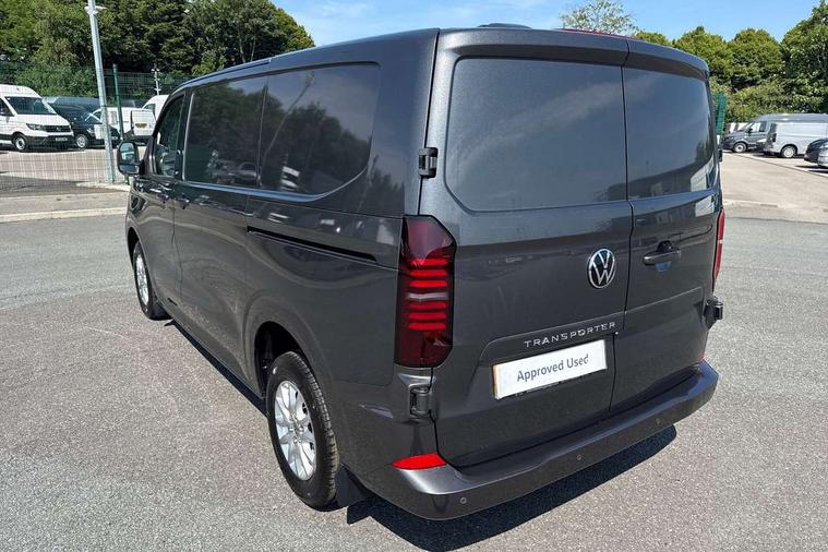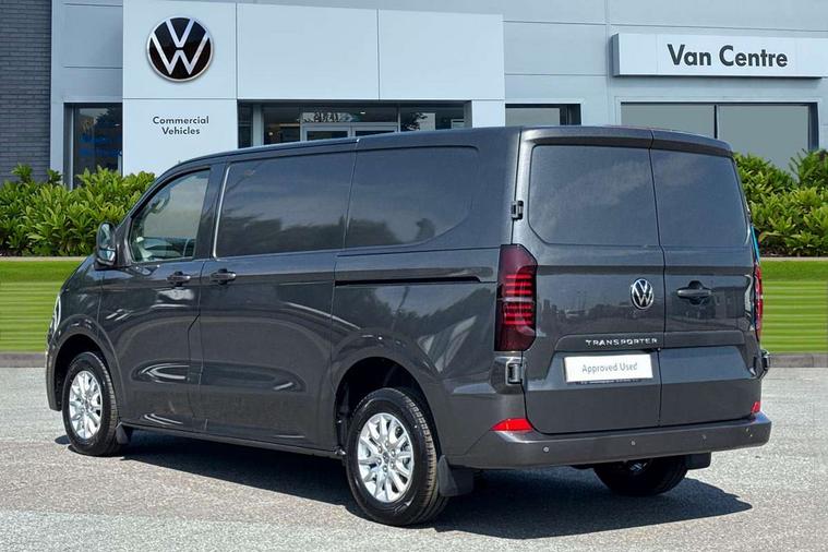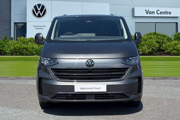 12" digital drivers display, 13" touchscreen infotainment display with wireless app connect and DAB radio, 5G Modem, Adaptive cruise control, Apple CarPlay and Android Auto, Dynamic road sign display, eCall emergency system, Electromechanical speed sensitive power steering, height and longitudinally adjustable steering column, Lane and blind spot assist with exit warning system, Preparation of VW connect and connect plus, Wireless mobile phone charging, Wrong way driver warning, Body colour bumpers, Body coloured door handles, Body coloured door mirrors, Body coloured radiator grille, Electrically heated, adjustable and folding door mirrors, Heat reflecting side window glass, Mud flaps front and rear, Rear Transporter nameplate in black grained decorative trim, Vehicle opening configuration 1x 1st row of seats, 2x all doors, 12V outlet in centre console and 12V outlet on rear right D-pillar, 2x 15-W USB data/charging ports in dashboard and 1x USB-C, 1x USB-A center bottom, 2x LED lights in load compartment, 3x additional super bright LED lights in load compartment, 4 way height and tilt adjustable head restraints, 5 additional USB-C charging ports, Black plastic scuff plate for sliding door in cargo without illumination, Cabin interior lighting, Glasses compartment in driver side roof, Grab handle on A-pillar passenger side, Illuminated lockable glovebox, Lashing rings for reinforced floor covering, Leatherette gear lever, Narrow centre console with cup holder and compartment for mobile phone, Overhead storage compartment, Rubber floor covering in cab, Striped fabric upholstery, Without passenger seats in load compartment, Driver and front passenger airbag with front passenger airbag deactivation, Dual tone horn, Front and curtain airbags for driver and front passenger, Seat belt pretensioner for driver seat, Anti theft alarm system with interior monitoring in cab, backup horn and towing protection, Electronic immobiliser, Lockable wheel bolts, Preparation for alcohol ignition interlock, 5+ Promise, Alternator - 230A, Electromechanical brake booster, Electronic stability control, ABS, ASR with deactivation button, hill start assist and brake assist system,