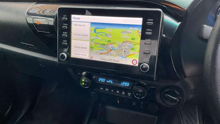 4.2" Multi information display, Bluetooth connectivity, Front and rear parking sensors, Fuel heater, Intelligent adaptive cruise control, Lane departure warning system, Lights on warning buzzer, PAS, Pre-collision system with pedestrian detection, Rear view camera, Road sign assist, Smart phone integration with Android auto & Apple CarPlay, Static guidelines on rear view camera, Tachometer, Touch 2 multimedia system with 8" display + GO navigation system, Digital radio (DAB), MP3 compatibility, Steering wheel mounted audio controls, USB connector, Auto Headlights, Automatic headlamp levelling, Black door handles, Black door mirrors, Black side steps, Body coloured front bumper, Dark grey rear bumper, Emergency brake light assist (EBS), Follow me home headlights, Front power windows with auto up and down function, Front wiper De-icer, Green tinted glass, Headlight cut-off reminder, Headlight washers, Heated door mirrors, Heated rear window, Invincible exterior - front bumper, body mouldings, tailgate handle, LED Daytime running lights, LED dual beam projector headlights, LED front fog lights, LED rear lights, Mud flaps front and rear, Power rear side window, Power retractable door mirrors, Rear fog lights, Rear window privacy glass, Tailgate damper, Trailer sway control, Underbody protection cover, Variable front wipers, Windscreen shadeband, 220V power socket, 60/40 split tip-up rear bench seat, Ambient door lighting, Automatic air conditioning, Carpet covered floor, Centre console coolbox, Centre console with lid, storage and armrest, Cooler in upper glove box, Heated front seats, Heated rear seats, Inner load hooks on cargo deck, Leather steering wheel and gearshift lever, Leather upholstery, Locking glovebox, Power adjustable drivers seat, Rear passenger footwell heating, Tilt adjustable steering wheel, Automatic front passenger airbag on/off switch, Child proof rear door locks, Front passenger airbag detector, Front seatbelt pre-tensioners + force limiters, Front seatbelt reminder, Isofix child seat preparation, Rear seatbelt pre-tensioners with load limiters, Supplement restraint system (SRS) 7 airbags - driver and passenger, knee, side and curtain, Immobiliser, Lockable tailgate, Remote central locking, Smart entry and start system button, 2 12v sockets, ABS with EBD, Auto limited slip differntial, Brake assist, Downhill Assist Control (DAC), Hill start assist, Load sensing proportioning system, Rear differential lock with auto disconnect, Stop/start function, Traction control, Vehicle stability control, 18" alloy wheels, Full size alloy spare wheel, Highway terrain tyres,