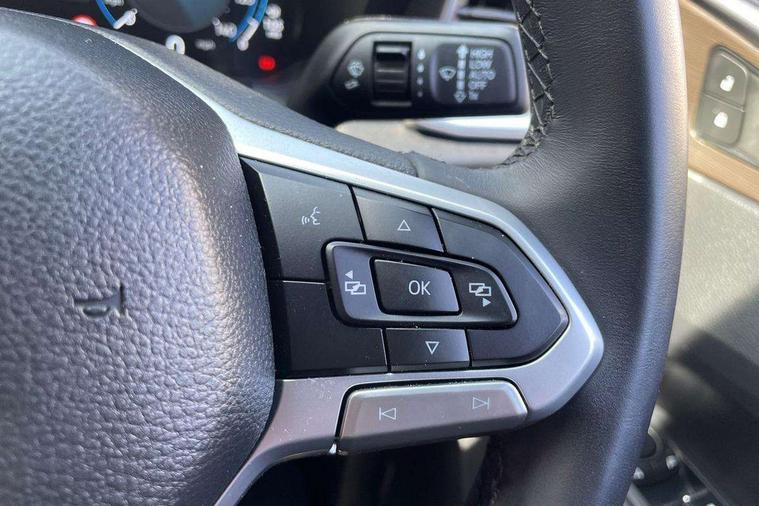 12-inch Infotainment system, Adaptive cruise control ACC with predictive speed limiter, Area View 360 camera, Autonomous emergency braking front assist with monitoring and braking for vehicles, pedestrians, cyclists, Digital Cockpit 12-inch, Dynamic road sign display, eCall emergency system, Lane keeping system lane assist and lane change system side assist, Navigation system, Park assist including park distance control in front and rear, rear traffic alert, PAS, Selector lever, Without manual activation of 360-degree surround and cargo area lighting, Without tachograph, Without trailer maneuvering system Trailer Assist, 1 USB charging socket on the interior rearview mirror, 6 speakers, AM / FM antenna and digital radio reception DAB+, Preparation for VW Connect Basic and VW Connect Navigation, Advanced high-beam control Dynamic Light Assist for IQ.LIGHT LED matrix headlamps, Black bumper in rear with chrome-plated styling elements, Body coloured exterior mirror housings and door handles, Body coloured front bumper, Body-colored rear gate handle, Chrome styling roll bar, Dark-tinted privacy glass rear side windows and rear window, Diversity antenna, Dynamic headlight range control, Exterior mirrors, power-adjustable, heated and power-folding, with surround lighting, Front and rear power windows, Fuel filler door with integrated misfueling prevention device, Heated rear window, IQ Light LED matrix headlamps, LED front fog lamps, LED rear combination lamps, Mud flaps front and rear, Radiator grille with chrome bezel, Satin air vents, Step with chrome insert, Trailer hitch preparation, Windshield sound-insulating with windshield heater, Windshield wiper intermittent control with rain sensor, Without hardtop, Without roof rails/roof rack, Without towing eyes in rear, Without trailer hitch, Without underride guard, 10-way power-adjustable driver seat and 8-way adjustable front passenger seat, 3 head restraints in 2nd row of seats, 3 point belts in addition height-adjustable in 1st row of seats, 3-point belts in 2nd row of seats, 3-seater bench in 2nd row of seats, Ambient lighting, Art velours upholstery, Carpet floor covering, Center armrest in rear, Child seat anchors ISOFIX on outer rear seats, i-Size compatible, Child seat recognition, Door handles in chrome, Driver seat with map pocket, Dual-zone climate control Climatronic, Gearshift/selector lever knob, leather, Glove compartment, illuminated and lockable, Headliner ebony black, Heating and fresh air system, Inductive charging feature, Leather-wrapped multi-function steering wheel, Overhead console 2 reading lights for driver and front passenger with glasses compartment in overhead console, Premium dashboard in leather look vinyl, Refrigerant, Roof grab handle on driver side, rigid grab handles, on A-pillar, Seat belt pretensioner, Seat occupied recognition with seat belt reminder for driver, front passenger and rear seat area, Sun visor on driver and front passenger side with illuminated vanity mirror, Tie-downs on the cargo area, Top tether child safety seat anchorage, Velour floor mats, Without hand brake lever, Without LED cargo area lighting, Without load compartment cover, Without load compartment loadliner, Without load support including protection frame on the rear cabin wall, Rear seat package II, Curtain and side airbags with center airbag, Front passenger airbag deactivation, Knee airbags for driver and front passenger, Without fire extinguisher, Without first aid kit, Anti-theft alarm system with interior monitoring, backup horn and towing protection, Keyless locking and starting system Keyless Access with SAFELOCK and 2 remote control folding keys, Online anti-theft alarm system, Rear gate lockable via central locking system, Remote control key, Tire Pressure Monitoring System (direct measurement), Wheel lock for spare wheel, Wheel locks, With programmable key, 120-V/230-V outlet in rear center console and cargo area, 3.55 gear ratio, Alternator - 250A, Automatic post collision braking system, Electronic parking brake, Electronic stability control (ESC) and Electromechanical brake booster, Emission standard, Four-wheel drive, Particle filter, Standard suspension, Stop/start function, Without differential lock in rear, Without electrical interface for external use, 6 switches in overhead console, 18" Amadora silver alloy wheels, Alloy spare wheel,