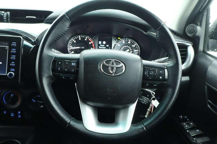 4.2" Multi information display, Bluetooth connectivity, Fuel heater, Intelligent adaptive cruise control, Lane departure warning system, Lights on warning buzzer, PAS, Pre-collision system with pedestrian detection, Rear view camera, Road sign assist, Smart phone integration with Android auto & Apple CarPlay, Static guidelines on rear view camera, Tachometer, Touch 2 multimedia system with 8" display, 6 speakers, Digital radio (DAB), MP3 compatibility, USB connector, Auto Headlights, Black side steps, Body coloured front bumper, Chrome door handles, Chrome door mirrors, Chrome rear bumper, Chrome trim on radiator grille, Daytime running lights, Electric front windows with one touch drivers window, Emergency brake light assist (EBS), Follow me home headlights, Green tinted glass, Headlamp levelling, Headlight cut-off reminder, Headlight washers, Heated door mirrors, Heated rear window, LED front fog lights, Mud flaps front and rear, Multi reflector halogen headlights, Power rear side window, Power retractable door mirrors, Rear fog lights, Rear window privacy glass, Trailer sway control, Underbody protection cover, Variable front wipers, Windscreen shadeband, 220V power socket, 60/40 split tip-up rear bench seat, Carpet covered floor, Centre console coolbox, Centre console with lid, storage and armrest, Cloth upholstery, Cooler in upper glove box, Driver seat height adjuster, Inner load hooks on cargo deck, Leather steering wheel and gearshift lever, Locking glovebox, Manual air conditioning, Rear seat tip-up function, Tilt adjustable steering wheel, Automatic front passenger airbag on/off switch, Child proof rear door locks, Front passenger airbag detector, Front seatbelt pre-tensioners + force limiters, Front seatbelt reminder, Isofix child seat preparation, Rear seatbelt pre-tensioners with load limiters, Supplement restraint system (SRS) 7 airbags - driver and passenger, knee, side and curtain, Immobiliser, Lockable tailgate, Remote central locking, 2 12v sockets, ABS with EBD, Auto limited slip differntial, Brake assist, Downhill Assist Control (DAC), Hill start assist, Load sensing proportioning system, Rear differential lock with auto disconnect, Stop/start function, Traction control, Vehicle stability control, All terrain tyres, Full size steel spare wheel,