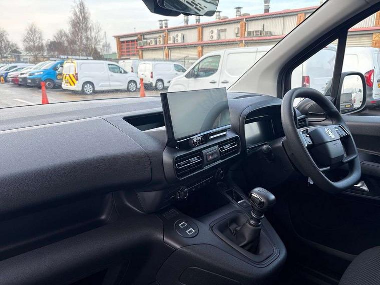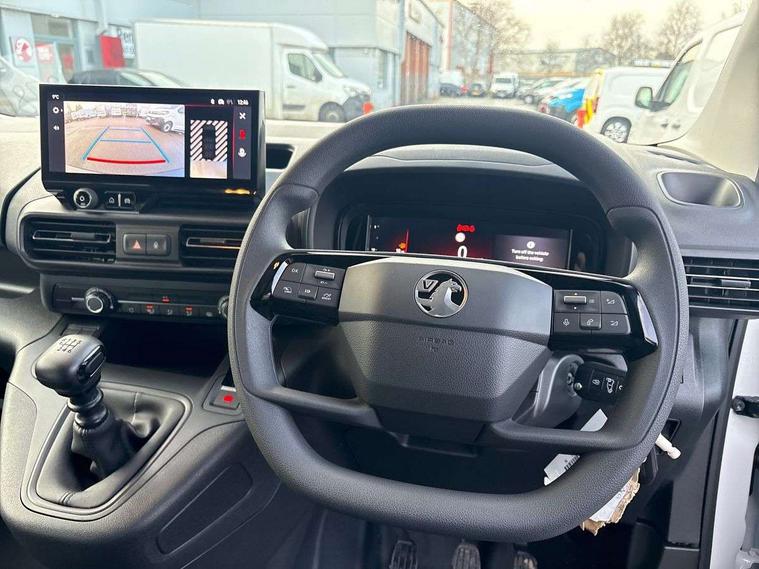 10" digital instrumental cluster, Central facia display with audio information, clock and outside air temperature, Cruise control with speed limiters, Driver attention alert, e-Call and b-Call, Intelligent speed assistant, Lane keep assist, Lights on audible warning, Multi-function trip computer, Rear parking distance sensors, Speed sensitive electric power assisted system, Vauxhall connect, Apple Carplay/Android Auto, Bluetooth A2DP audio streaming, Multimedia mid audio system - 10" HD touch screen, AM/FM/DAB, wifi mirroring, bluetooth, USB, 2 speakers and 2 tweeters, Phone book access, RDS with Traffic Programme, Steering wheel mounted audio and phone controls, Vehicle microphone, Asymmetrical solid panel rear doors, Automatic on/off headlight control, Black door handles, Black front bumper, Black rear bumper, Black sliding door rail cover, Daytime running lights, Eco LED headlamps, Electrically adjustable + heated door mirrors, Electrically operated front windows with safety autoreverse one touch facility, Flexible roof mounted aerial, Hazard warning lights, High beam assist, Magic wash system, Nearside sliding side access door, Reversing lights, Side protection mouldings, Solar heat absorbing windscreen, Tinted windows, Two speed windscreen wipers with variable intermittent wipe, 12 volt socket in dashboard, 6 way adjustable drivers seat with lumbar, Air recirculation system, Black air vents, Black interior door handles, Comfort driver seat, Driver and front passenger sun visor and vanity mirror on rear of drivers sunvisor, Driver's armrest, Driver's top lidded glovebox, Fabric upholstery, Hard plastic floor protection in cabin, Manual air conditioning, Overhead storage shelf in cabin, Reach and rake adjustable steering column, Six Fixed floor mounted load restraint lashing eyes, Sport steering wheel, Flex cargo pack - Combo, 3x3 point rear seatbelts, Deactivation switch for front passenger airbag and side impact airbag, Driver and front passenger airbags, side impact airbags and curtain airbags, Energy absorbing steering column, Side impact protection beams, Reinforced passenger safety cell and front and rear deformation zones, Front body lock diagonal seatbelt pretensioner system, Front seatbelt force limiters, Height adjustable front seatbelts, Seatbelts with action, Tyre pressure monitoring system, 2 folding keys with integral remote control function, Dashboard mounted central locking push button and auto locking above 7mph, Electronically protected audio, Engine deadlock immobiliser, Remote central locking and deadlocks, Remote control operates on doors and fuel filler, Visible Vehicle Identification Number (VIN), Advanced emergency braking system (AEBS), Anti-lock braking, Anti-roll bar, Electric parking brake, Electronic brake force distribution, Electronic Stability Control (ESC) with traction control, Engine drag torque control, Hill start assist, Independent MacPherson front suspension with gas pressure dampers and linear-rate coil springs, Rear torsion beam with gas pressure dampers and variable rate coil springs, 16" Steel wheels with centre caps, Goodyear tyres,