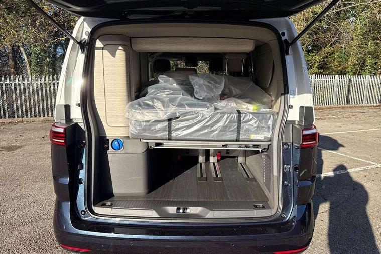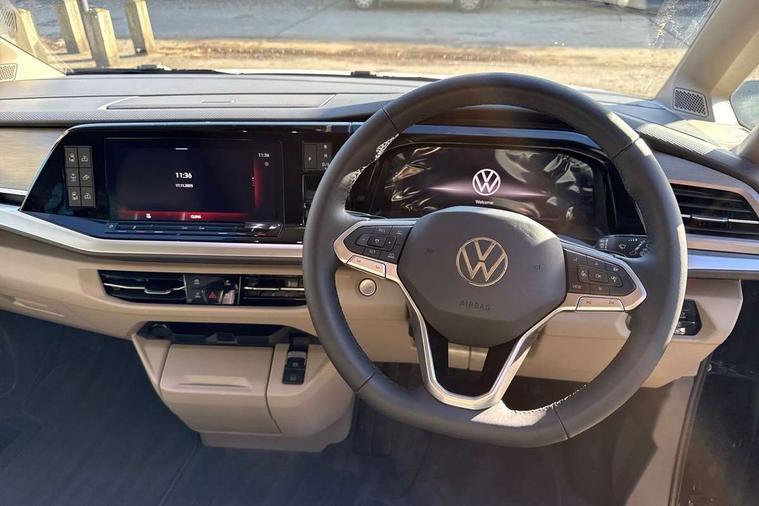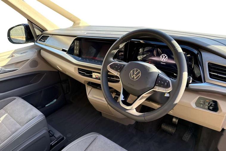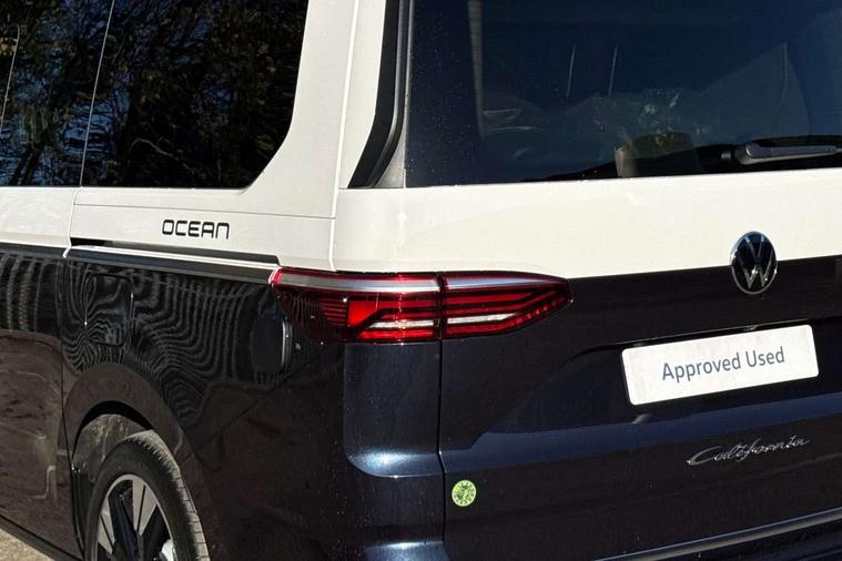 Advanced driver attention and drowsiness monitor, California on tour app, Digital cockpit pro, Discover Pro Navigation system, Driving profile selection, Dynamic road sign display, eCall emergency system, Emergency assist, Front cross traffic assist, Function control unit, IDA voice assistant and voice enhancer, Lane keeping system Lane Assist, Mobile phone interface, Motorhome Registration, Multifunction camera, PAS, Preparation for online services, Preparation for We connect and We connect plus, Servotronic speed sensitive power steering, Speed limiter and predicative speed limiter, Tailgate latching without unlatching function from inside, Tailgate with window aperture and with power latching, Travel assist, Turn assist with evasive assistance, Volkswagen wired and wireless app connect, Alternator 180A, 2nd and 3rd auxiliary batteries with low -voltage converter, Battery 380 A (68 Ah), Battery without capacity specification, Standard battery/generator, Standard suspension and shock absorption, 10.4 inch infotainment system with scalable module options, 2 USB-C ports at the front, 4 USB-C charging sockets in the passenger compartment, 8 Speakers, Digital radio reception (DAB), Dynamic headlight range control, Electro hydraulic elevating roof, with three windows including one front passengers panorama opening, canvas in Basalt Grey, Four speed control for windscreen wipers, Gloss black grille with 2 illuminated chrome trim, Heat and sound insulating laminated safety glass windshield, Heated windscreen, High gloss black door mirrors, Illuminated molding between headlamps, LED 3rd brake light, Nameplate set California, Poor weather light including cornering light, Rear boot, Red LED tail lights, Sliding window in front with fly screen in passenger compartment left/right & including privacy glass in rear, Windscreen wiper intermittent control, 2 single seats with integrated seatbelt and sleeping mat, 230V external inlet with charging feature for vehicle batteries, 230V inverter with socket on driver seat, Additional interior noise attenuation, Ambient interior lighting, Armrest on front swivel seats in both sides with electric lumbar support, Camper parking heater for continuous operation & parking heater for windshield defrosting with radio remote control, Darkening roller blinds and thermo mats, Drawers under the outer seats in the cab and passenger compartment & 2 waste bins, Front and rear headrests, Heated front seats, Heated steering wheel, Kitchen with outdoor folding table for cooking and roof storage box in décor 2, Lockable glove compartment with lighting, Luggage compartment with power latching, Multifunction leather steering wheel with paddle shifters, Reinforced plastic floor covering in wood look, Single front passenger seat, Storage compartment left and right 1st row of seats, Summer kitchen with outside folding table and 230-V outlet for cooking and roof storage box, Surround lighting in door area, Swivel seat on left with height adjustable including drawer, Swivel seat on right with height adjustable including drawer, Velour floor mats in cab, Without loading edge protection, Without luggage compartment cover, Advanced assistance pack - California, Top package - California, 2x3 point automatic seatbelts at the rear outside with ECE label, with/without belt tensioner, Autonomous emergency braking, Child locks, Driver and front passenger airbags with front passenger airbag deactivation button, First aid kit with warning triangle and safety vest, Front Assist with pedestrian and cyclist detection, Front disc brakes, Height adjustable three point automatic seatbelts at front with belt and end fitting tensioners, Occupants detection only display, Side and curtain airbags for driver and front passenger, curtain airbags for outer seats in rear, centre airbag in front, Swerve support and oncoming vehicle braking when turning, Tyre pressure loss indicator, Warning signal and warning lamp for front and rear seat belts not fastened, Anti theft alarm system with interior monitoring in cab, backup horn and towing protection, Central locking + keyless locking and starting system Keyless Advanced with safe lock, Lockable wheel bolts, Preparation for alcohol interlock, 5+ Promise service plan, Dark silver brushed decorative inlays, 235/50 R18 tyres with low rolling resistance, Tool kit, Trims for alloy wheels, Tyre mobility kit, Without spare wheel,