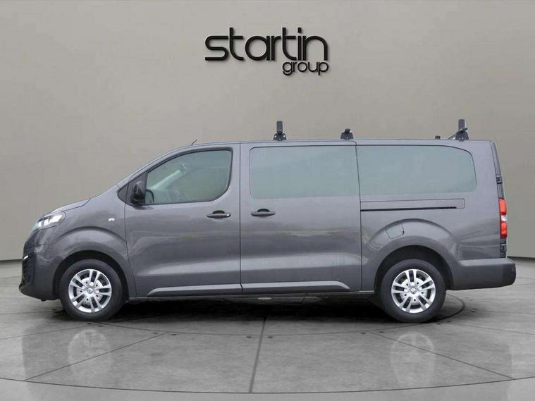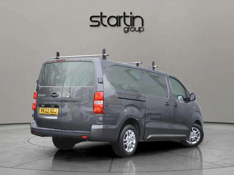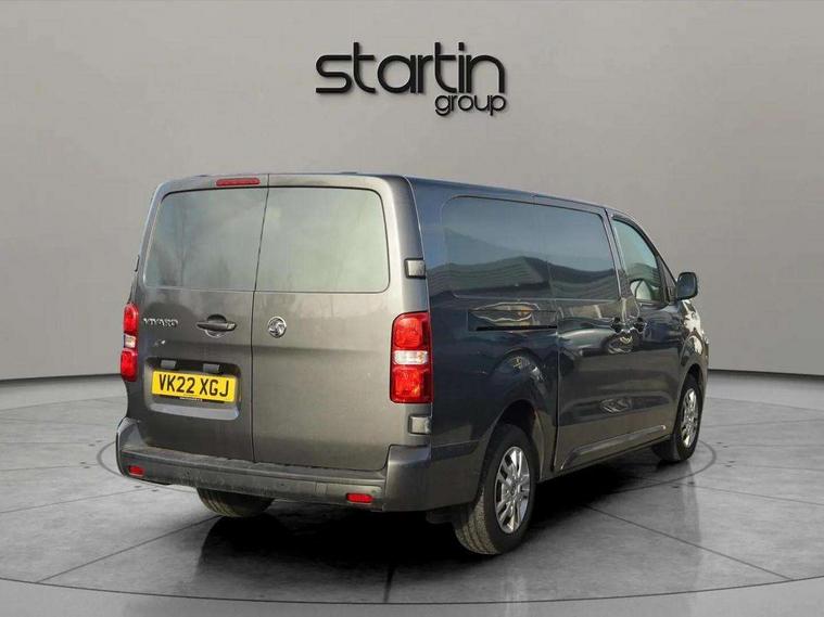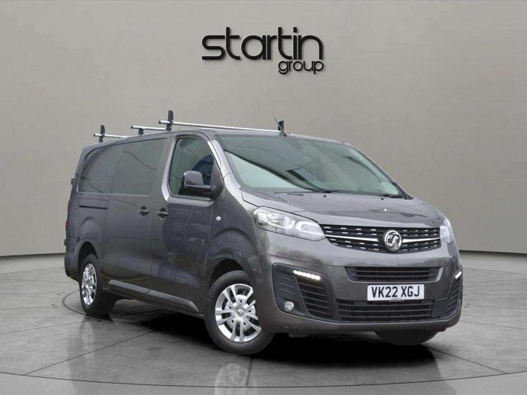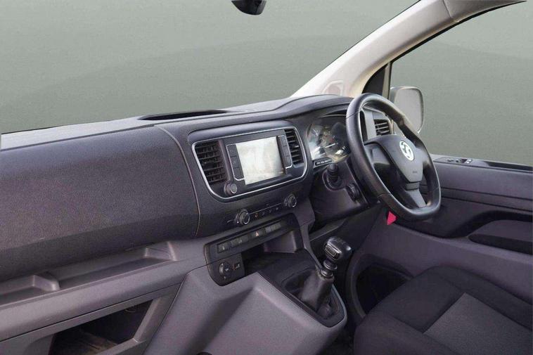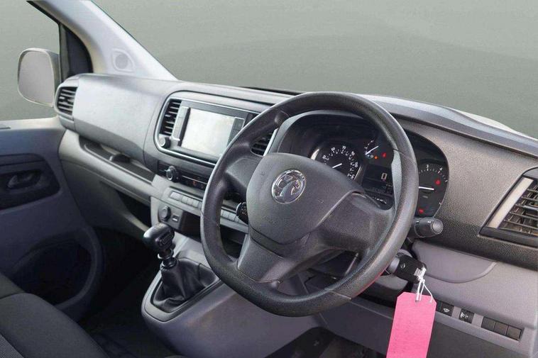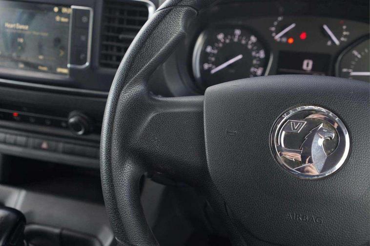 Driver drowsiness system, e-Call and b-Call, Hydraulic power assisted rack and pinion system, Instrumentation - Speedometer, rev counter, fuel gauge with low fuel warning light and coolant temperature warning light, Multi function trip computer, trip odometer, vehicle range, average speed, driving time, average and instantaneous fuel economy, Multimedia 7"colour touch, AM/FM stereo, DAB, RDS traffic prog, 4 speakers, USB, Bluetooth A2DP audio stream, mircrophone, Applecarplay/Androidauto, phone book, PAS, Rear parking distance sensor, Steering wheel mounted audio and phone controls, Body coloured door handles, Electric front windows with one touch up/down facility, Electrically adjustable + heated door mirrors, Flexible roof mounted aerial, Front cornering lights, Front fog lights, Halogen headlights, High beam assist, Lights on audible warning, reversing light, hazard warning, rear fog light, high level brake light and side repeat indicator, Side protection mouldings, Air conditioning with air recirculation facility, pollen filter, illuminated controls and chilled glovebox facility, Cab soundproofing, Curitiba cloth upholstery with vinyl side bolsters, Driver seat - Height, reach, backrest recline, lumbar adjustment, driver's seat armrest and padded head restraint, 6 way adjustable drivers seat, Facia storage-upper glovebox, open lower glovebox with 12v socket and aux-in , lower shelf, A4 storage on top, two drink holders, pocket in gear lever, Fixed dual front passenger bench seat and backrest with underseat storage and height adjustable front padded head restraints, Fixed floor mounted load restraint lashing eyes x8, FlexCargo load through bulkhead, Fold flat centre seat backrest, Front door pockets - three separate compartments in each door, Full height steel bulkhead without window, Mistral Black/Grey facia and door trim, Reach and rake adjustable steering wheel and facia mounted gear lever, Three spoke steering wheel with satin chrome effect bezel, Appearance pack - Vivaro L2, Visibility Pack - Vivaro, 3 point seat belts, Driver airbag and front passenger airbag with deactivation switch, Height adjustable outer front seatbelts, Inertia reel lap and diagonal seatbelts for all seats, Seatbelt remainder for driver and passenger, Electronic engine deadlock immobiliser, steering column lock, lockable fuel filler cap and anti theft spare wheel cradle, Remote control door locking, selective door locking, two keys with integral remote and door deadlocks, Security alarm system with monitors doors, tailgate, bonnet and the passenger compartment, 22.5 litres AdBlue tank, 70L fuel tank, Electronic brake force distribution, Emergency brake assist, Engine start/stop system, ESP plus + traction control, Floor mounted handbrake lever, Four channel Anti lock braking system, Front ventilated and rear disc brakes, Hill start assist, Six speed manual gearbox, Speed limiter, 16" steel wheels with full diameter wheel trims,