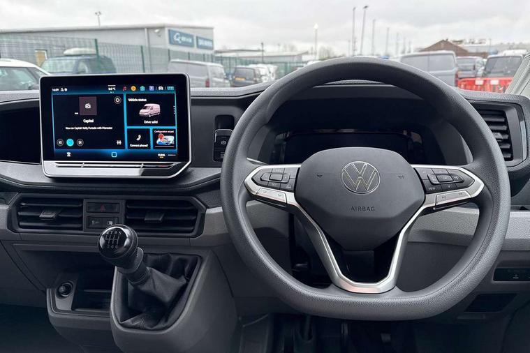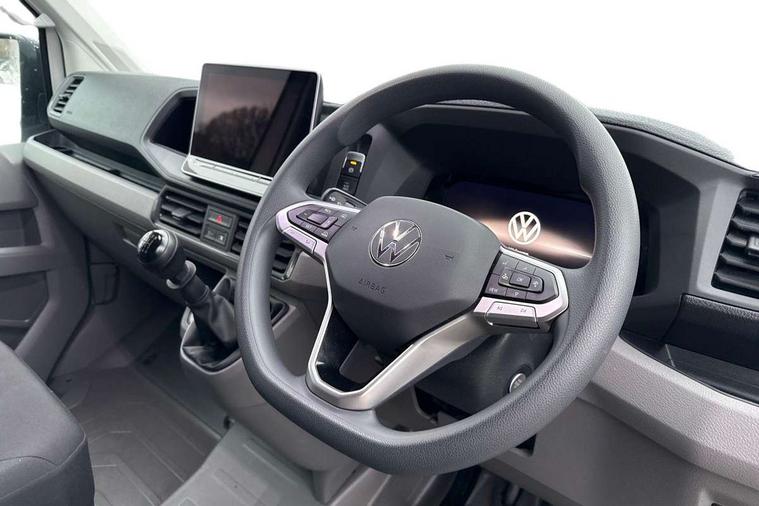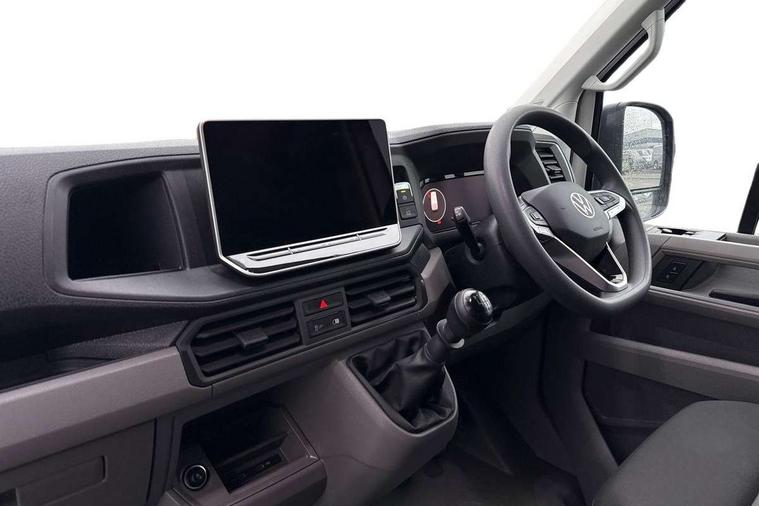Bluetooth, Digital clock, Driver alert system, E-call + We connect basic preparation, Instrument cluster, Lights on warning buzzer, Locking fuel cap, Multi-function Display Plus, Rev counter, Service indicator, Speedometer, Voice control system, Composition media with 6.5" with we connect plus prep, 4 speaker, multifun display plus, USB, mob interface, app con, "We connect function", DAB Radio, Auto low beam mode, Leaving home function and manual coming home function, Cab doors, Convex and wide angle mirror, Driver seatbelt warning light, Electric windows, Electrically heated and adjustable door mirrors, Half painted front bumper, Heat insulating glass, Indicators in front door mirrors, One towing eye in front, Rear wing doors with 270 degree hinges, Special identification plate, Unpainted radiator grille, Air recirculation system, Ashtray, Centre console storage tray, CFCU preparation, Charcoal filter, Climatic air conditioning, Document holder on centre console, Drinks holders, Electromechanical Servotronic steering, Electronically controlled heating system, Fully adjustable suspension type driver seat, Grab handles on rear entry pillars, Height adjustable head restraints, Height and reach adjustable steering wheel, Illuminated glove compartment with lockable lid, Interior light, including 2 reading lights, Interior light, switchable by door, Jack and tool kit, Preparation for interface for external use with terminal block, Storage compartments in doors and in step, right, Storage tray on dashboard, Two 12V outlets in the cab (in the dashboard), Without rear side trim panel passenger load compartment, Non-smokers pack - Crafter, 3 point inertia reel belt on all seats, Automatic hazard light with emergency braking, Crosswind assist, Driver and front passenger airbag with front passenger airbag deactivation, Height adjustable seatbelts for outer cab seats, 1 rigid key, Anti-theft alarm with interior monitor, back up horn and tow away protect, overhead storage with two 1-DIN, reading light, SAFELOCK with 2 remote keys, Engine immobiliser, ABS, Automatic post collision braking system, EBA, EBD, EDL, ESP, Front disc brakes, HBA, Hill start assist, Parking brake - hill hold control, Start and stop system with regenerative braking, TCS, Hub cap covers,