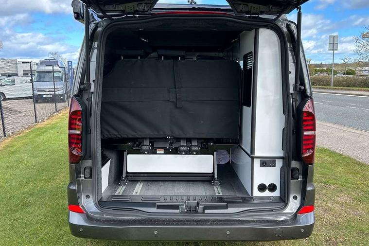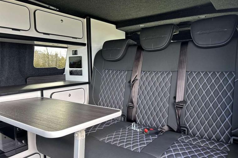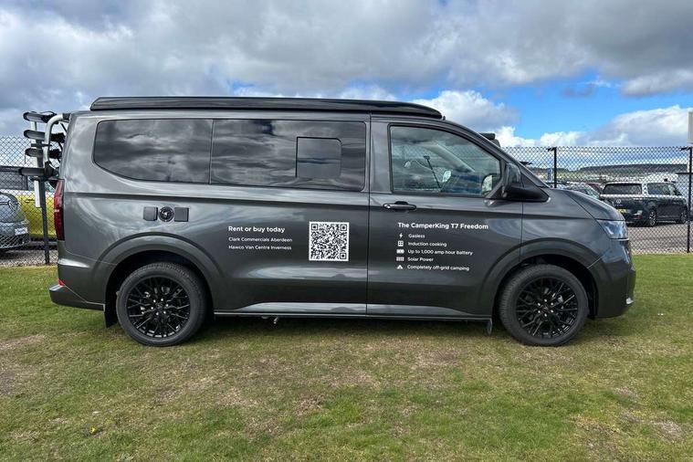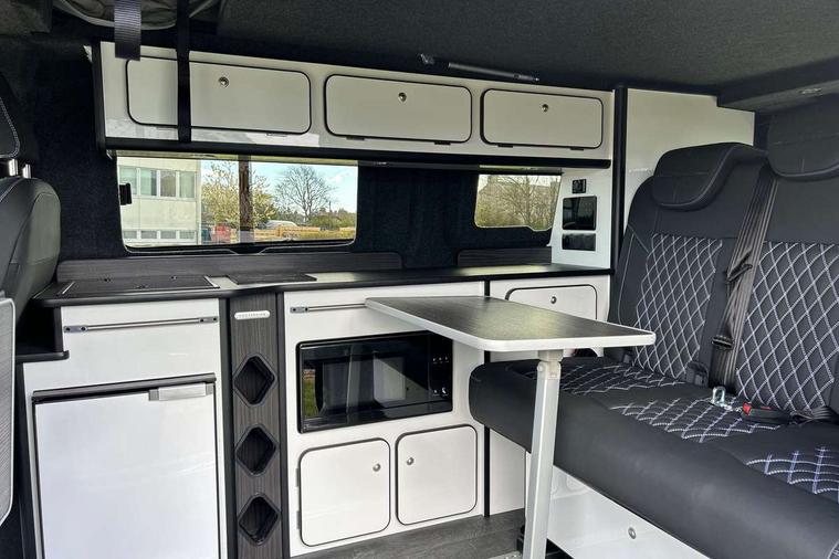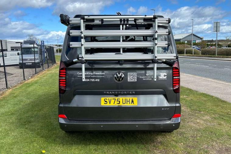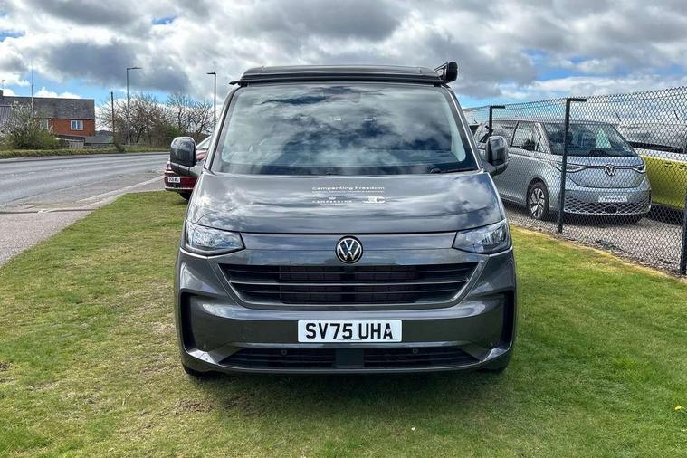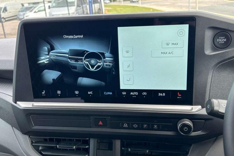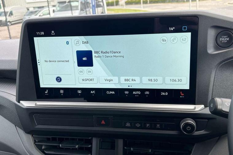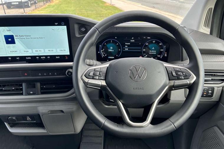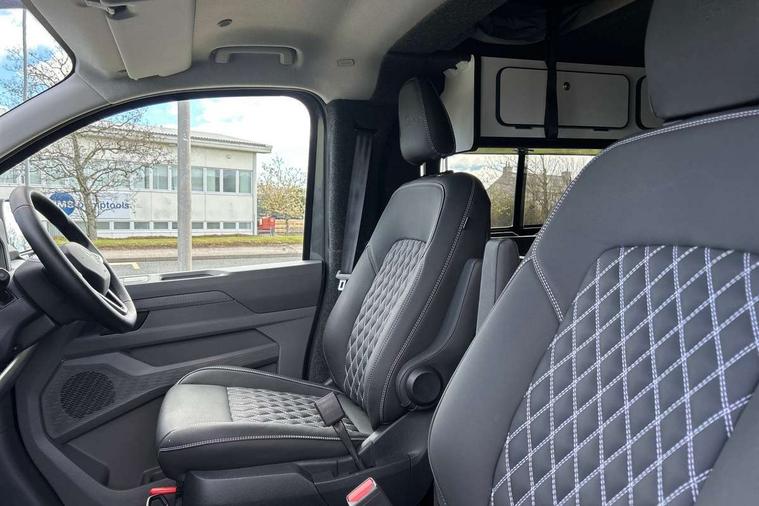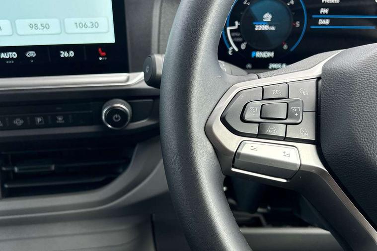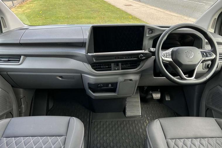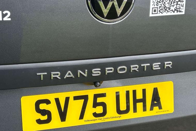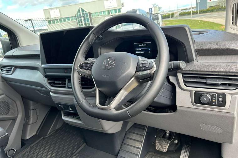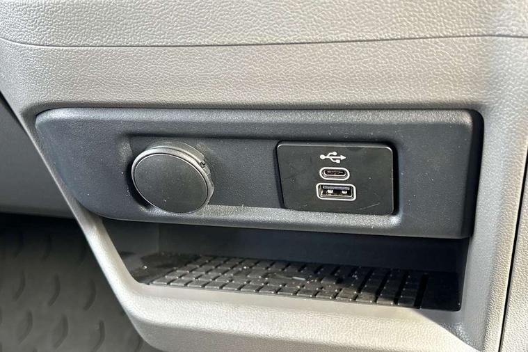 12" digital drivers display, 13" touchscreen infotainment display with wireless app connect and DAB radio, 5G Modem, Apple CarPlay and Android Auto, Cruise control, Dynamic road sign display, eCall emergency system, Electromechanical speed sensitive power steering, height and longitudinally adjustable steering column, Lane assist, Preparation of VW connect and connect plus, Wrong way driver warning, 4 speakers - 2x dashboard, 2x cab doors, Body coloured door handles, Heat reflecting side window glass, Mud flaps front and rear, Rear Transporter nameplate in black grained decorative trim, Vehicle opening configuration 1x 1st row of seats, 2x all doors, 2x 15-W USB data/charging ports in dashboard and 1x USB-C, 1x USB-A center bottom, 2x LED lights in load compartment, 3 spoke leather wrapped multi function steering wheel, 4 way height and tilt adjustable head restraints, Black plastic scuff plate for sliding door in cargo without illumination, Cabin interior lighting, Gear selector lever on steering wheel, Lashing rings for reinforced floor covering, Narrow centre console with cup holder and compartment for mobile phone, Overhead storage compartment, Roof grab handle on front passenger side, Rubber floor covering in cab, Striped fabric upholstery, Without passenger seats in load compartment, Driver and front passenger airbag with front passenger airbag deactivation, Dual tone horn, Front and curtain airbags for driver and front passenger, Seat belt pretensioner for driver seat, Anti theft alarm system with interior monitoring in cab, backup horn and towing protection, Electronic immobiliser, Preparation for alcohol ignition interlock, 5+ Promise, Alternator - 230A, Electronic stability control, ABS, ASR with deactivation button, hill start assist and brake assist system,