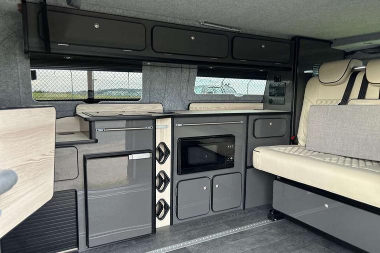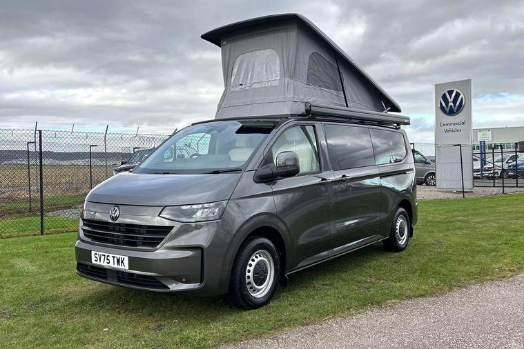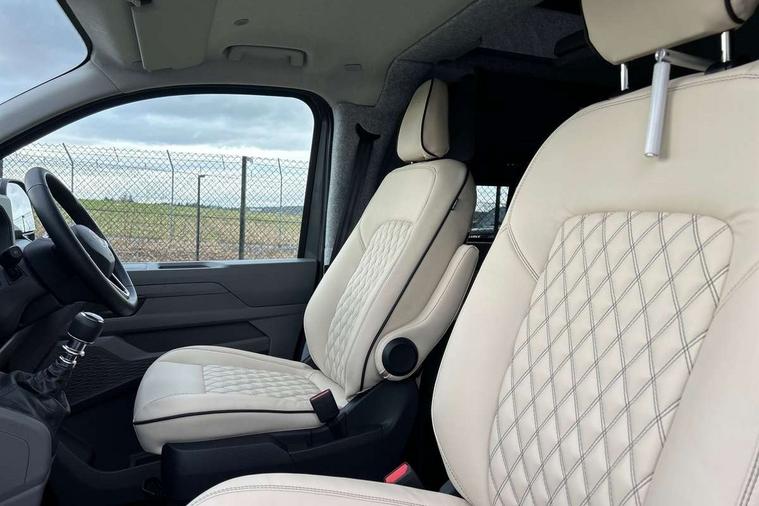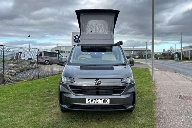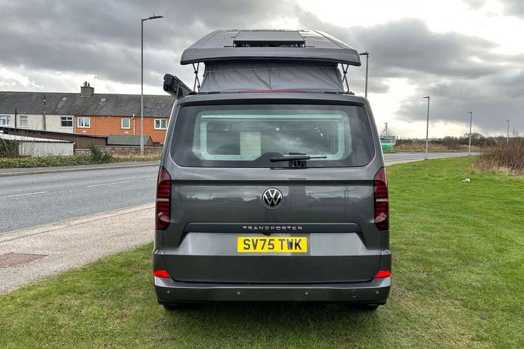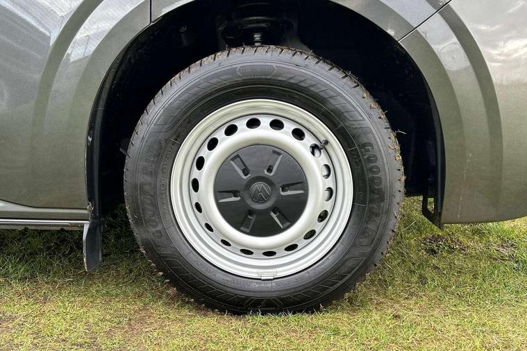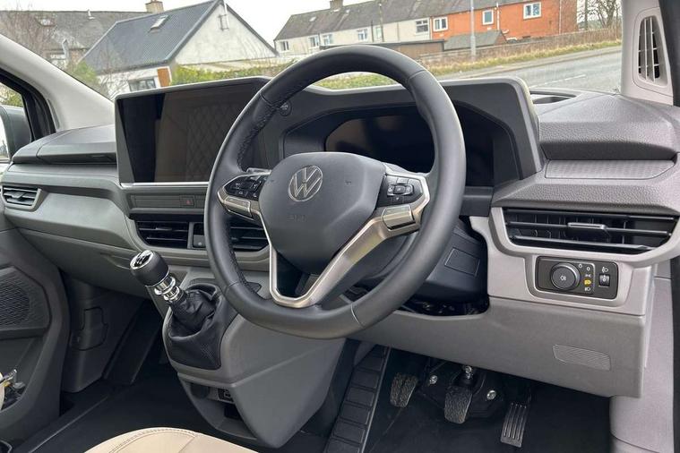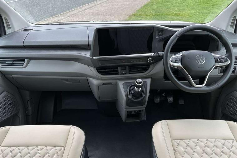12" digital drivers display, 13" touchscreen infotainment display with wireless app connect and DAB radio, 5G Modem, Apple CarPlay and Android Auto, Cruise control, Dynamic road sign display, eCall emergency system, Electromechanical speed sensitive power steering, height and longitudinally adjustable steering column, Lane assist, Preparation of VW connect and connect plus, Wrong way driver warning, 4 speakers - 2x dashboard, 2x cab doors, Body coloured door handles, Heat reflecting side window glass, Mud flaps front and rear, Rear Transporter nameplate in black grained decorative trim, Vehicle opening configuration 1x 1st row of seats, 2x all doors, 2x 15-W USB data/charging ports in dashboard and 1x USB-C, 1x USB-A center bottom, 2x LED lights in load compartment, 3 spoke leather wrapped multi function steering wheel, 4 way height and tilt adjustable head restraints, Black plastic scuff plate for sliding door in cargo without illumination, Cabin interior lighting, Lashing rings for reinforced floor covering, Leatherette gear lever, Narrow centre console with cup holder and compartment for mobile phone, Overhead storage compartment, Roof grab handle on front passenger side, Rubber floor covering in cab, Striped fabric upholstery, Without passenger seats in load compartment, Driver and front passenger airbag with front passenger airbag deactivation, Dual tone horn, Front and curtain airbags for driver and front passenger, Seat belt pretensioner for driver seat, Anti theft alarm system with interior monitoring in cab, backup horn and towing protection, Electronic immobiliser, Preparation for alcohol ignition interlock, 5+ Promise, Alternator - 230A, Electronic stability control, ABS, ASR with deactivation button, hill start assist and brake assist system,