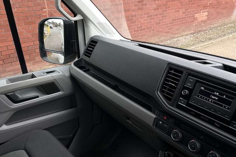 Digital clock, Driver alert system, Lights on warning buzzer, Locking fuel cap, Multi-function Display, Rev counter, Service indicator, Driver seatbelt warning light, Electric windows, Indicators in front door mirrors, Integral step in front bumper, Air recirculation system, Ashtray, Centre console storage tray, CFCU preparation, Charcoal filter, Document holder on centre console, Drinks holders, Electromechanical Servotronic steering, Fully adjustable suspension type driver seat, Height adjustable head restraints, Height and reach adjustable steering wheel, Illuminated glove compartment with lockable lid, Interior light, including 2 reading lights, Interior light, switchable by door, Storage compartments in doors and in step, right, Storage tray on dashboard, Two 12V outlets in the cab (in the dashboard), Without rear side trim panel passenger load compartment, 3 point inertia reel belt on all seats, Automatic hazard light with emergency braking, Crosswind assist, Height adjustable seatbelts for outer cab seats, 1 rigid key, Engine immobiliser, ABS, Automatic post collision braking system, EBA, EBD, EDL, ESP, HBA, Parking brake - hill hold control, TCS,