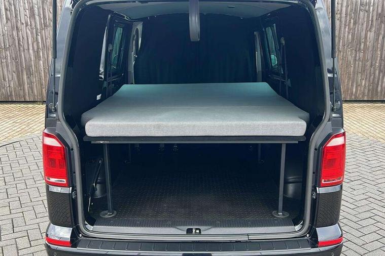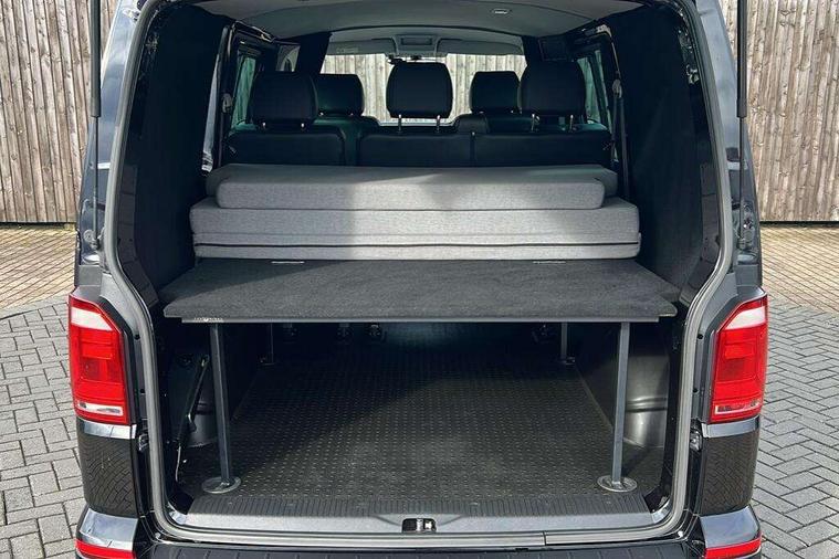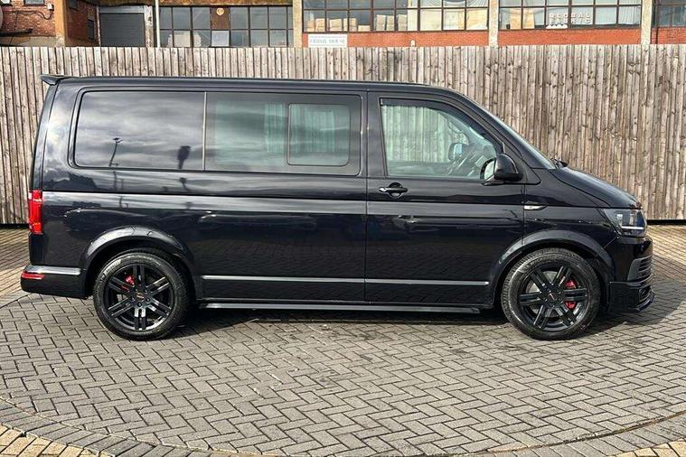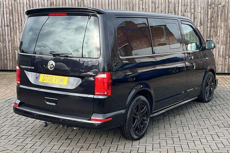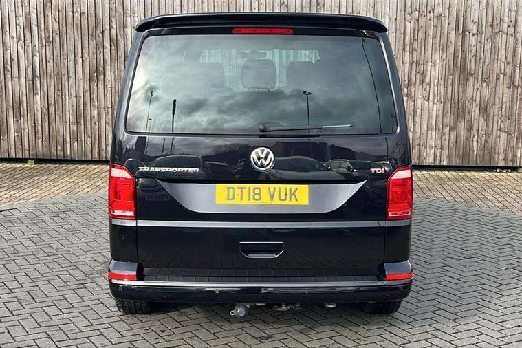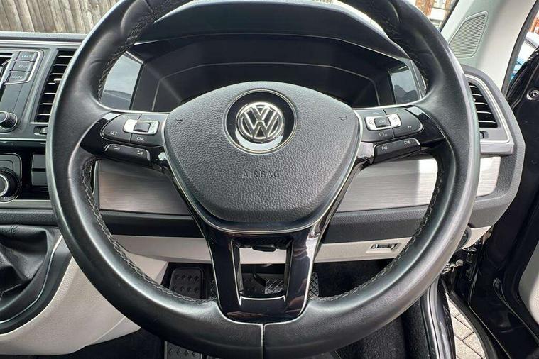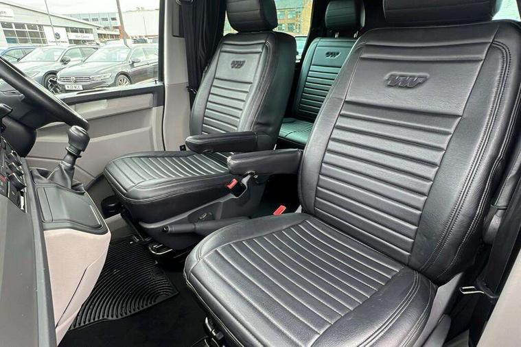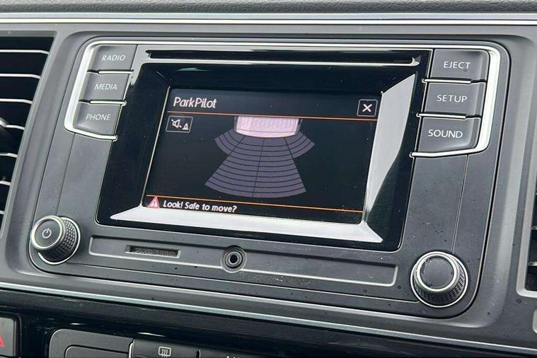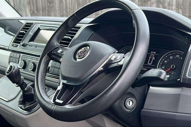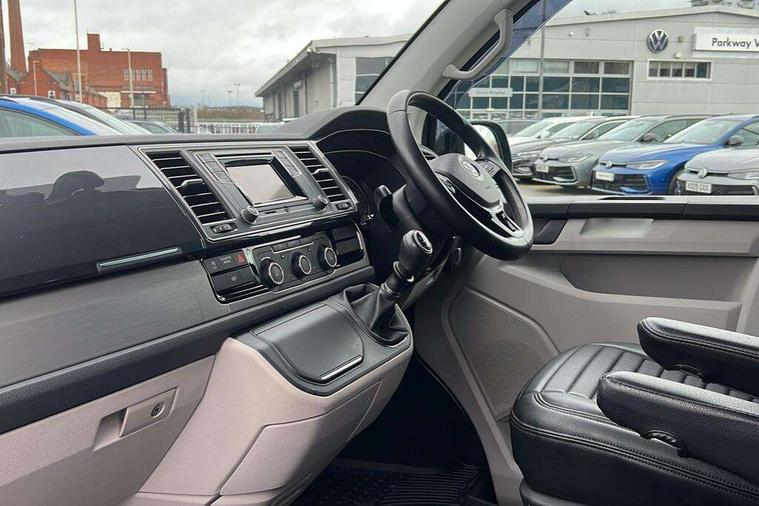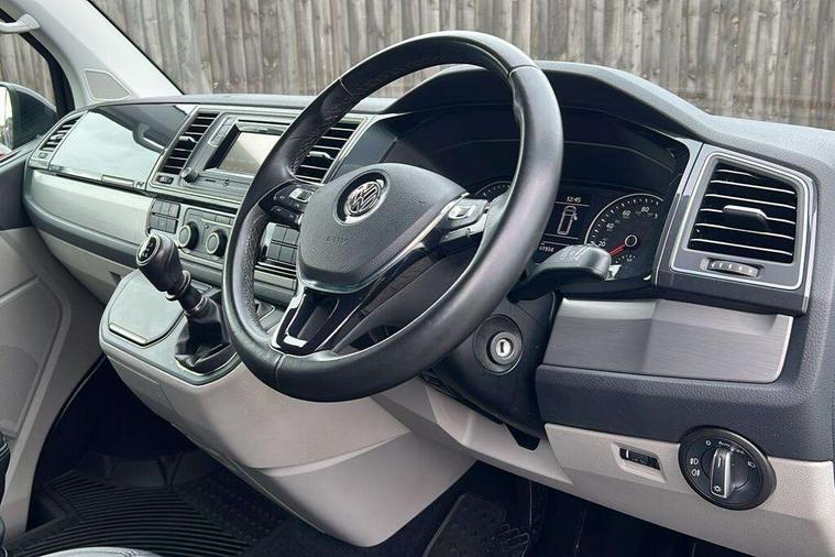 Bluetooth connectivity, Collision prevention assist, Digital clock, Driver alert with Multi-function display plus, Headlight range control, Rev counter, SD card slot, Seatbelt warning indicator, Service indicator, Trip computer, Tyre pressure monitor, 4 speakers, DAB radio/CD player, Automatic headlights, Body coloured bumpers, Body coloured door handles, Body coloured door mirrors, Chrome plated strip on air intake charge air cooler, Electric front windows, Front and rear towing rings, Front fog lights with cornering function, Heat reflective glass, Heated front windscreen, No windows in rear side panels, Privacy glass rear + load compartment with green heat insulating glass, 2 rear interior lights, switchable by door, 2 storage trays in dashboard, 2 sun visors folding and pivoted, 3 seater rear bench, Additional 12v accessory socket, Cab interior light, Drinks holder, Drivers seat adjustable for reach and rake, Dust/pollen filter, Height adjustable head restraints, Height and rake adjustable steering column, Interior entry steps, Load lashing rings, Locking glovebox, Multifunction leather steering wheel, gearknob and gaiter, Open storage compartment in dash panel including mobile phone holder, Passenger seat with reach and rake adjustment, Storage compartments in doors, Storage net on lower dash passenger side, Cab comfort pack - Transporter Kombi, Exterior pack - Transporter, 3 point inertia reel belt on all seats, Driver's airbag, Front passenger airbag deactivation, Height adjustable seatbelts for outer cab seats, Internal central locking control, Anti-theft alarm with rear control in cab, backup horn and towing protection, Interior (cab only) and tow away protection, Locking wheel bolts, Thatcham category 1 alarm, 70L fuel tank, ABS with electronic brake distribution, Diesel particulate filter, EDL, ESP, Parking brake - hill hold control, Traction control, 17" Devonport alloy wheels,
