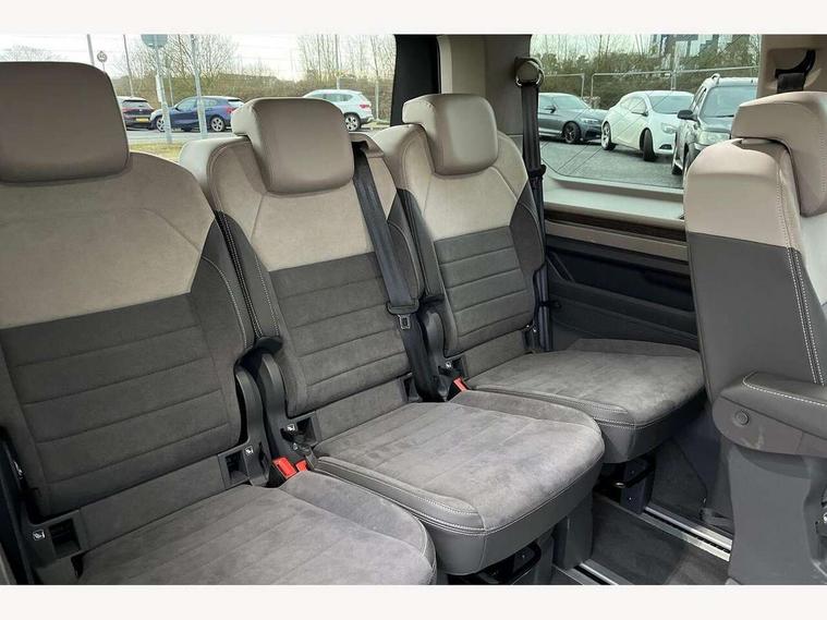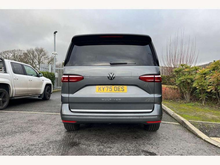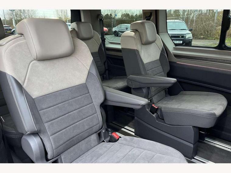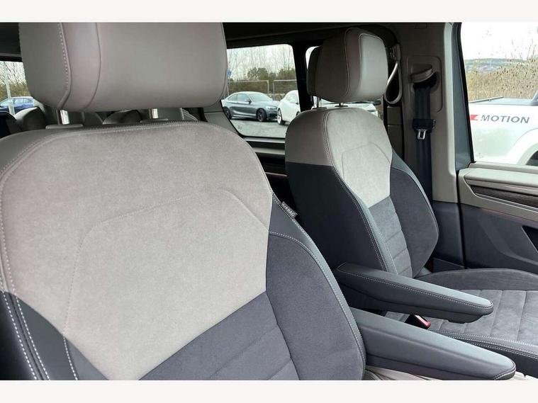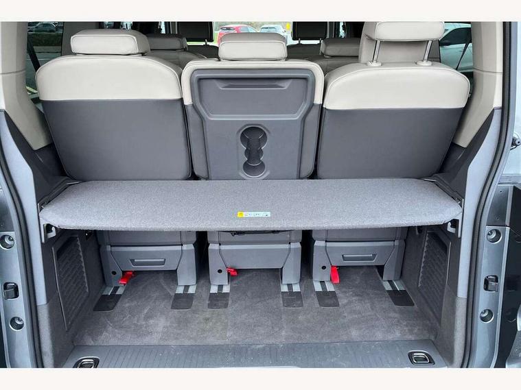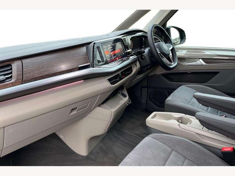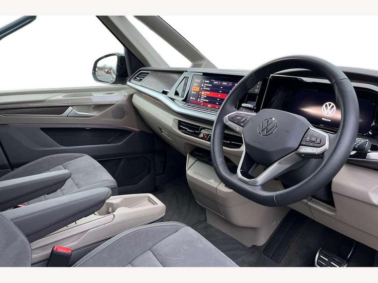 Adaptive cruise control with C2X including front assist and city emergency braking system, Digital Cockpit Pro with 10.25" colour display with adaptable display includes navigation map display, telephone contact images and audio information, Discover media pro navi system with 10" colour touch incl DAB+radio/appconnect for apple carplay/android auto/streaming and internet/gesture control, Driver alert system, Dynamic road sign display, eCall emergency system, Electrically-operated tailgate opening and closing function (Easy open), operated via foot movement under rear tailgate, Emergency assist, Front Cross Traffic Alert, Lane change system with side assist including blind spot monitor, rear traffic alert and exit warning system, Lane keeping system Lane Assist, Mobile phone interface, PAS, Semi-automated driving assistance, Tailgate, Travel assist, Voice control system including Alexa web app, We connect preparation, Electronic differential lock, 2 USB-C ports in front and 4 USB-C ports in passenger compartment, Additional interior noise reduction measures, Advanced high beam control dynamic light assist for LED matrix headlamps, Automatic headlight control with welcome home lights, Body coloured exterior door handles, Break away auto dimming rear view interior mirror, Chrome trim decorative strip mid-way on side and rear, Dynamic headlight range control with dynamic cornering light, Electrically adjustable, heated and folding door mirrors, Front fog lights, Glossy black painted radiator grille with 2 illuminated chrome trims, Heated rear window with window wiper and washer system, Heated windscreen, High gloss black exterior mirror housing, IQ.Light LED matrix headlamps with LED separate daytime running light, Laminated safety glass windshield, heat and sound insulating, LED 3rd brake lamp, LED rear combination lamps, Rear wiper, Stainless steel tailgate trim, Surround lighting in door area and tailgate with logo projection in door area, Windshield wiper intermittent control with rain sensor, 1 x 12V sockets on the dash panel, 12V socket in passenger compartment, 3 seat bench in 3rd row, 30 colours ambient interior lighting and tailgate surround lighting, 7 single seats removable/movable, Carpet mats in cab, Climatronic 3 zone air conditioning with additional control panel in passenger compartment, Front and rear head restraints, Grab handles on A pillar for access, on driver and front passenger side, Height adjustable seats, Height and longitudinal adjustment steering wheel with gear shift paddles, Illumination lockable glovebox compartment, ISOFIX (including i-size) and top tether in all seats in 2nd and 3rd rows, LED luggage compartment lighting X 2, Load compartment partition to 20kg with bag hooks and luggage net, Luggage compartment lid power latching with unlatching from inside, Multifunction leather steering wheel with tiptronic, Reinforced carpet floor covering in passenger compartment, Removable armrests for front seats with power adjustable lumbar support and folding table for 2nd row passenger seats, Single front passenger seat, Slidable multifunction table/centre console with 3 cup holders, Stainless steel pedals, Storage compartment under the 2nd and 3rd row seat and two waste bins, Sun visors with illuminated vanity mirror, ticket holder on driver side with airbag warning label on sunvisor and B-pillar, Easy open package - Multivan, 3x3 point rear seat belts, ABS, Automatic post collision braking system, Autonomous emergency braking front assist with pedestrian and cyclist monitoring, Driver and front passenger airbag with front passenger airbag deactivation, Electric childproof lock, Electronic stability control (ESC) and Electromechanical brake booster, ESP, First aid kit with warning triangle and safety vest, Front disc brakes, Hill hold assist, Seat belt warning for the drivers and all passengers seats if unfastened, Side and curtain airbags for driver and front passenger, curtain airbags for outer seats in rear, centre airbag in front, Single tone horn, Traction control, Tyre pressure monitoring system, Anti theft alarm system with interior monitoring in cab, backup horn and towing protection, Central locking system with interior control and safe lock, Keyless advanced with keyless entry, Start/stop button on centre console, Dark woodgrain optic decorative inserts,