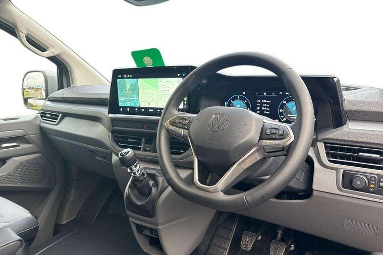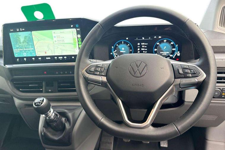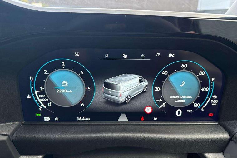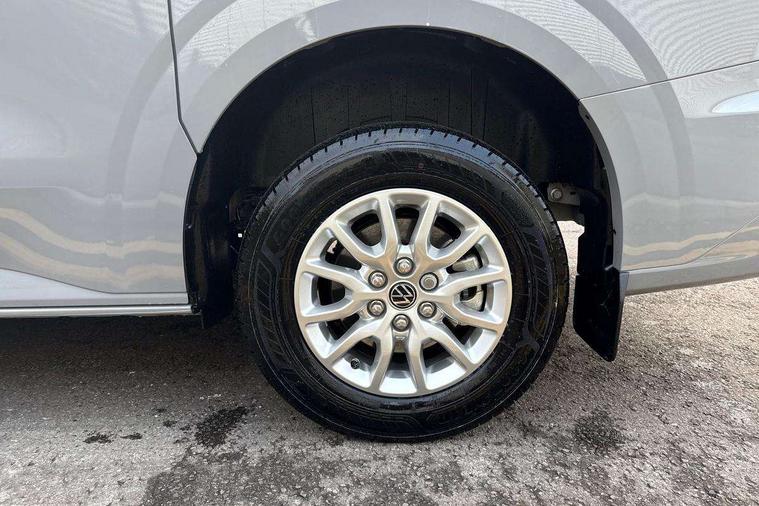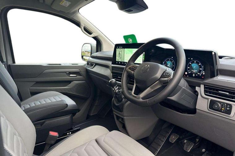 12" digital drivers display, 13" touchscreen infotainment display with wireless app connect and DAB radio, 5G Modem, Adaptive cruise control, Apple CarPlay and Android Auto, Dynamic road sign display, eCall emergency system, Electromechanical speed sensitive power steering, height and longitudinally adjustable steering column, Lane and blind spot assist with exit warning system, Preparation of VW connect and connect plus, Wireless mobile phone charging, Wrong way driver warning, Body colour bumpers, Body coloured door handles, Body coloured door mirrors, Body coloured radiator grille, Electrically heated, adjustable and folding door mirrors, Heat reflecting side window glass, Mud flaps front and rear, Rear Transporter nameplate in black grained decorative trim, Vehicle opening configuration 1x 1st row of seats, 2x all doors, 12V outlet in centre console and 12V outlet on rear right D-pillar, 2x 15-W USB data/charging ports in dashboard and 1x USB-C, 1x USB-A center bottom, 2x LED lights in load compartment, 3x additional super bright LED lights in load compartment, 4 way height and tilt adjustable head restraints, 5 additional USB-C charging ports, Black plastic scuff plate for sliding door in cargo without illumination, Cabin interior lighting, Glasses compartment in driver side roof, Grab handle on A-pillar passenger side, Illuminated lockable glovebox, Lashing rings for reinforced floor covering, Leatherette gear lever, Narrow centre console with cup holder and compartment for mobile phone, Overhead storage compartment, Rubber floor covering in cab, Striped fabric upholstery, Without passenger seats in load compartment, Driver and front passenger airbag with front passenger airbag deactivation, Dual tone horn, Front and curtain airbags for driver and front passenger, Seat belt pretensioner for driver seat, Anti theft alarm system with interior monitoring in cab, backup horn and towing protection, Electronic immobiliser, Lockable wheel bolts, Preparation for alcohol ignition interlock, 5+ Promise, Alternator - 230A, Electromechanical brake booster, Electronic stability control, ABS, ASR with deactivation button, hill start assist and brake assist system,