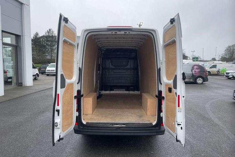 Advanced driver attention and drowsiness monitor, Blind spot monitor, Bluetooth, Digital clock, Digital cockpit with active Info display, Dynamic road sign display, E-call + We connect basic preparation, Forward collision warning with warning and braking reaction to vehicles, pedestrians and cyclists, Front assist including city emergency braking, Instrument cluster, Lane keeping assist, Lights on warning buzzer, Locking fuel cap, Rev counter, Roof console for interior lighting control, Service indicator, Speedometer, USB socket at top of windscreen, Wireless charging, 2 USB C ports in dashboard, DAB Radio, Auto low beam mode, Leaving home function and manual coming home function, Black unpainted plastic front bumper, Cab doors, Convex and wide angle mirror, Driver seatbelt warning light, Electric windows, Heat insulating glass, Indicators in front door mirrors, One towing eye in front, Rear badges, Special identification plate, Touch panel control for exterior lights, Unpainted radiator grille, Windscreen wiper auto control with light and rain sensor, Air recirculation system, Ashtray, Centre console storage tray, CFCU preparation, Charcoal filter, Document holder on centre console, Drinks holders, Electromechanical Servotronic steering, Electronically controlled heating system, Fully adjustable suspension type driver seat, Height adjustable head restraints, Height and reach adjustable steering wheel, Illuminated glove compartment with lockable lid, Interior light, including 2 reading lights, Interior light, switchable by door, Jack and tool kit, Preparation for interface for external use with terminal block, Storage compartments in doors and in step, right, Storage tray on dashboard, Two 12V outlets in the cab (in the dashboard), Without rear side trim panel passenger load compartment, Non-smokers pack - Crafter, 3 point inertia reel belt on all seats, Automatic hazard light with emergency braking, Crosswind assist, Driver and front passenger airbag with front passenger airbag deactivation, Height adjustable seatbelts for outer cab seats, 1 rigid key, Central locking system with Keyless Go without SAFELOCK entry - Keyless entry and start, Engine immobiliser, ABS, Automatic post collision braking system, EBA, EBD, EDL, Electronic parking brake - hill hold control, ESP, Front disc brakes, HBA, Hill start assist, Start and stop system with regenerative braking, TCS, Hub cap covers,