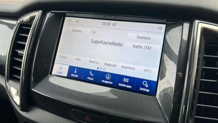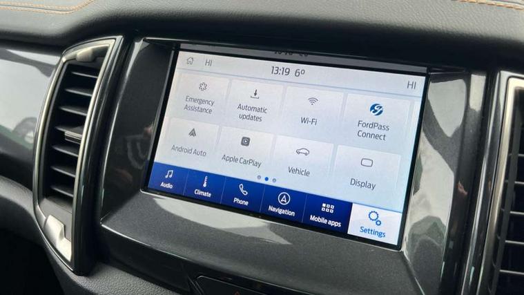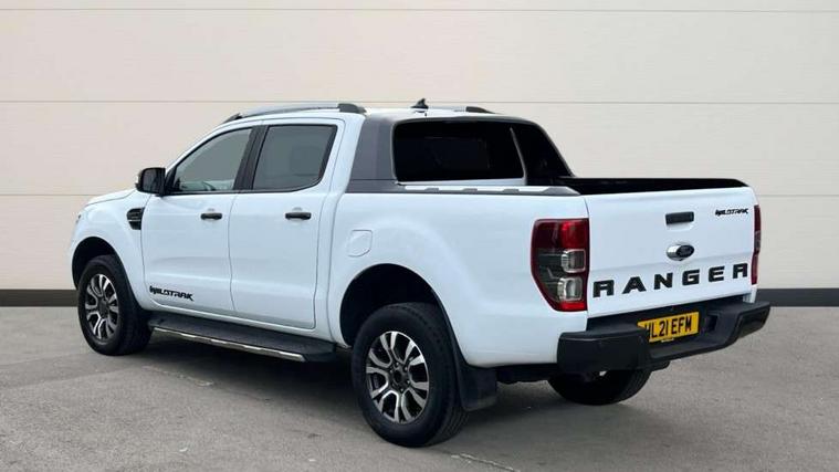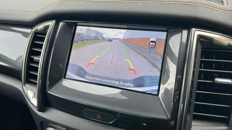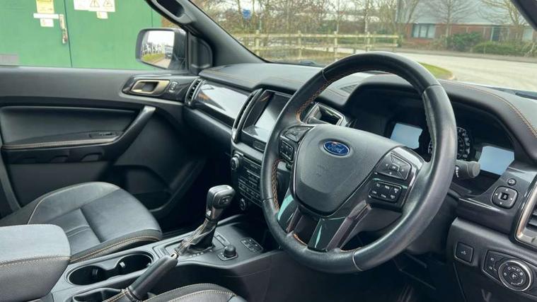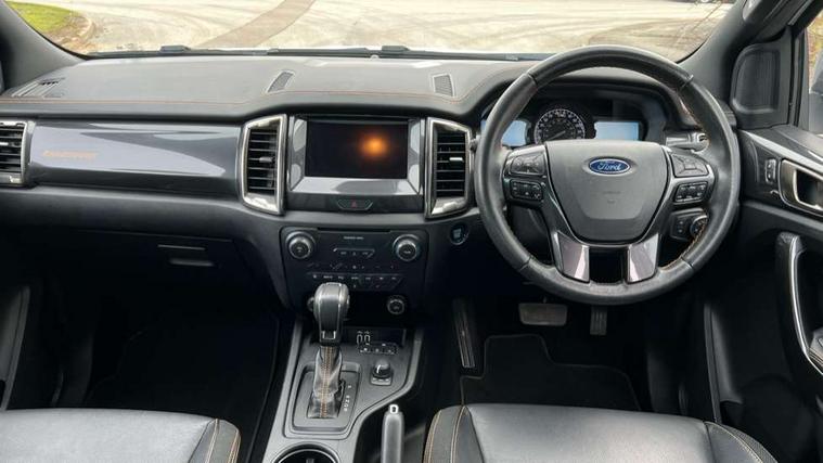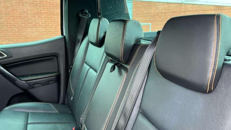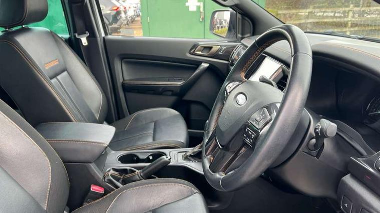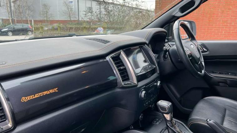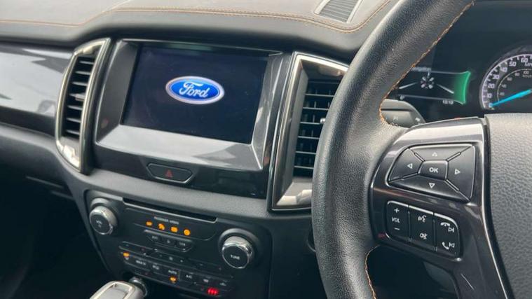 2 key fob, Collision mitigation braking system, Electric power assisted steering, Fixed rear view camera, Intelligent speed assistant, Lane keeping aid, Traffic sign recognition, Trip computer, Body coloured plastic front bumper, Boulder grey exterior door handle, Boulder grey exterior door mirror, Boulder grey radiator grille, Daytime running lights, Dual power heated fold back door mirror with puddle lamp and signal, Dyno grey sports hoop with side rails, Electrically operated windows with one shot driver's window, Electrochromic interior mirror, Front splash guard and mud flaps, Heated windshield and rear window, High mounted stop lamp with cargo area light, LED Front fog lamp, LED projector headlamps, Moulded in colour tailgate handle, Painted front fender grille, Privacy glass, Rain sensitive windshield wipers, Rear bumper chrome under-bar, Rear bumper step in boulder grey, Rear mudflaps, Roof rails, Side step with brushed inserts, Tailgate - Easy-lift/lower mechanism, Under hood engine cover, Underbody protection, Centre console coolbox, Chrome interior door handle, Driver seat back mounted map pocket, Dual control system - Electronic air temperature control (EATC), Ebony headliner, Heated front seat, Journey grain partial leather upholstery with Wildtrak logo, Leather gearknob, LED ambient interior lighting, Power adjustable 8 way driver seat, Premium front and rear floor mats with Wildtrak logo, Reach and rake adjustable steering column, Roof storage for driver sunglasses, Sport leather stitched steering wheel, Tie down rails and rope hooks, Wildtrak door trim panel insert, ICE feature pack 129 - Ranger, Driver and front passenger airbag, side airbag, curtain airbag and driver knee airbag, ISOFIX child safety seat attachment, Tyre pressure sensors, Double locking power door lock with flip key, Immobiliser, Locking wheel nuts, Passive anti theft system, Passive keyless entry and start system, Power tailgate lock, Spare wheel lock, Thatcham category 1 alarm security system, ABS, ESP and roll over mitigation, Emergency brake assist, Engine start/stop system, Locking rear axle, Power converter,