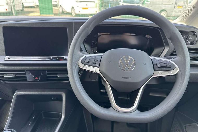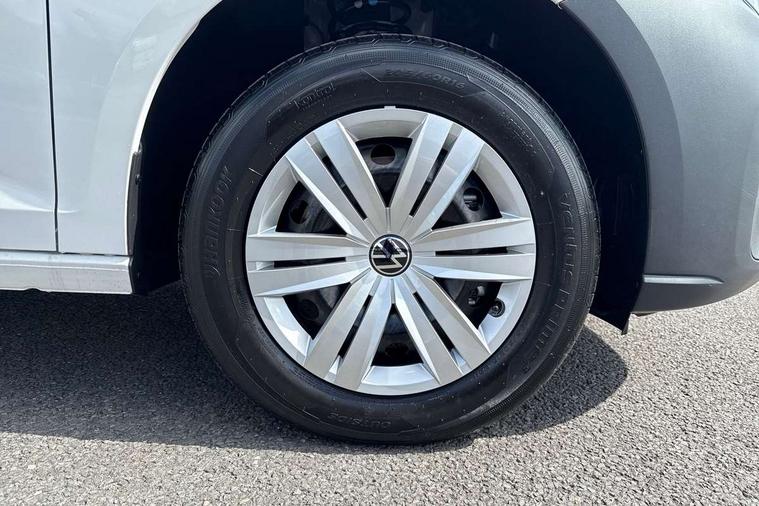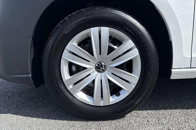 Bluetooth - Mobile phone interface, Car2X technology, Driver alert system, eCall emergency system, Intelligent Speed Assist, Lane assist, Seatbelt warning indicator, Service indicator, Start-stop system with regenerative braking, 2 USB interfaces type C in dashboard, DAB Radio, We Connect Basic Preparation, Automatic hazard light activation under emergency braking, Black front and rear bumpers, Electric front windows, Heat insulating windscreen, Roof rail preparation, Windscreen wiper with variable intermittent delay and wash-wipe system, Dimming breakaway interior rear view mirror, Electronically controlled heating system, Interior light in headliner incorporting LED technology, Lockable glove compartment door with light, Manual heating and ventilation system, Manual height adjustment for front seats, Reach and rake adjustable steering column, Six lashing points for securing loads, 3-point seat belts in front, with pretensioner and height adjustment, Driver and front passenger airbag with front passenger airbag deactivation, Tyre pressure monitoring system, Anti-theft alarm system, interior monitoring, backup horn, and towing protection, Electronic engine immobiliser, Remote central locking with deadlocks, interior locking, Anti locking braking system (ABS), Automatic post collision braking system, Autonomous Emergency Braking Front Assist with Pedestrian Monitoring, Brake assist, Diesel particulate filter, Electric parking brake with auto hold function, Electronic brake force distribution (EBD), Electronic differential lock (EDL), Electronic stabilisation programme (ESP), Engine drag torque control (MSR), Hill hold assist, Traction control system (TCS), Decorative beige birch vein inserts, Full size wheel trims,