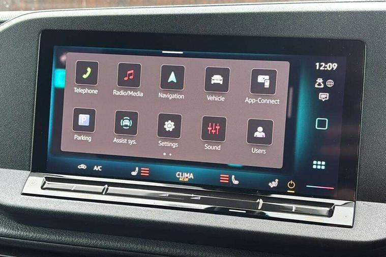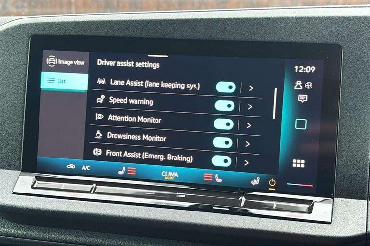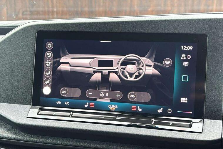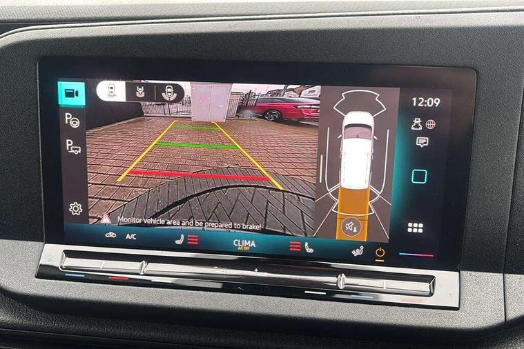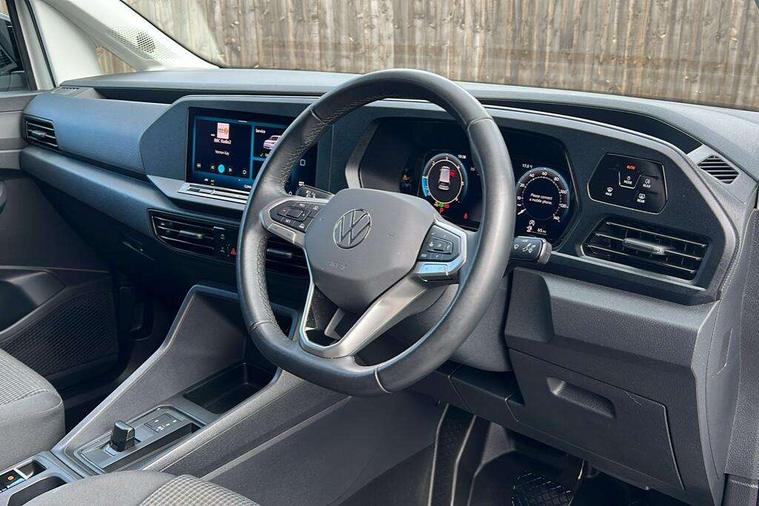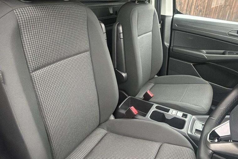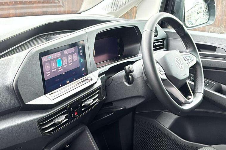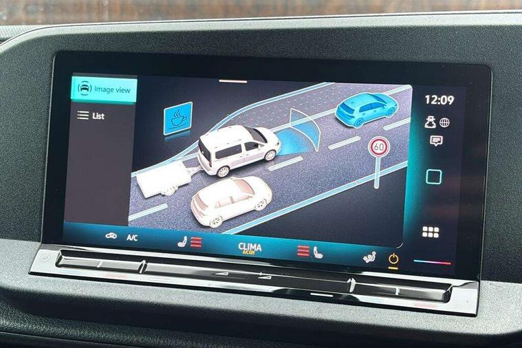 Bluetooth - Mobile phone interface, Car2X technology, Driver alert system, eCall emergency system, Intelligent Speed Assist, Lane assist, Seatbelt warning indicator, Service indicator, Start-stop system with regenerative braking, 2 USB interfaces type C in dashboard, App-Connect - Wireless for Apple CarPlay, DAB Radio, We Connect Plus Preparation, Automatic hazard light activation under emergency braking, Black painted exterior mirror housings, body-colored door handles and Silver sliding door rail, Body coloured bumpers, Electric front windows, LED rear combination lights, LED rear tail lights, Roof rail preparation, Windscreen wiper with variable intermittent delay and wash-wipe system, Dimming breakaway interior rear view mirror, Electronically controlled heating system, ergoComfort seats for driver, Interior light in headliner incorporting LED technology, Lockable glove compartment door with light, Manual heating and ventilation system, Manual height adjustment for front seats and seat cushion inclination and depth adjustment on drivers seat, Multi function leather steering wheel, Power-adjustable lumbar support for drivers seat, Reach and rake adjustable steering column, Six lashing points for securing loads, Steering wheel paddle shift, Storage compartments under driver and front passenger seats, Sun visors with mirror, airbag label on front passenger sun visor, Winter pack plus - Caddy, 3-point seat belts in front, with pretensioner and height adjustment, Driver and front passenger airbag with front passenger airbag deactivation, Tyre pressure monitoring system, Anti-theft alarm system, interior monitoring, backup horn, and towing protection, Electronic engine immobiliser, Remote central locking with deadlocks, interior locking, Anti locking braking system (ABS), Automatic post collision braking system, Brake assist, Diesel particulate filter, Electric parking brake with auto hold function, Electronic brake force distribution (EBD), Electronic differential lock (EDL), Electronic stabilisation programme (ESP), Engine drag torque control (MSR), Hill hold assist, Traction control system (TCS), Decorative beige birch vein inserts, Wheel bolts with anti-theft protection (unlockable),