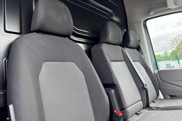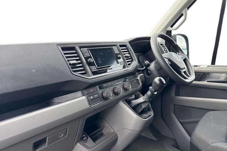 Bluetooth, Digital clock, Driver alert system, E-call + We connect basic preparation, Instrument cluster, Lights on warning buzzer, Locking fuel cap, Multi-function Display Plus, Rev counter, Service indicator, Speedometer, Voice control system, Composition media with 6.5" with we connect plus prep, 4 speaker, multifun display plus, USB, mob interface, app con, "We connect function", DAB Radio, Auto low beam mode, Leaving home function and manual coming home function, Cab doors, Convex and wide angle mirror, Driver seatbelt warning light, Electric windows, Electrically heated and adjustable door mirrors, Half painted front bumper, Heat insulating glass, Indicators in front door mirrors, One towing eye in front, Rear wing doors with 270 degree hinges, Special identification plate, Unpainted radiator grille, Air recirculation system, Ashtray, Centre console storage tray, CFCU preparation, Charcoal filter, Climatic air conditioning, Document holder on centre console, Drinks holders, Electromechanical Servotronic steering, Electronically controlled heating system, Fully adjustable suspension type driver seat, Grab handles on rear entry pillars, Height adjustable head restraints, Height and reach adjustable steering wheel, Illuminated glove compartment with lockable lid, Interior light, including 2 reading lights, Interior light, switchable by door, Jack and tool kit, Preparation for interface for external use with terminal block, Storage compartments in doors and in step, right, Storage tray on dashboard, Two 12V outlets in the cab (in the dashboard), Without rear side trim panel passenger load compartment, Non-smokers pack - Crafter, 3 point inertia reel belt on all seats, Automatic hazard light with emergency braking, Crosswind assist, Driver and front passenger airbag with front passenger airbag deactivation, Height adjustable seatbelts for outer cab seats, 1 rigid key, Anti-theft alarm with interior monitor, back up horn and tow away protect, overhead storage with two 1-DIN, reading light, SAFELOCK with 2 remote keys, Engine immobiliser, ABS, Automatic post collision braking system, EBA, EBD, EDL, ESP, Front disc brakes, HBA, Hill start assist, Parking brake - hill hold control, Start and stop system with regenerative braking, TCS, Hub cap covers,
