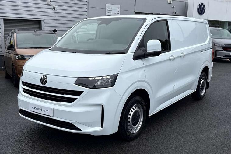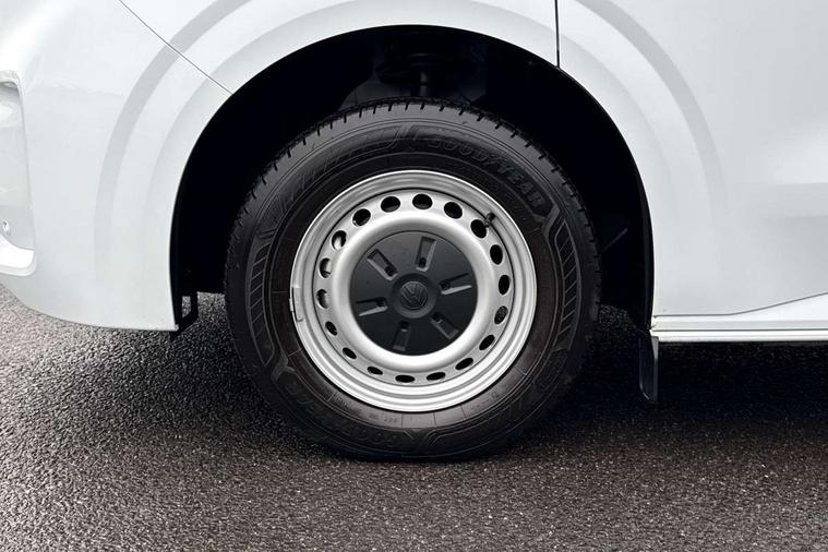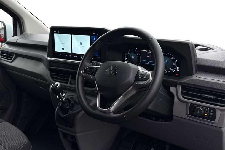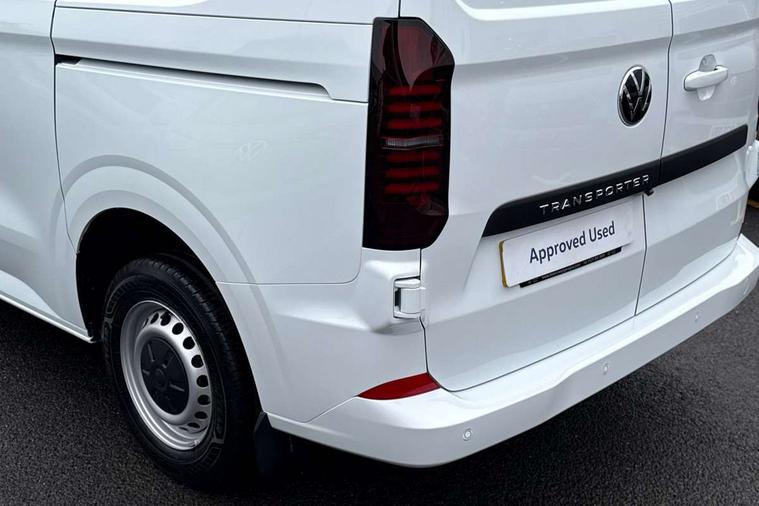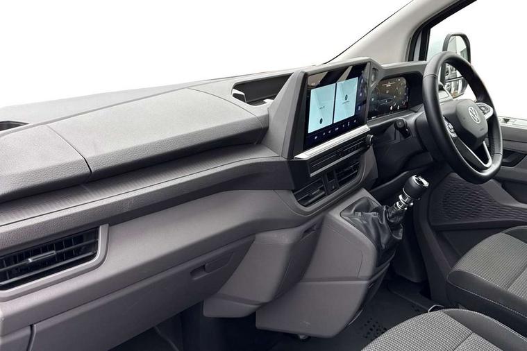 12" digital drivers display, 13" touchscreen infotainment display with wireless app connect and DAB radio, 5G Modem, Apple CarPlay and Android Auto, Cruise control, Dynamic road sign display, eCall emergency system, Electromechanical speed sensitive power steering, height and longitudinally adjustable steering column, Lane assist, Preparation of VW connect and connect plus, Wrong way driver warning, 4 speakers - 2x dashboard, 2x cab doors, Body coloured door handles, Heat reflecting side window glass, Mud flaps front and rear, Rear Transporter nameplate in black grained decorative trim, Vehicle opening configuration 1x 1st row of seats, 2x all doors, 2x 15-W USB data/charging ports in dashboard and 1x USB-C, 1x USB-A center bottom, 2x LED lights in load compartment, 3 spoke leather wrapped multi function steering wheel, 4 way height and tilt adjustable head restraints, Black plastic scuff plate for sliding door in cargo without illumination, Cabin interior lighting, Lashing rings for reinforced floor covering, Leatherette gear lever, Narrow centre console with cup holder and compartment for mobile phone, Overhead storage compartment, Roof grab handle on front passenger side, Rubber floor covering in cab, Striped fabric upholstery, Without passenger seats in load compartment, Driver and front passenger airbag with front passenger airbag deactivation, Dual tone horn, Front and curtain airbags for driver and front passenger, Seat belt pretensioner for driver seat, Anti theft alarm system with interior monitoring in cab, backup horn and towing protection, Electronic immobiliser, Preparation for alcohol ignition interlock, 5+ Promise, Alternator - 230A, Electronic stability control, ABS, ASR with deactivation button, hill start assist and brake assist system,