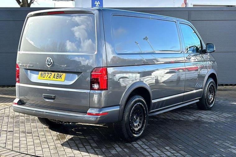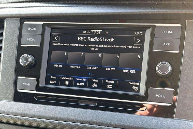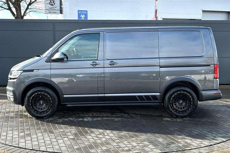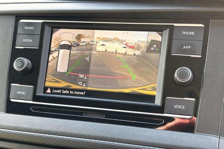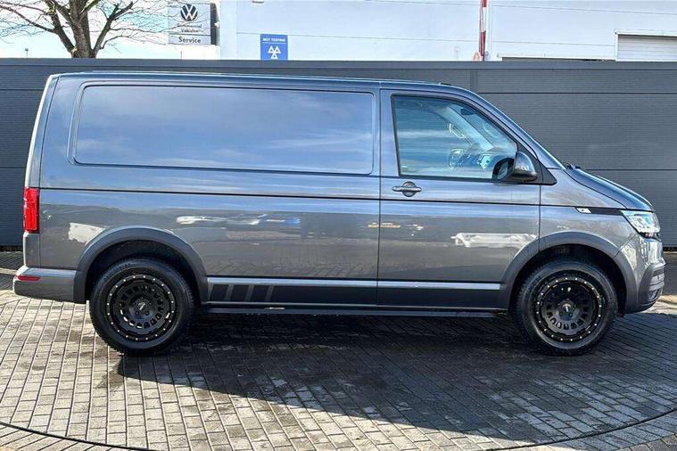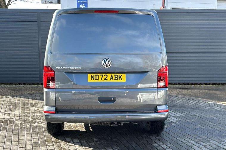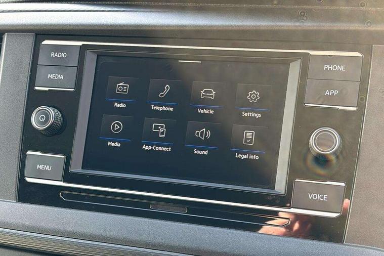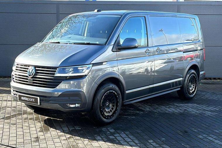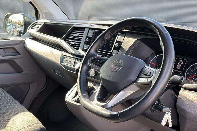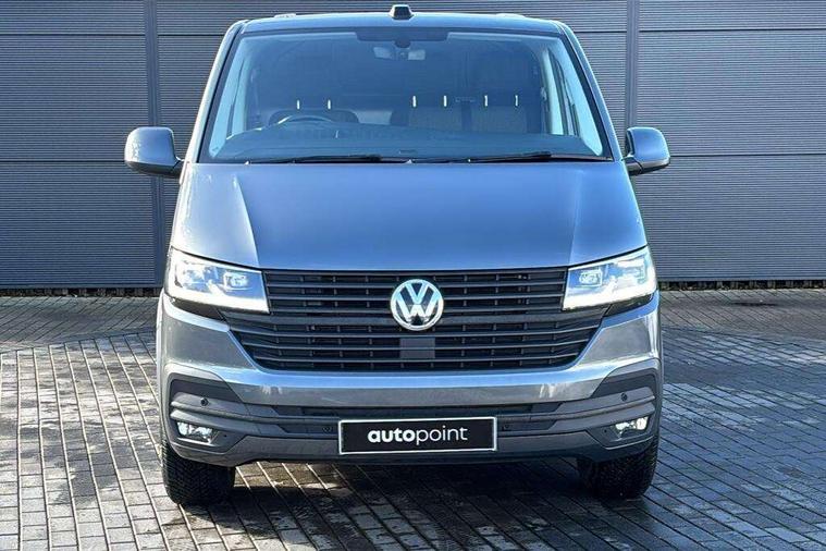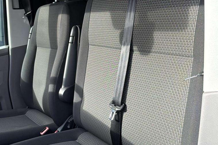 Adaptive cruise control, Cross wind assist, Dimmable illuminated instruments, Driver alert with Multi-function display plus, eCall emergency system, Forward collision warning front assist with autonomous emergency braking, Mobile phone interface, Multi function display plus with black and white display, 2 USB interfaces type C in dashboard, 4 speakers with 2 tweeters and 2 woofers, Composition colour radio with 6.5" touchscreen, Digital radio reception (DAB+), Volkswagen app connect, Automatic headlight control, leaving home and manual coming home feature, Closing rear wing door with unlatching from the inside, Front fog lamps with cornering light, Heat insulating glass (green) in cab and passenger/load compartment, Heated front windscreen, Left convex exterior mirror, Power folding adjustable door mirrors with separately heated, Radiator grille with 2 chrome trims, Rear wing doors without window apertures, Right convex exterior mirror, Transporter nameplate on the rear fender, Windshield wiper intermittent control with rain sensor for windshield wipers, 3 spoke leather wrapped multi function steering wheel, Auto dimming breakaway interior rear view mirror, Comfort headliner in cab, hardboard roof trim in passenger and load compartment, Dust/pollen filter, Front and rear left without window closed side panel in load compartment, Front seats on the right in 1st row of seat, Glove compartment with illumination, Heavy duty tool kit and jack, High partition, Interior plastic loading edge protection, LED Interior lighting in load and passenger compartment, Manual adjustable lumbar support for right single seat in 1st row seats, Refrigerant R134a, Standard lower part dashboard in palladium, Storage compartments on cab seats and reading light, Without right side window apertures in passenger and load compartment, Comfort pack - Transporter, Exterior pack without fog light- Transporter, Non smoker pack - Transporter, 3 point height adjustable seat belts on outer seats cab with electric pretensioners, Driver and front passenger airbag with front passenger airbag deactivation, Warning buzzer and light for driver and front passenger seat belt not fastened, Without child safety lock in passenger compartment, Anti theft alarm system with interior monitoring in cab, backup horn and towing protection, Lockable wheel bolts, 16" chassis with 16" brake system, Diesel particulate filter, Electronic stability control, ABS, ASR with deactivation button, hill start assist and brake assist system, Start/stop system with regenerative breaking, 17" Devonport alloy wheels,