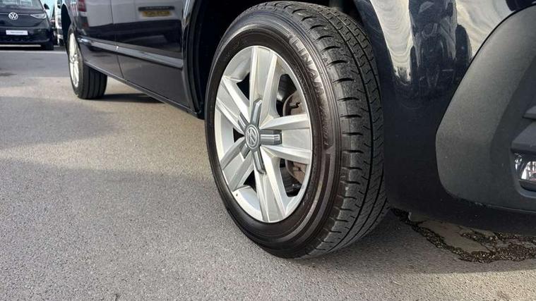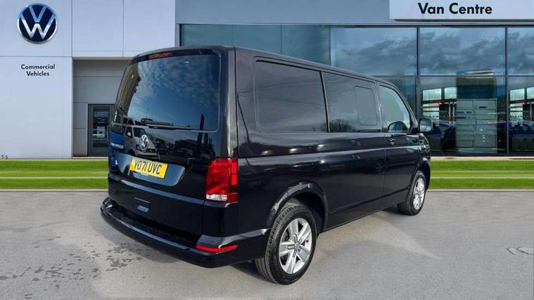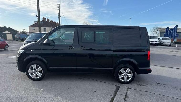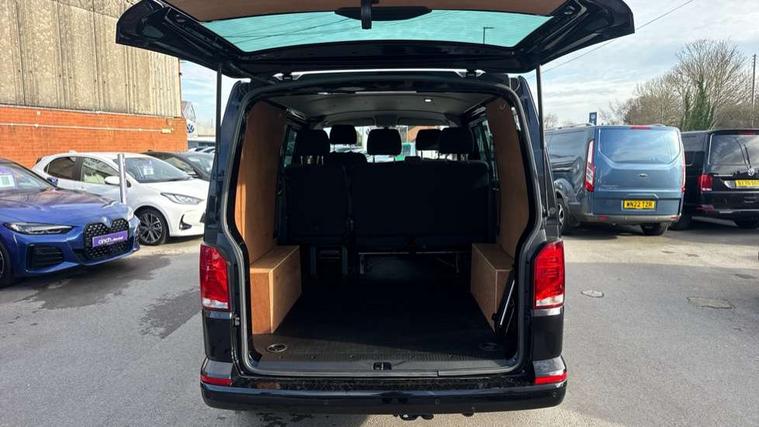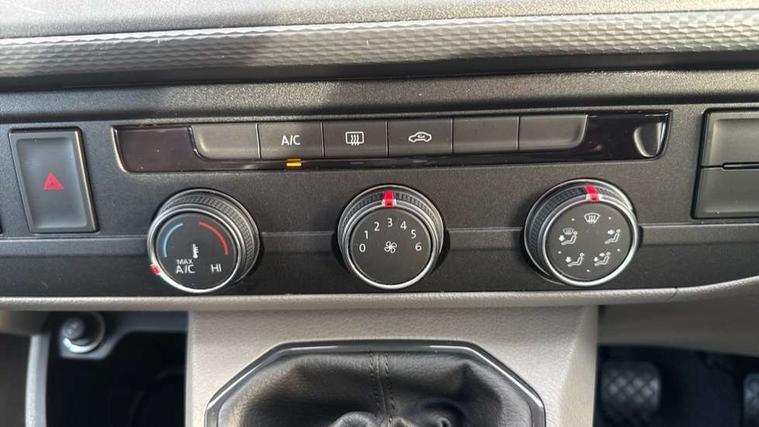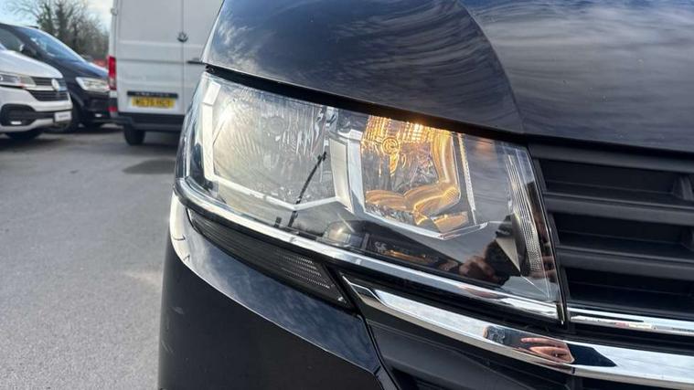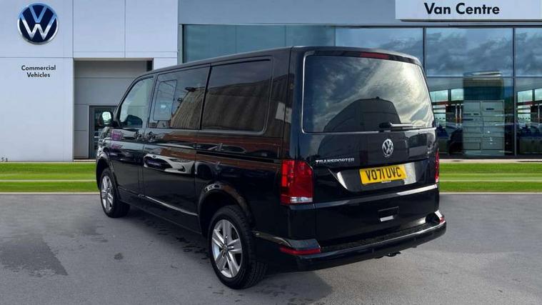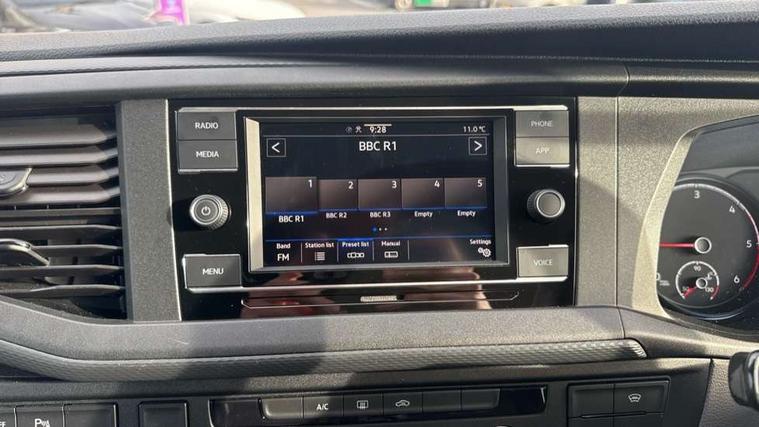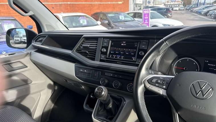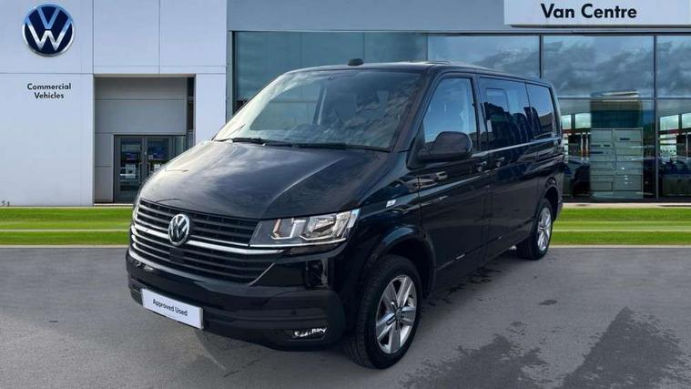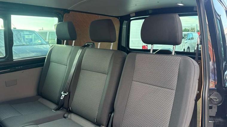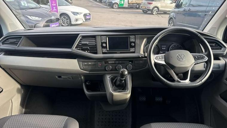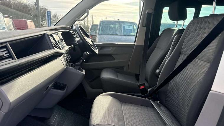 Adaptive cruise control, Child seat anchors ISOFIX and top tether in 2nd row of seats, Cross wind assist, Dimmable illuminated instruments, Driver alert with black and white multi function display plus, eCall emergency system, Electromechanical speed sensitive power steering, height and longitudinally adjustable steering column, Forward collision warning front assist with autonomous emergency braking, Headlight range control, Mobile phone interface, Without voice control, 2 USB interfaces type C in dashboard, 4 speakers with 2 tweeters and 2 woofers, Composition colour radio with 6.5" touchscreen, Digital radio reception (DAB+), Volkswagen app connect, Automatic headlight control, leaving home and manual coming home feature, Front fog lamps with cornering light, Green heat insulating glass, Heated front windscreen, Illuminated steps in passenger/load compartment, Left convex exterior mirror, Power adjustable and heated exterior mirrors, Power folding door mirrors, Privacy glass in passenger compartment, Radiator grille with 2 chrome trims, Rear window with heated insulating glass, heated rear window wiper and washer system, Right convex exterior mirror, Tailgate closing with unlatching from the inside, Tailgate with window aperture, Transporter nameplate on the rear fender, Windshield wiper intermittent control with rain sensor for windshield wipers, Without adhesive film, 3 spoke leather wrapped multi function steering wheel, Additional sound deadening measures in cab and passenger compartment, Auto dimming breakaway interior rear view mirror, Comfort headliner in cab, hardboard roof trim in passenger and load compartment, Dust/pollen filter, Folding grab handles and storage compartments on cab seats, reading light, Front seats on the right in 1st row of seat, Glove compartment with illumination, Heavy duty tool kit and jack, Interior plastic loading edge protection, Lashing rings for load restraint system, LED Interior lighting in load and passenger compartment, Medium height for vehicles with window aperture hardboard side trim panels in passenger/load compartment, Refrigerant R134a, Rubber floor covering in cab, Rubber floor covering in passenger/load compartment with loading edge protection in rear, Standard lower part dashboard in palladium, Without partition, Without seats in 3rd row of seats, Exterior pack without fog light- Transporter, Non smoker pack - Transporter, 3 point height adjustable seat belts on outer seats cab with electric pretensioners, Driver and front passenger airbag with front passenger airbag deactivation, Power operated child safety lock, Single tone horn, Warning buzzer and light for driver seat belt not fastened, Anti theft alarm system with interior monitoring in cab, backup horn and towing protection, Lockable wheel bolts, 16" chassis with 16" brake system, 70 L volume fuel tank, Additional 12V socket, Diesel particulate filter, Electronic stability control, ABS, ASR with deactivation button, hill start assist and brake assist system, Speed limiter, Start/stop system with regenerative breaking, 17" Devonport silver alloy wheels, Wheel trims,