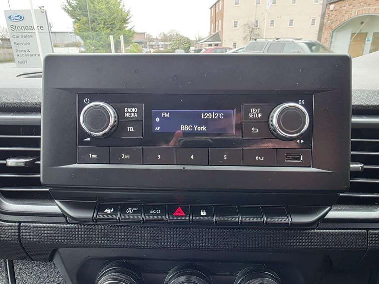 Cruise control with speed limiter, ECO mode button, Gearshift indicator, PAS, Trip computer, Black door mirrors, Black door rail, Black front bumper, Black rear tail column, Electric front windows with one touch drivers window, Full LED headlights with C-shaped DRL, Heated with electric adjustment door mirrors and external temperature sensors, Roof bar fixings, 12V power socket in front, 16 load anchorage points, Closed glovebox, Dashboard with geometric grain, Height adjustable drivers seat with armrest and lumbar adjustment, Interior cabin lighting, Kompo cloth upholstery, Passenger seat bench, Reach and rake adjustable steering column, 3 point height adjustable seatbelts with pretensioners and load limiter, Driver and passenger seatbelt reminder, Driver's airbag, Alarm - Thatcham T2 volumetric alarm, Deadlocking, Electronic immobiliser, Remote central locking, 12v socket in loadspace, 20L AdBlue tank, 4 disc brakes, 80 litre fuel tank, ABS with EBD (Electronic Brake force Distribution), ESC (Electronic Stability Control) with Hill Start Assist and Grip Xtend,