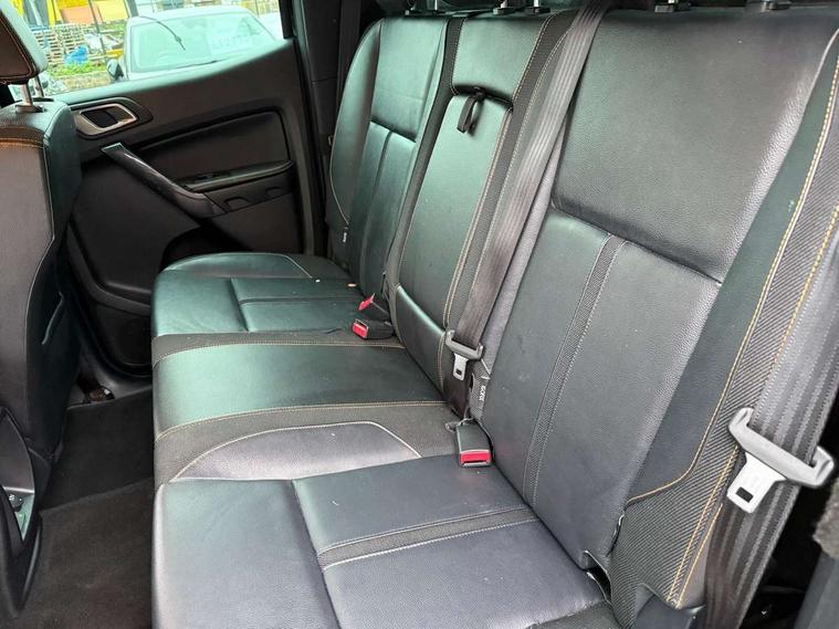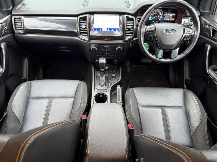 2 key fob, Collision mitigation braking system, Electric power assisted steering, Fixed rear view camera, Intelligent speed assistant, Lane keeping aid, Traffic sign recognition, Trip computer, Body coloured plastic front bumper, Boulder grey exterior door handle, Boulder grey exterior door mirror, Boulder grey radiator grille, Daytime running lights, Dual power heated fold back door mirror with puddle lamp and signal, Dyno grey sports hoop with side rails, Electrically operated windows with one shot driver's window, Electrochromic interior mirror, Front splash guard and mud flaps, Heated windshield and rear window, High mounted stop lamp with cargo area light, LED Front fog lamp, LED projector headlamps, Moulded in colour tailgate handle, Painted front fender grille, Privacy glass, Rain sensitive windshield wipers, Rear bumper chrome under-bar, Rear bumper step in boulder grey, Rear mudflaps, Roof rails, Side step with brushed inserts, Tailgate - Easy-lift/lower mechanism, Under hood engine cover, Underbody protection, Centre console coolbox, Chrome interior door handle, Driver seat back mounted map pocket, Dual control system - Electronic air temperature control (EATC), Ebony headliner, Heated front seat, Journey grain partial leather upholstery with Wildtrak logo, Leather gearknob, LED ambient interior lighting, Power adjustable 8 way driver seat, Premium front and rear floor mats with Wildtrak logo, Reach and rake adjustable steering column, Roof storage for driver sunglasses, Sport leather stitched steering wheel, Tie down rails and rope hooks, Wildtrak door trim panel insert, ICE feature pack 129 - Ranger, Driver and front passenger airbag, side airbag, curtain airbag and driver knee airbag, ISOFIX child safety seat attachment, Tyre pressure sensors, Double locking power door lock with flip key, Immobiliser, Locking wheel nuts, Passive anti theft system, Passive keyless entry and start system, Power tailgate lock, Spare wheel lock, Thatcham category 1 alarm security system, ABS, ESP and roll over mitigation, Emergency brake assist, Engine start/stop system, Locking rear axle, Power converter,