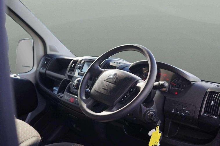 Cruise control with programmable speed limiter, Door open warning for cab doors, Gearshift indicator, Handbrake on warning light, Locking fuel cap, Low fuel warning light, Oil level indicator, Power steering (non variable), Rev counter, trip computer, water temperature and fuel guage, Seatbelt warning indicator, Telematics box for Free2Move Connect Fleet services including 4G connectivity, 5" Colour touchscreen with integrated stellite navigation, Bluetooth handsfree, USB socket and steering wheel mounted controls, USB charging socket on dashboard, Electric front windows, Halogen headlights with clear polycarbonate lenses, Laminated windscreen, Nearside sliding side loading door, Remote headlight adjustment from facia, Side protection rubbing strips, Tinted windows, Twin lens door mirrors with electrically adjustable and heated upper mirror, 10 tie-down hooks, Bulb out side light, headlamp indicator and battery charge warning, Central dash folding clipboard, Driver seat armrest, lumbar adjustable and under seat storage, Driver's seat armrest, Driver's seat with height, rake, reach and lumbar adjustment, Lower central glovebox with dashboard tablet holder, Magnet cloth upholstery, Non illuminated lockable glove box, Non slip hardwearing front cabin floor covering, Passenger grab handle, Reach adjustable steering column, Two load area lights, USB charger in load area, Driver's airbag, High frequency remote control central locking with 3 button plip, Lights on alarm, Locking for cab, Perimetric alarm and deadlocks, Thatcham rolling transponder immobiliser, Visible Vehicle Identification Number (VIN), 12V socket in load area, ABS, Electronic brake force distribution (EBFD), Electronic Stability Control (ESC), Emergency brake assist, Hill start assist, 15" steel wheels, Full size steel spare wheel, Steel wheel centre cap,