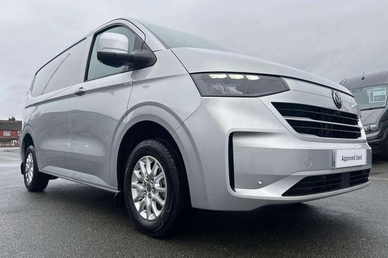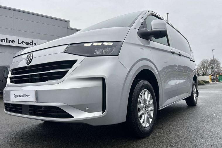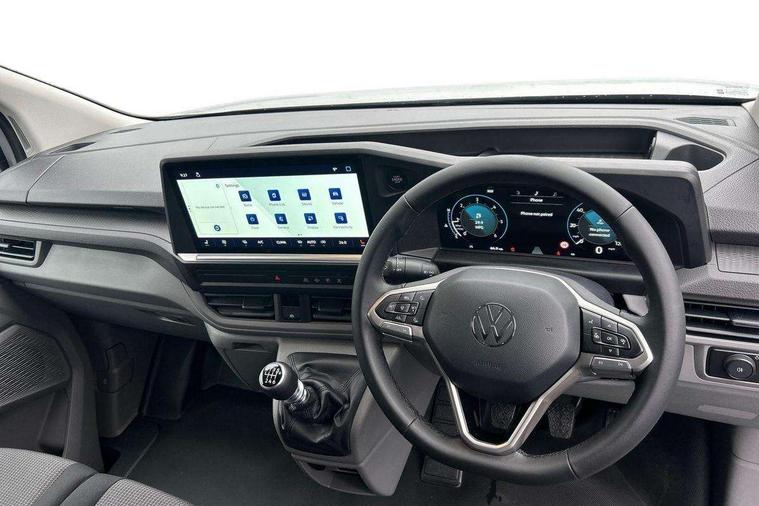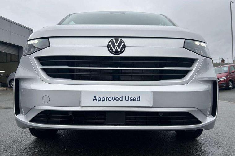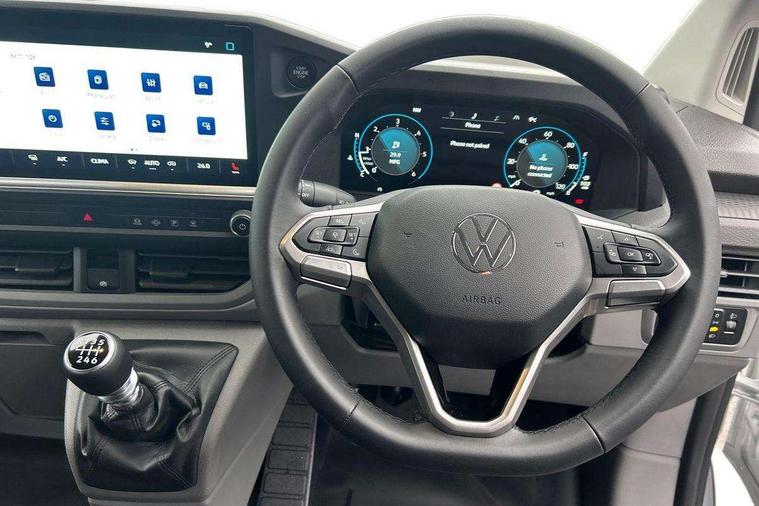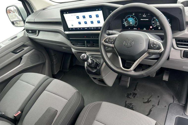 12" digital drivers display, 13" touchscreen infotainment display with wireless app connect and DAB radio, 5G Modem, Adaptive cruise control, Apple CarPlay and Android Auto, Dynamic road sign display, eCall emergency system, Electromechanical speed sensitive power steering, height and longitudinally adjustable steering column, Lane and blind spot assist with exit warning system, Preparation of VW connect and connect plus, Wireless mobile phone charging, Wrong way driver warning, Body colour bumpers, Body coloured door handles, Body coloured door mirrors, Body coloured radiator grille, Electrically heated, adjustable and folding door mirrors, Heat reflecting side window glass, Mud flaps front and rear, Rear Transporter nameplate in black grained decorative trim, Vehicle opening configuration 1x 1st row of seats, 2x all doors, 12V outlet in centre console and 12V outlet on rear right D-pillar, 2x 15-W USB data/charging ports in dashboard and 1x USB-C, 1x USB-A center bottom, 2x LED lights in load compartment, 3x additional super bright LED lights in load compartment, 4 way height and tilt adjustable head restraints, 5 additional USB-C charging ports, Black plastic scuff plate for sliding door in cargo without illumination, Cabin interior lighting, Glasses compartment in driver side roof, Grab handle on A-pillar passenger side, Illuminated lockable glovebox, Lashing rings for reinforced floor covering, Leatherette gear lever, Narrow centre console with cup holder and compartment for mobile phone, Overhead storage compartment, Rubber floor covering in cab, Striped fabric upholstery, Without passenger seats in load compartment, Driver and front passenger airbag with front passenger airbag deactivation, Dual tone horn, Front and curtain airbags for driver and front passenger, Seat belt pretensioner for driver seat, Anti theft alarm system with interior monitoring in cab, backup horn and towing protection, Electronic immobiliser, Lockable wheel bolts, Preparation for alcohol ignition interlock, 5+ Promise, Alternator - 230A, Electromechanical brake booster, Electronic stability control, ABS, ASR with deactivation button, hill start assist and brake assist system,