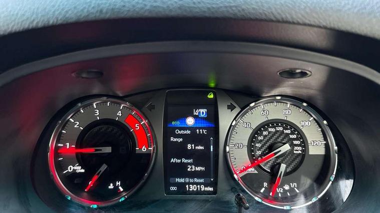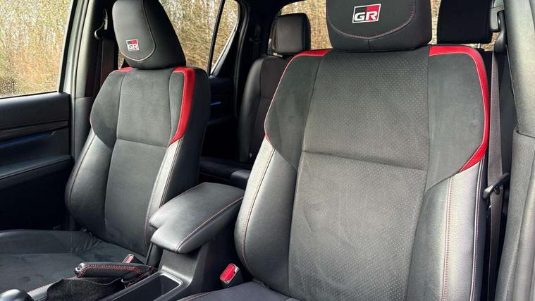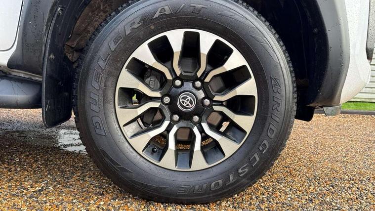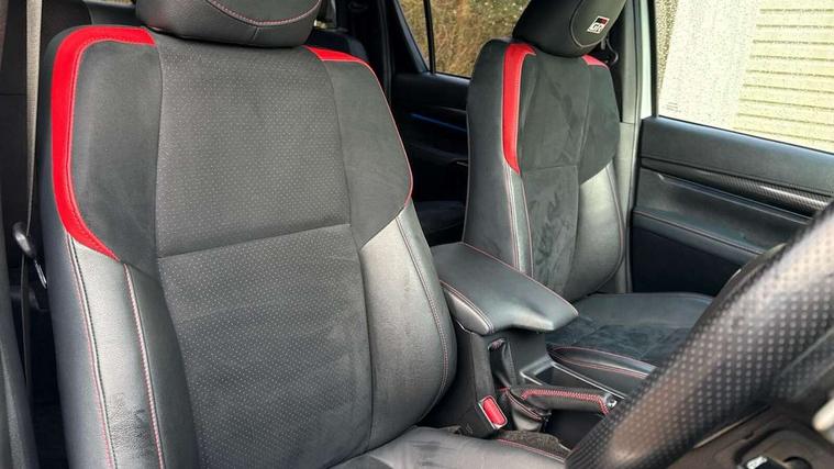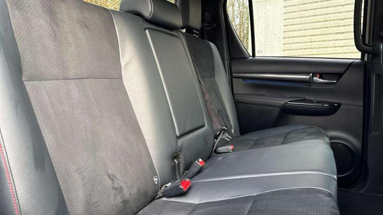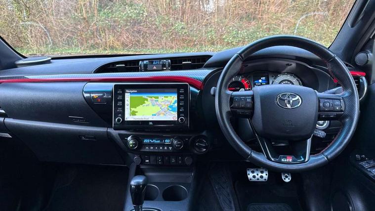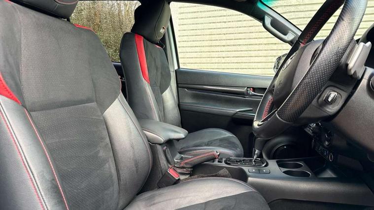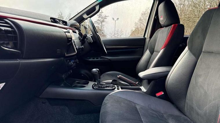 4.2" Multi information display, Bluetooth connectivity, Dynamic guide lines on reversing camera, Front and rear parking sensors, Fuel heater, Intelligent adaptive cruise control, Lane departure warning system, Lights on warning buzzer, Panoramic view monitor, PAS, Pre-collision system with pedestrian detection, Rear view camera, Road sign assist, Smart phone integration with Android auto & Apple CarPlay, Tachometer, Touch 2 multimedia system with 8" display + GO navigation system, Digital radio (DAB), JBL Premium sound system with 9 speakers, MP3 compatibility, Steering wheel mounted audio controls, USB connector, Auto dimming rear view mirror, Auto Headlights, Automatic headlamp levelling, Black door handles, Black door mirrors, Black G-Mesh Grille, Black side steps, Body coloured front bumper, Dark grey rear bumper, Emergency brake light assist (EBS), Follow me home headlights, Front power windows with auto up and down function, Front wiper De-icer, Headlight cut-off reminder, Headlight washers, Heated door mirrors, Heated rear window, LED Daytime running lights, LED dual beam projector headlights, LED front fog lights, LED rear lights, Mud flaps front and rear, Power rear side window, Power retractable door mirrors, Rear fog lights, Rear window privacy glass, Trailer sway control, Underbody protection cover, Variable front wipers, Windscreen shadeband, 220V power socket, 60/40 split tip-up rear bench seat, Alcantara/Leather upholstery, Ambient door lighting, Carpet covered floor, Centre console coolbox, Centre console with lid, storage and armrest, Cooler in upper glove box, Dual zone auto A/C, Heated front seats, Heated rear seats, Inner load hooks on cargo deck, Leather steering wheel and gearshift lever, Locking glovebox, Power adjustable drivers seat, Rear passenger footwell heating, Tilt adjustable steering wheel, Automatic front passenger airbag on/off switch, Child proof rear door locks, Front passenger airbag detector, Front seatbelt pre-tensioners + force limiters, Front seatbelt reminder, Isofix child seat preparation, Rear seatbelt pre-tensioners with load limiters, Supplement restraint system (SRS) 7 airbags - driver and passenger, knee, side and curtain, Immobiliser, Lockable tailgate, Remote central locking, Smart entry and start system button, 2 12v sockets, ABS with EBD, Auto limited slip differntial, Brake assist, Downhill Assist Control (DAC), Front and rear monotube shock absorbers, Front red coil springs, Hill start assist, Load sensing proportioning system, Stop/start function, Traction control, Vehicle stability control, 17" Bi - tone black machined face GR Sport alloy wheels, All terrain tyres, Full size alloy spare wheel, GR Sport black wheel caps,