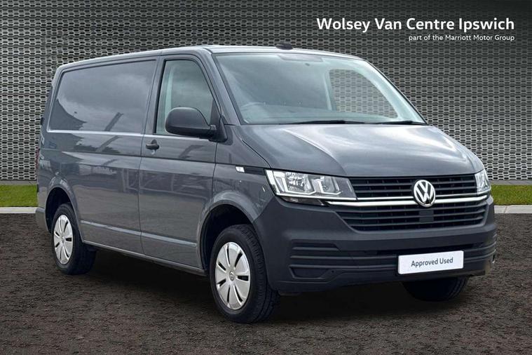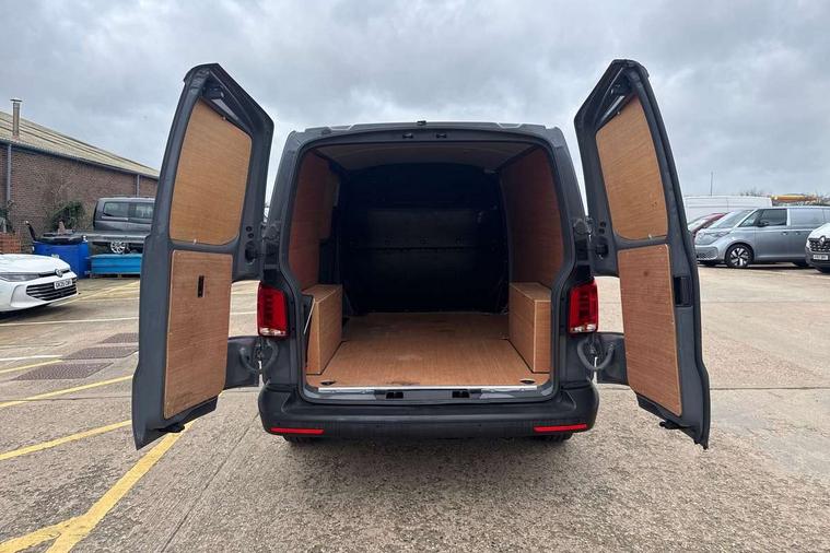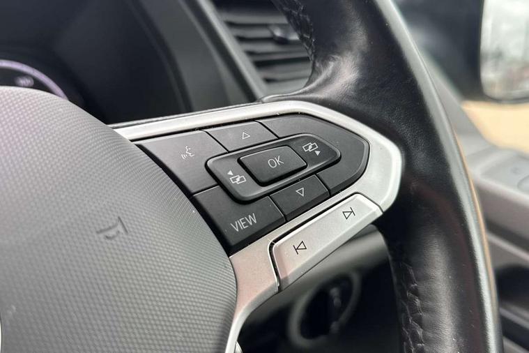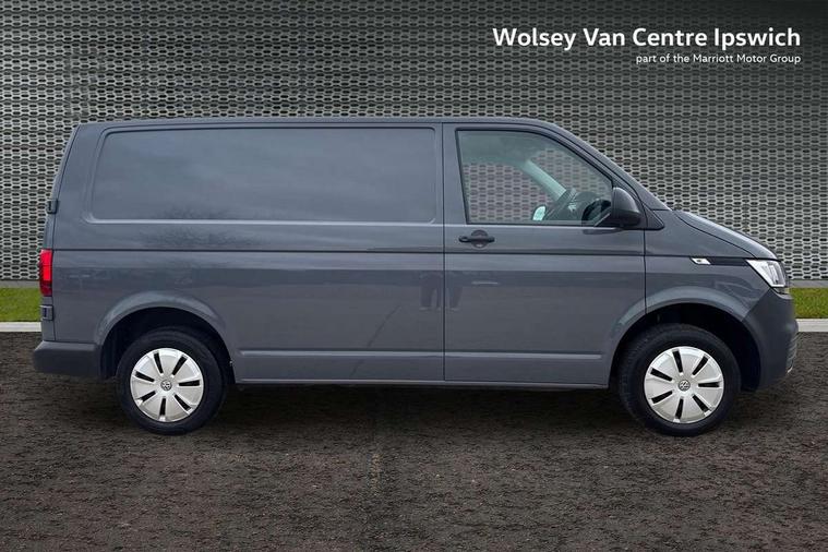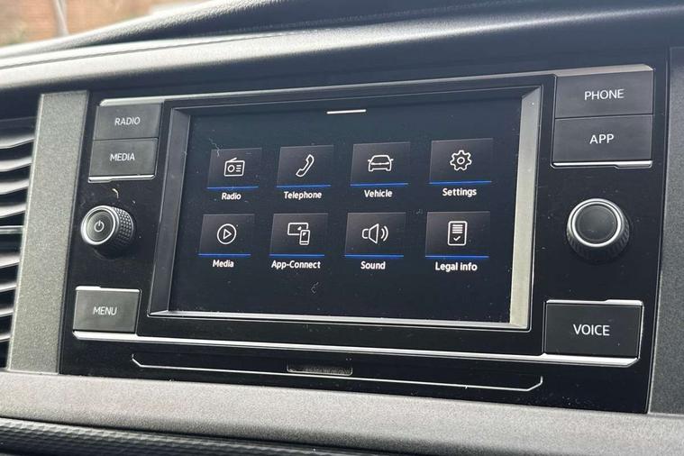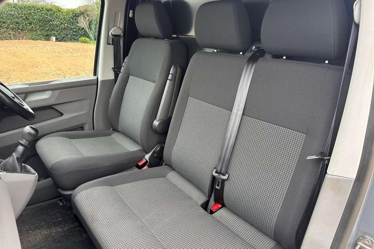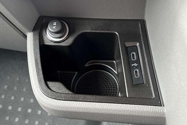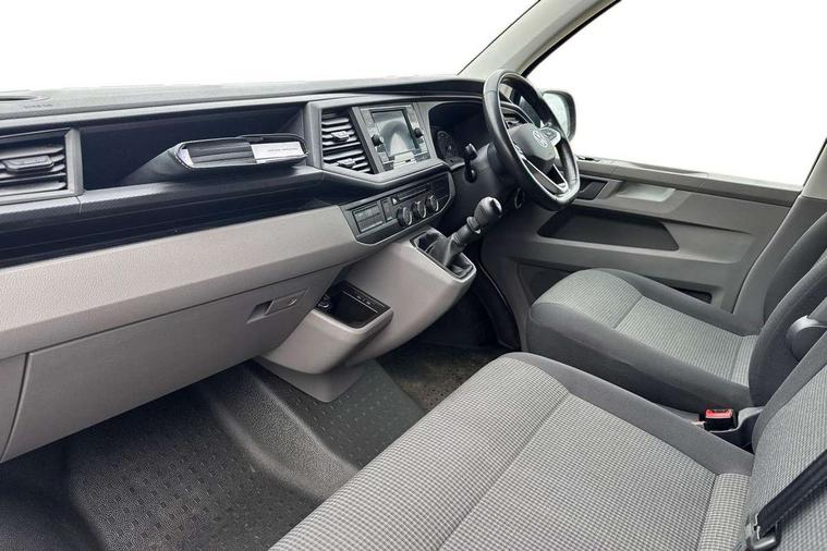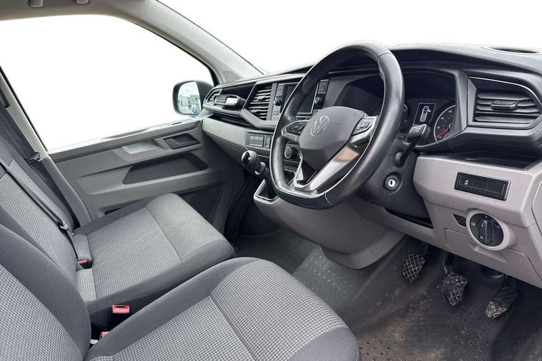 Cross wind assist, Dimmable illuminated instruments, Driver alert with Multi-function display plus, eCall emergency system, Forward collision warning front assist with autonomous emergency braking, Mobile phone interface, Multi function display plus with black and white display, 2 USB interfaces type C in dashboard, 4 speakers with 2 tweeters and 2 woofers, Composition colour radio with 6.5" touchscreen, Digital radio reception (DAB+), Volkswagen app connect, 4 stages windshield wiper intermittent control for windshield wipers, Closing rear wing door with unlatching from the inside, H7 twin halogen headlamps, Heat insulating glass (green) in cab and passenger/load compartment, Heat insulating windshield made of laminated glass, Left convex exterior mirror, Rear wing doors without window apertures, Right convex exterior mirror, Separate Daytime running lights, Transporter nameplate on the rear fender, Unpainted radiator grille with 2 chrome trims, 3 spoke leather wrapped multi function steering wheel, Comfort headliner in cab, hardboard roof trim in passenger and load compartment, Dust/pollen filter, Folding grab handles on roof frame, Front and rear left without window closed side panel in load compartment, Front seats on the right in 1st row of seat, Glove compartment without illumination, Heavy duty tool kit and jack, High partition, Interior plastic loading edge protection, LED Interior lighting in load and passenger compartment, Manual adjustable lumbar support for right single seat in 1st row seats, Standard lower part dashboard in palladium, Without breakaway interior rear view mirror, Without refrigerant, Without right side window apertures in passenger and load compartment, Non smoker pack - Transporter, 3 point height adjustable seat belts on outer seats cab with electric pretensioners, Driver and front passenger airbag with front passenger airbag deactivation, Warning buzzer and light for driver and front passenger seat belt not fastened, Without child safety lock in passenger compartment, Electronic immobiliser, Wheel bolts without wheel locks, 16" chassis with 16" brake system, Diesel particulate filter, Electronic stability control, ABS, ASR with deactivation button, hill start assist and brake assist system, Standard anti drum measures, Start/stop system with regenerative breaking,
