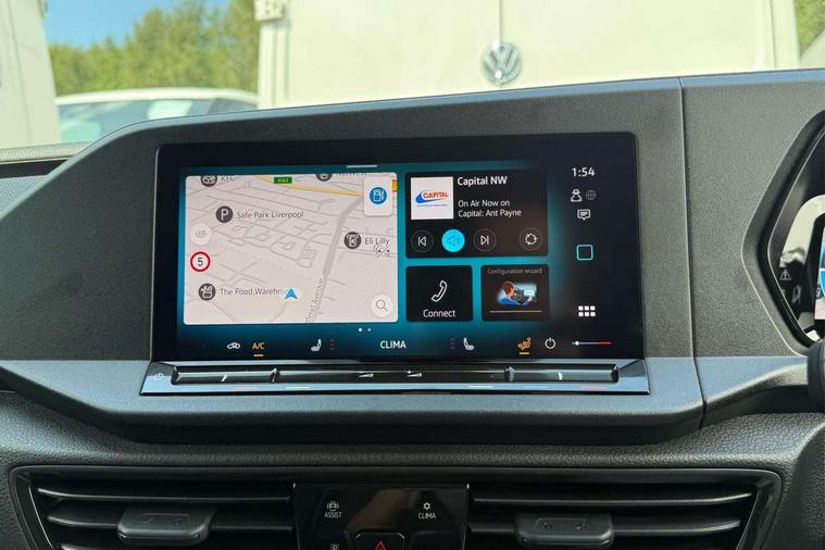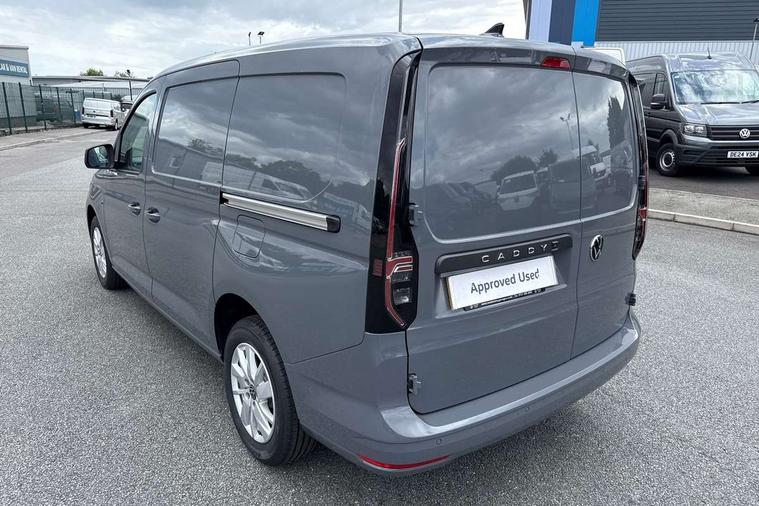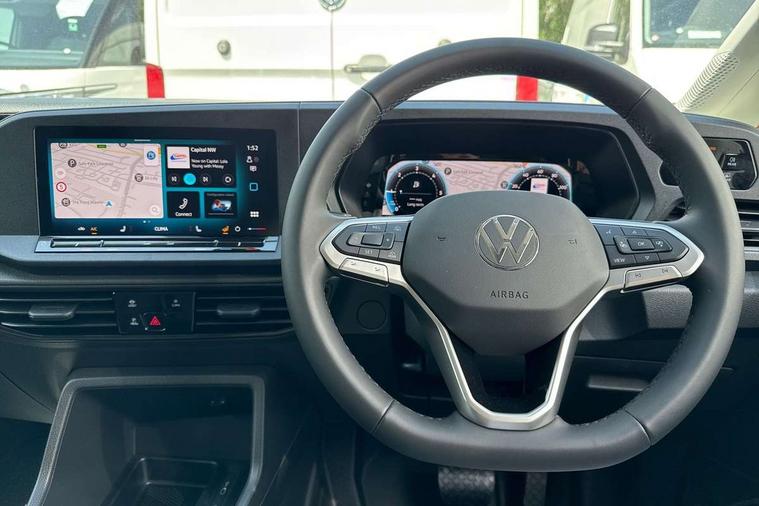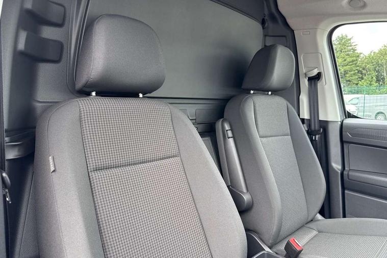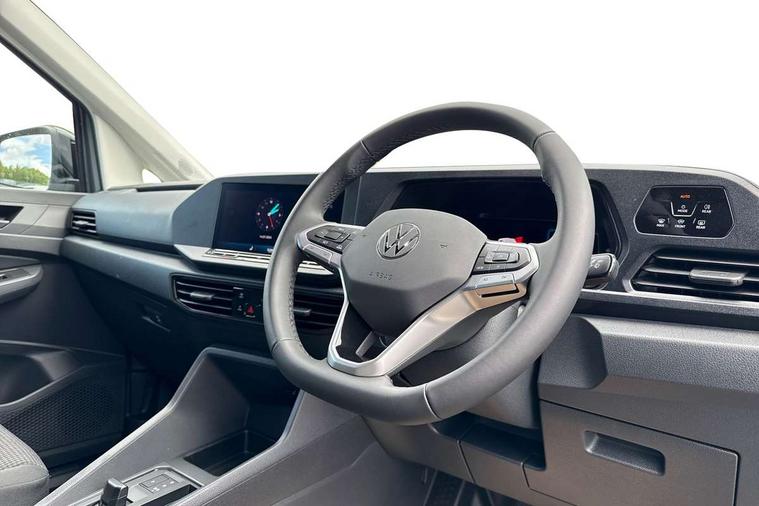 Bluetooth - Mobile phone interface, Car2X technology, Driver alert system, eCall emergency system, Intelligent Speed Assist, Lane assist, Seatbelt warning indicator, Service indicator, Start-stop system with regenerative braking, 2 USB interfaces type C in dashboard, App-Connect - Wireless for Apple CarPlay, DAB Radio, We Connect Plus Preparation, Automatic hazard light activation under emergency braking, Black painted exterior mirror housings, body-colored door handles and Silver sliding door rail, Body coloured bumpers, Electric front windows, LED rear combination lights, LED rear tail lights, Roof rail preparation, Windscreen wiper with variable intermittent delay and wash-wipe system, Dimming breakaway interior rear view mirror, Electronically controlled heating system, ergoComfort seats for driver, Interior light in headliner incorporting LED technology, Lockable glove compartment door with light, Manual heating and ventilation system, Manual height adjustment for front seats and seat cushion inclination and depth adjustment on drivers seat, Multi function leather steering wheel, Power-adjustable lumbar support for drivers seat, Reach and rake adjustable steering column, Six lashing points for securing loads, Steering wheel paddle shift, Storage compartments under driver and front passenger seats, Sun visors with mirror, airbag label on front passenger sun visor, Winter pack plus - Caddy, 3-point seat belts in front, with pretensioner and height adjustment, Driver and front passenger airbag with front passenger airbag deactivation, Tyre pressure monitoring system, Anti-theft alarm system, interior monitoring, backup horn, and towing protection, Electronic engine immobiliser, Remote central locking with deadlocks, interior locking, Anti locking braking system (ABS), Automatic post collision braking system, Brake assist, Diesel particulate filter, Electric parking brake with auto hold function, Electronic brake force distribution (EBD), Electronic differential lock (EDL), Electronic stabilisation programme (ESP), Engine drag torque control (MSR), Hill hold assist, Traction control system (TCS), Decorative beige birch vein inserts, Wheel bolts with anti-theft protection (unlockable),