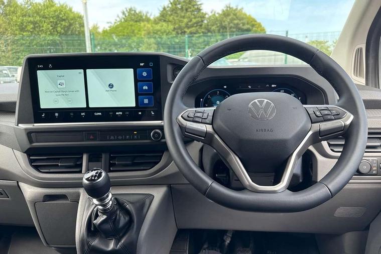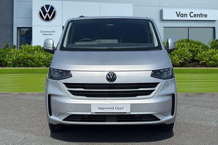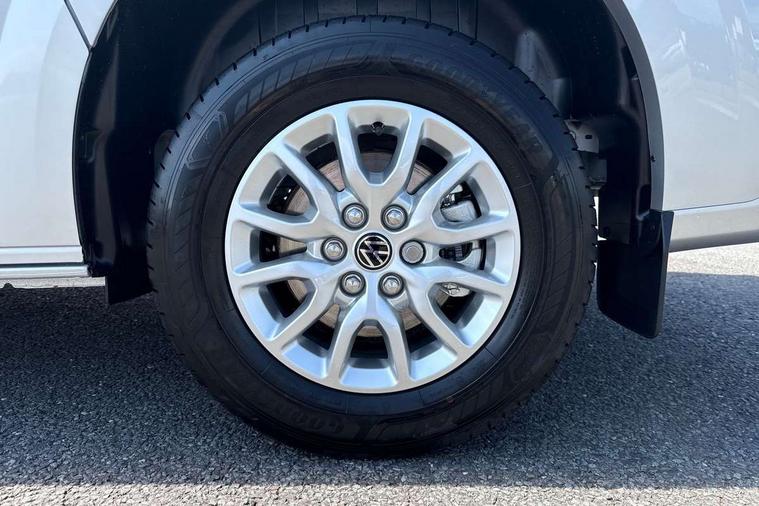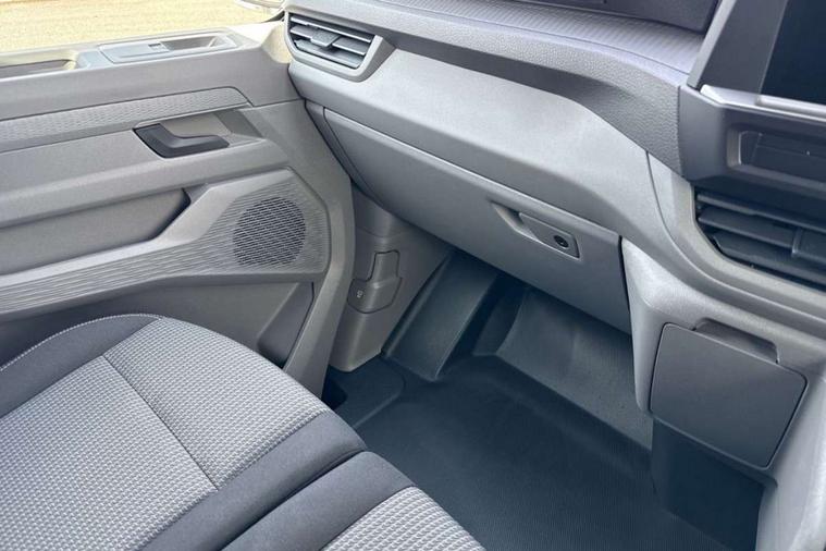 12" digital drivers display, 13" touchscreen infotainment display with wireless app connect and DAB radio, 5G Modem, Adaptive cruise control, Apple CarPlay and Android Auto, Dynamic road sign display, eCall emergency system, Electromechanical speed sensitive power steering, height and longitudinally adjustable steering column, Lane and blind spot assist with exit warning system, Preparation of VW connect and connect plus, Wireless mobile phone charging, Wrong way driver warning, Body colour bumpers, Body coloured door handles, Body coloured door mirrors, Body coloured radiator grille, Electrically heated, adjustable and folding door mirrors, Heat reflecting side window glass, Mud flaps front and rear, Rear Transporter nameplate in black grained decorative trim, Vehicle opening configuration 1x 1st row of seats, 2x all doors, 12V outlet in centre console and 12V outlet on rear right D-pillar, 2x 15-W USB data/charging ports in dashboard and 1x USB-C, 1x USB-A center bottom, 2x LED lights in load compartment, 3x additional super bright LED lights in load compartment, 4 way height and tilt adjustable head restraints, 5 additional USB-C charging ports, Black plastic scuff plate for sliding door in cargo without illumination, Cabin interior lighting, Glasses compartment in driver side roof, Grab handle on A-pillar passenger side, Illuminated lockable glovebox, Lashing rings for reinforced floor covering, Leatherette gear lever, Narrow centre console with cup holder and compartment for mobile phone, Overhead storage compartment, Rubber floor covering in cab, Striped fabric upholstery, Without passenger seats in load compartment, Driver and front passenger airbag with front passenger airbag deactivation, Dual tone horn, Front and curtain airbags for driver and front passenger, Seat belt pretensioner for driver seat, Anti theft alarm system with interior monitoring in cab, backup horn and towing protection, Electronic immobiliser, Lockable wheel bolts, Preparation for alcohol ignition interlock, 5+ Promise, Alternator - 230A, Electromechanical brake booster, Electronic stability control, ABS, ASR with deactivation button, hill start assist and brake assist system,
