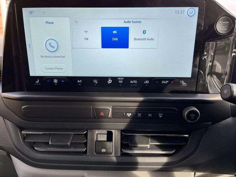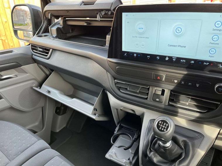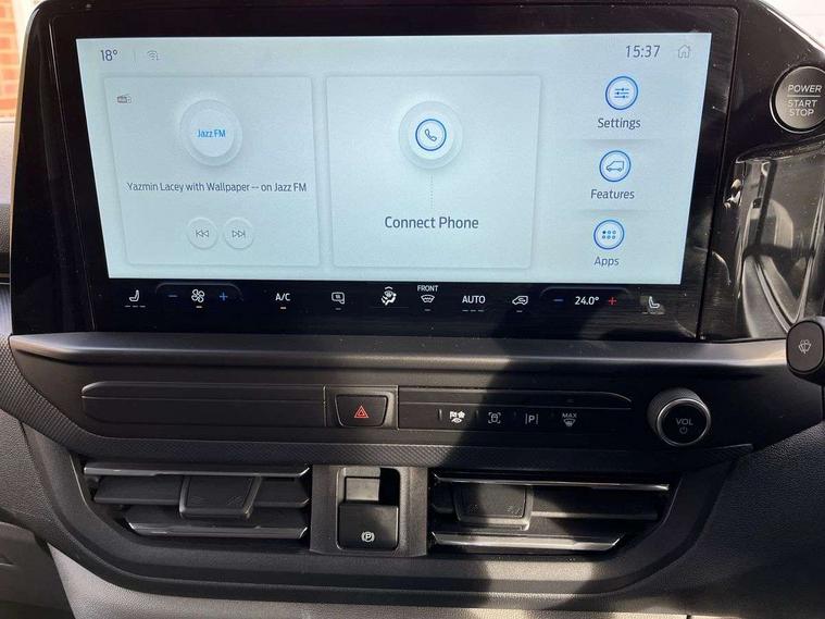 13" Touchscreen, 5G embedded modem, AECS NO SMS/Roll Detect 2G, PAS, Tyre pressure monitor, SYNC 4 - Android Auto/Apple Car Play, advance speech recognition, over the air update capability, Automatic headlights, Automatic windscreen wipers, Body coloured door mirrors, Body coloured front bumper, Body coloured rear bumpers, Daytime running lights, Electric front windows with one touch facility for driver and front passenger, Front mud flaps, Front splash guards, Low roof line, Quickclear front window defroster, Rear cargo hinged door, Rear splash guards, Trailer sway control, 6 Load compartment tie down loops, Courtesy light, Interior grab handle with driver's sunglasses holder, LED lights, Locking glove box lid, Sensico gearshift knob, 2 remote keys, Alcohol Interlock wiring preparation pack, Keyless entry and start, Locking wheel lug nut, Thatcham category 1 alarm, 20L AdBlue tank, ABS, Diesel particulate filter, ESP, Hill launch assist, Traction control, Full wheelcovers,