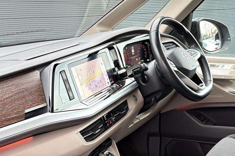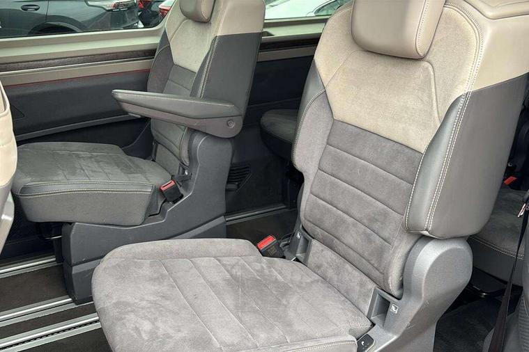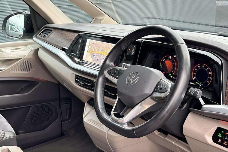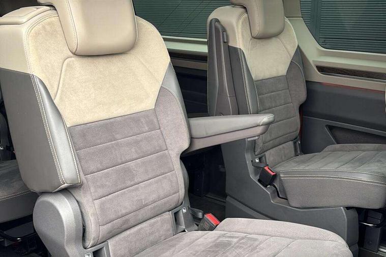 Adaptive cruise control with C2X including front assist and city emergency braking system, App-Connect incl. App-Connect Wireless for Apple CarPlay and Android Auto, Digital Cockpit Pro with 10.25" Display, Driver alert system, Dynamic road sign display, eCall emergency system, Electric tailgate with virtual pedal, Electrically-operated tailgate opening and closing function (Easy open), operated via foot movement under rear tailgate, Emergency assist, Lane keeping system Lane Assist, Mobile phone interface, PAS, Semi-automated driving assistance, Socket AC Type 2, Travel assist, Voice control system including Alexa web app, We connect preparation, 1 x 6 metre charging cables - 16amp AC cable for wallbox chargepoints (mode 3), Electronic differential lock, 2 USB-C ports in front and 4 USB-C ports in passenger compartment, Digital radio reception (DAB+), Additional interior noise reduction measures, Advanced high beam control dynamic light assist for LED matrix headlamps, Automatic headlight control with welcome home lights, Body coloured exterior door handles, Break away auto dimming rear view interior mirror, Chrome trim decorative strip mid-way on side and rear, Dynamic headlight range control with dynamic cornering light, Electric sliding rear side door on the left/right with easy open feature, Electrically adjustable, heated and folding door mirrors, Front fog lights, Glossy black painted radiator grille with 2 illuminated chrome trims, Heated rear window with window wiper and washer system, Heated windscreen, High gloss black exterior mirror housing, IQ.Light LED matrix headlamps with LED separate daytime running light, Laminated safety glass windshield, heat and sound insulating, LED 3rd brake lamp, LED rear combination lamps, Rear wiper, Sliding windows in front sliding doors and fixed rear windows, Stainless steel tailgate trim, Surround lighting in door area and tailgate with logo projection in door area, Windshield wiper intermittent control with rain sensor, 1 x 12V sockets on the dash panel, 12V socket in passenger compartment, 3 seat bench in 3rd row, 30 colours ambient interior lighting and tailgate surround lighting, 7 single seats removable/movable, Carpet mats in cab, Climatronic 3 zone air conditioning with 2nd evaporator, auxiliary heater, air conditioned headliner and additional passenger control, Front and rear head restraints, Grab handles on A pillar for access, on driver and front passenger side, Heated steering wheel, Height adjustable seats, Height and longitudinal adjustment steering wheel with gear shift paddles, Illumination lockable glovebox compartment, ISOFIX (including i-size) and top tether in all seats in 2nd and 3rd rows, LED luggage compartment lighting X 2, Load compartment partition to 20kg with bag hooks and luggage net, Luggage compartment lid power latching with unlatching from inside, Multifunction leather steering wheel with tiptronic, Reinforced carpet floor covering in passenger compartment, Removable armrests for front seats with power adjustable lumbar support and folding table for 2nd row passenger seats, Removable armrests in 2nd row passenger seats, Single front passenger seat, Slidable multifunction table/centre console with 3 cup holders, Stainless steel pedals, Storage compartment under the 2nd and 3rd row seat and two waste bins, Sun visors with illuminated vanity mirrors and airbag warning label on front passenger sun visors, 3x3 point rear seat belts, ABS, Automatic post collision braking system, Autonomous emergency braking front assist with pedestrian and cyclist monitoring, Driver and front passenger airbag with front passenger airbag deactivation, Electric childproof lock, Electronic stability control (ESC) and Electromechanical brake booster, ESP, First aid kit with warning triangle and safety vest, Front disc brakes, Hill hold assist, Seat belt warning for the drivers and all passengers seats if unfastened, Side and curtain airbags for driver and front passenger, curtain airbags for outer seats in rear, centre airbag in front, Single tone horn, Traction control, Tyre pressure monitoring system, Anti theft alarm system with interior monitoring in cab, backup horn and towing protection, Central locking system keyless entry with touch two stage unlocking, Start/stop button on centre console, Dark woodgrain optic decorative inserts,