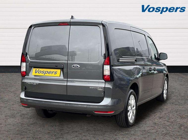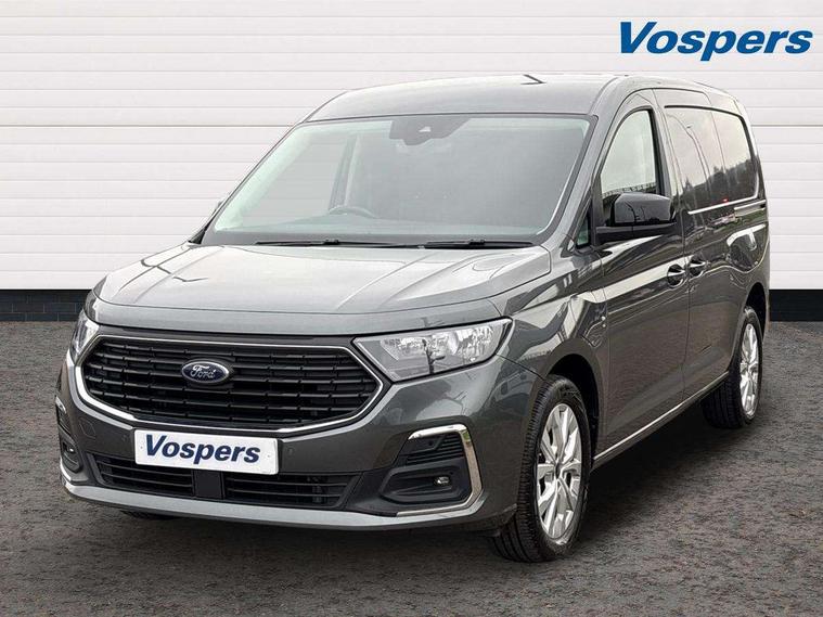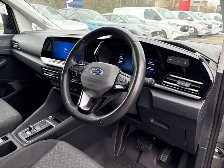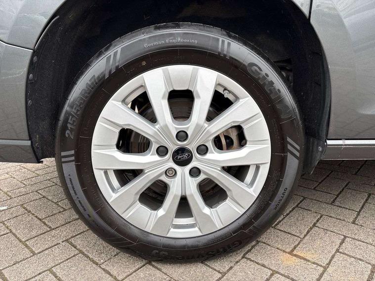 10" touchscreen infotainment display with volume and temperature slider controls, Android Auto and Apple Carplay with USB or wireless connectivity, Brake wear indicator, Enhanced digital cluster with navigation integration, Fordpass connect modem including eCall, Front camera system, PAS, Tyre pressure monitoring system with cluster display of tyre pressures, Wireless charging pad, 4 speakers, DAB radio bluetooth, voice control and navigation, Two USB (45W type C) front power/Data points, Auto Headlamps - Follow Me Home, Automatic headlamps on/off, Automatic windshield wiper, Black painted exterior mirror caps, Body colour door handles with silver door rail, Body coloured exterior tailgate handle, Body coloured front bumper, Body coloured rear bumper, Chrome grille and fog light surrounds, Day and night inside mirror, Dual power heated mirrors, Emergency brake light flashing, Front fog lights, High mounted stop lamp, Less roof rails, Misfuel Inhibitor, Power folding door mirrors, Power front windows - One touch up-down, Quickclear electric windshield defroster, Rear tinted glass, Standard green class windscreen, Tail lamps, Weather protection seals, 12V socket in cabin, 2 way front headrestraints, 4 way manually adjustable driver seat, 4 way manually adjustable passenger seat, Cargo area dual LED lights, Cargo area hardboard trim, Centre console with open stowage, Chrome air register, Driver and passenger sunvisor with mirror, Driver seat rotary recliner, Electronic dual zone automatic air conditioning, First row LED light with map lights, Fold flat passenger seat with integrated work surface, Foot pedal, Overhead storage compartment, Pollen filter without carbon filter, Reach and rake adjustable steering column, Recirculation heater, Rubber cab floor cover, Rubber load floor cover, Sensico gear shift knob, Sensico steering wheel, Silver interior door handles, Curtain airbags, Driver and front passenger airbag, Driver and passenger seatbelt reminder, Front active seat belts, Front passenger airbag deactivation, Front seat belt adjuster, 2 remote keys, Ford KeyFree system with power starter button and deadlocking, Immobiliser, Locking wheel bolts, Thatcham alarm system, 12v socket on cargo area, 50L fuel tank, ABS, Charging cable (Type 2 Mode 3), Electric parking brake, Emergency brake assist, ESP, RSC, wind mitigation, Standard duty alternator, Start/stop system, Traction control, Gloss black cluster and infotainment bezels with silver painted instrument panel spear, 17" silver alloy wheels with blue centre caps, 215/55 R17 tyres, Tyre repair kit,