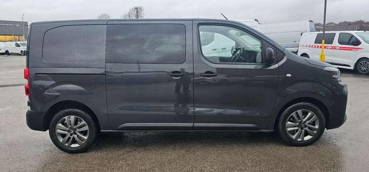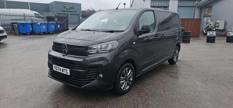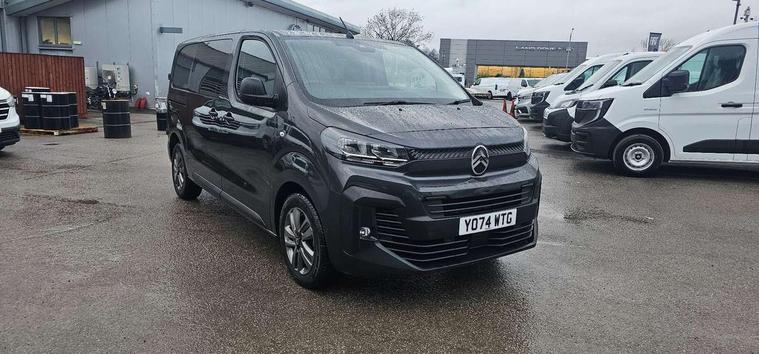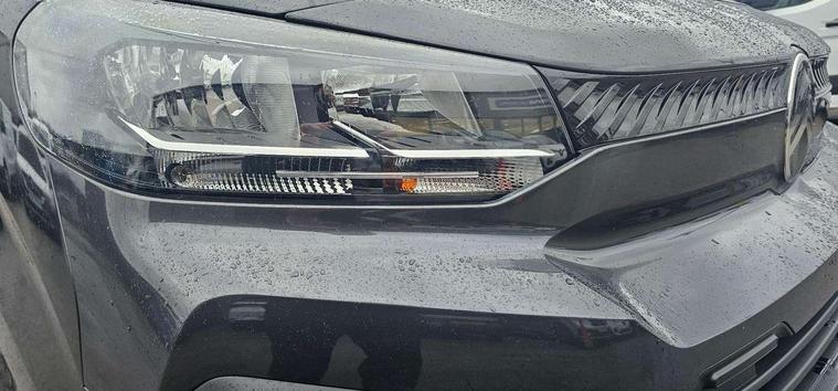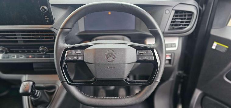 10" digital instrumental cluster, Citroen connect box with emergency and assistance system, Driver Attention Alert, level - 3, Electronic power steering (EPS), Intelligent speed assistant, Lane keeping assist, Locking fuel cap, Multi-function on-board trip computer, Rear parking distance sensor, Rev counter with maintenance and gear efficiency indicators (GEI), TPMS (Tyre pressure monitoring system), 10" Colour touchscreen + Citroen connect DAB radio, Apple CarPlay and Android Auto, Bluetooth handsfree, USB socket, bituner, coffee break alert, Audio controls mounted on steering wheel, Flexible short antenna (200mm), Two speakers and two tweeters, Automatic headlamps on/off, Automatic two speed and intermittent front wipers, Black front and rear bumpers, side rubbing strips and exterior door handles, Electrically adjustable + heated door mirrors, Fixed side windows in row 2 with noise reducing dark tinted glass, Front electric windows with one touch operation and anti-pinch, Front windows tinted to 30 percentage opacity, Halogen headlamp with integrated daytime running lights, High beam assist, High level third brake light, Laminated acoustic windscreen, Offside and nearside sliding side access doors, Preparation for towbar-wiring and connector for towbar interface, Rain sensitive windscreen wipers, 12V socket in cabin, 12V socket in load area (LHS at bottom of D-pillar), 2x USB socket in B-pillar, Air recirculation facility, Chilled glovebox facility, Closed upper and open lower gloveboxes, Cloth upholstery, Cup holders for driver and passenger in top of dashboard, Dashboard storage areas, Dual front passenger bench seat with under seat storage tray, Ergonomic 6-way adjustable driver's seat with reach, rake, height and lumbar adjustment, Fixed floor mounted load restraint lashing eyes x4, Front door pockets with 1.5L bottle holder, Full toughened plastic bulkhead, insulated for sound and temperature, with polycarbonate window, Hard plastic floor protection in cabin, Height adjustable head restraints for driver and front passengers seats, Height and reach adjustable steering wheel, Interior roof trim in row 1 and no grab handle in row 2, Manual air conditioning, Overhead console with 1 ceiling lamp (dome type and 3 lamps), Removable storage compartment under left and center seats with area for long payload under right seat, Three individual contoured rear seats with adjustable headrest and 2 armrest, TPO plastic floor in 1st row and painted sheet metal in 2nd row, USB socket in cabin (dashboard), Automatic fuel cut-off and door unlocking in event of accident, Door opening warning and audible lights on warning, Driver and front passenger's airbags with passenger's airbag deactivate switch, Height-adjustable 3-point pre-tensioner seat belts with force limiter, Unfastened seat belt warning for driver and passengers, Dashboard mounted central locking push button and auto locking above 7mph, Remote central locking with deadlocking, selective cab and load area locking via 3 button plip remote control key, Rolling code transponder immobiliser, ABS, Advance emergency braking system, EBA, Electronic brake force distribution (EBFD), ESC, Hill start assist, Mistral black dashboard trim with liquid paladium decor strip in mid-section,