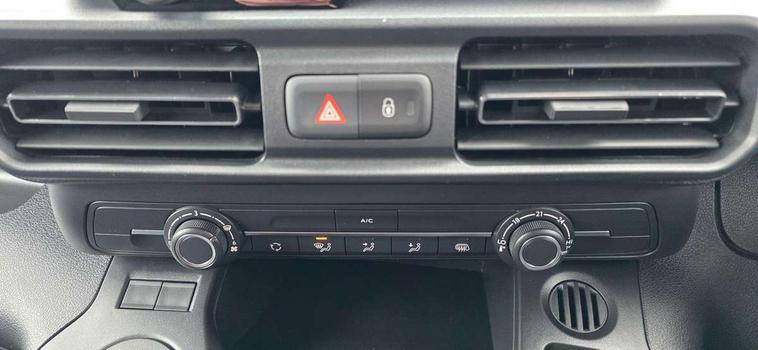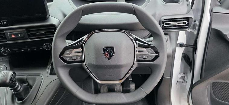 Connected services, Driver attention alert, Intelligent Speed Assist, Lane keeping assist, PAS, Peugeot connect with RCE (emergency call and localization assistance + offers of branded services), Rear parking sensor, TPMS (Tyre pressure monitoring system), Audio controls mounted on steering wheel, Short antenna (200mm), 2 sliding doors without window, Automatic headlamps on/off, Automatic lighting control, Black door handles, Black exterior mirrors, Black front and rear bumpers, Black side moulding, Eco LED headlamps with integrated daytime running lights, Electric front windows with one touch operation, Electrically adjustable + heated door mirrors, High beam assist, Sliding door rail cover with short black trim, 4-way passenger seat (reach/rake) with adjustable headrest, 6-way adjustable driver's seat with reach, rake, height and lumbar adjustment, Air recirculation facility, Black interior air vents, Black interior door handles, Curitiba cloth upholstery, Driver seat armrest, Driver's top lidded glovebox, Fixed floor mounted load restraint lashing eyes x6, Front passenger seat adjustable headrest, Full bulkhead with cloth hooks, Hard plastic floor protection in cabin, Overhead storage shelf with roof light and handle, Reach and rake adjustable steering column, Sport steering wheel, 2x3 point seatbelts in 1st row, Acoustic vehicle alerting system, Automatic activation of hazard warning lights on major deceleration, Driver's airbag, Front passenger airbag, Height adjustable front seatbelts, Row-1 curtain airbag, Row-1 side airbag, Row-1 side thorax airbag, Dashboard mounted central locking push button and auto locking above 7mph, Immobiliser, Primary + spare folding keys, Remote control central deadlocking, 12v socket in dashboard, Electronic Stability Control and ABS with hill start assist, EBA and EBFD, Traction control, 16" Grey steel wheels with half hubcap,