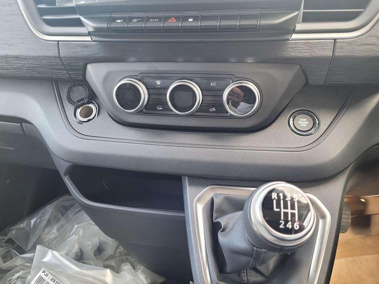 360 degree parking sensors (front, rear and lateral ultra sonic sensors), 7" Colour TFT driver information display, Driver attention alert, Driver drowsiness warning, E-Call - automated emergency call, Easy link navigation with 8" touchscreen DAB radio with bluetooth, USB + aux input, compatible with Apple CarPlay and Android Auto, ECO mode button, Gearshift indicator, Intelligent Speed Assist, Lane departure warning system, PAS, Trip computer, Wireless smart phone integration with Android auto & Apple CarPlay, Automatic high beam, Blind spot mirror on passenger sunvisor, Body coloured door mirrors, Body coloured front bumper, Body coloured side mouldings, Chrome Grille, Electric front windows with one touch drivers window, Front fog lights, Full LED headlights with C-shaped DRL, Heated with electric adjustment door mirrors and external temperature sensors, New brand identity, Roof bar fixings, Wide view mirror, 12V power socket in front, 16 load anchorage points, Climate control, Closed glovebox, Height adjustable drivers seat with armrest and lumbar adjustment, Interior LED cabin lighting, Java cloth upholstery, LED load space lighting, Premium dashboard with horizontal grain and chrome styling, Premium faux leather steering wheel, Look pack - Trafic, Parking pack - Trafic, Visibility pack - Trafic, 3 point height adjustable seatbelts with pretensioners and load limiter, Driver and passenger airbags, Driver and passenger seatbelt reminder, Front lateral and curtain airbags and passenger airbag with deactivation, Alarm - Thatcham T1 volumetric alarm, Alcohol interlock pre-device, Deadlocking, Electronic immobiliser, Hands free key card with push button stop/start function, Keyless entry system, Remote central locking, 20L AdBlue tank, 4 disc brakes, 6 speed gearbox, 80 litre fuel tank, ABS with EBD (Electronic Brake force Distribution), Active emergency braking system, ESC (Electronic Stability Control) with Hill Start Assist and Grip Xtend, 17" Avens diamond cut alloy wheels,