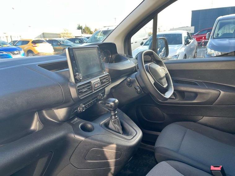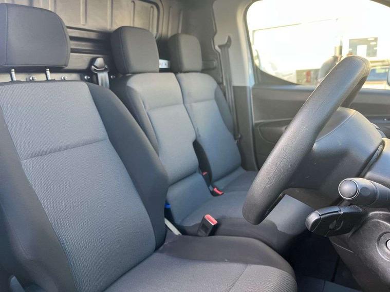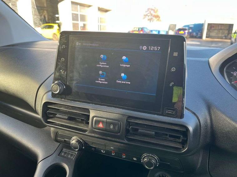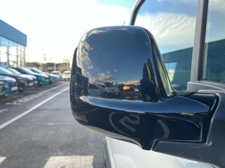 Electric power assisted steering with height and reach adjustable steering wheel, Lockable fuel cap, Multi-function on-board trip computer, Rev counter with maintenance and gear efficiency indicators (GEI), Tyre pressure monitor, Apple Carplay/Android Auto, Electric front windows with one touch operation, Electrically adjustable door mirrors, Electrically folding door mirrors with temperature sensor, Front fog lights, Heated door mirrors, Height adjustable halogen headlights with automatic illumination and integrated daytime running lights (DRLs), High level third brake light, Nearside side sliding door, Two speed intermittent front wipers, Visible VIN at windscreen base, 12 volt socket in dashboard, 6 floor mounted load securing rings, 6 way adjustable driver seat with lumbar support and under seat storage, Cup holders for driver and passenger on either side of the dashboard, Curitiba cloth upholstery, Front door pockets with 1.5L bottle holder, Hard plastic floor protection in cabin, Multiflex modular folding passenger bench seat with pivoting writing table, storage under central seat, load through hatch and load protection cover, Overhead storage shelf in cabin, Upper glove box storage compartment, Automatic activation of hazard warning lights on major deceleration, Door opening warning and audible lights on warning, Driver and passenger seatbelt unfastened warning, Driver's airbag, Dashboard mounted central locking push button and auto locking above 7mph, Manual door lock for front passenger door, Perimetric and volumetric thatcham category 1 approved alarm with tilt sensor, Remote central locking with deadlocking, selective cab and load area locking via 3 button plip remote control key, Thatcham approved rolling code transponder immobiliser, Automatic electronic parking brake, Electronic Stability Control and ABS with hill start assist, EBA and EBFD, Full size steel spare wheel,