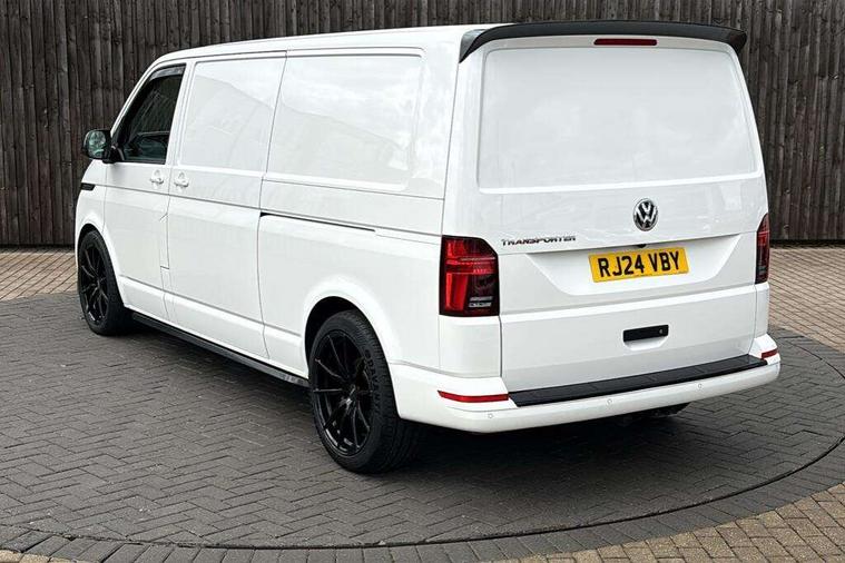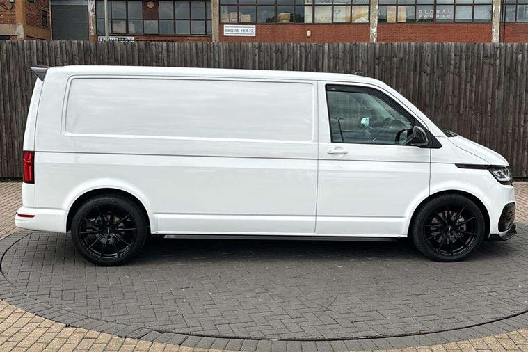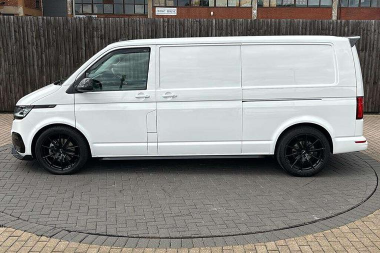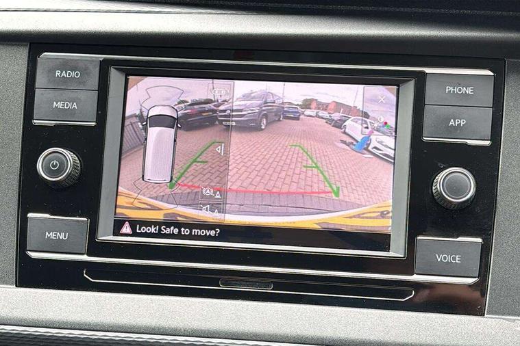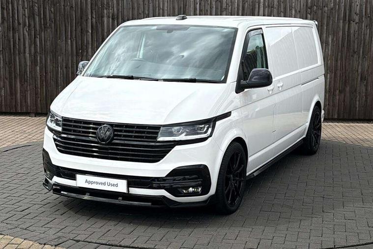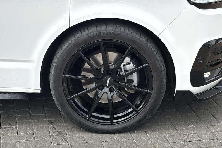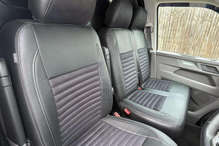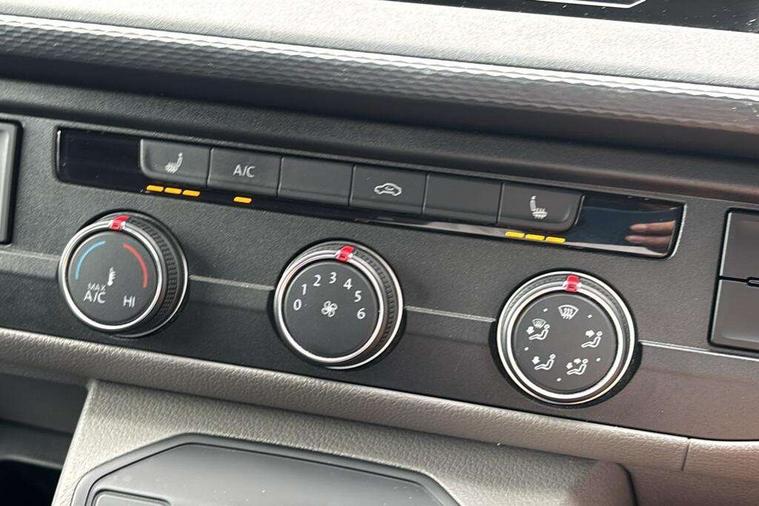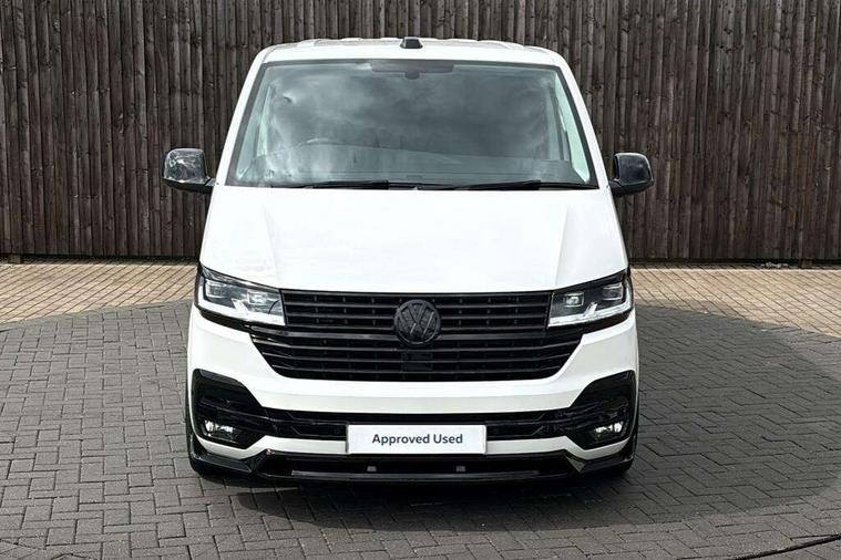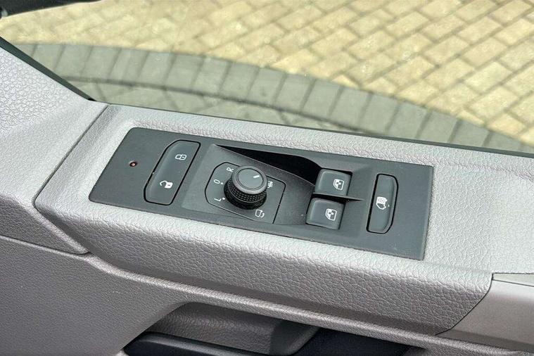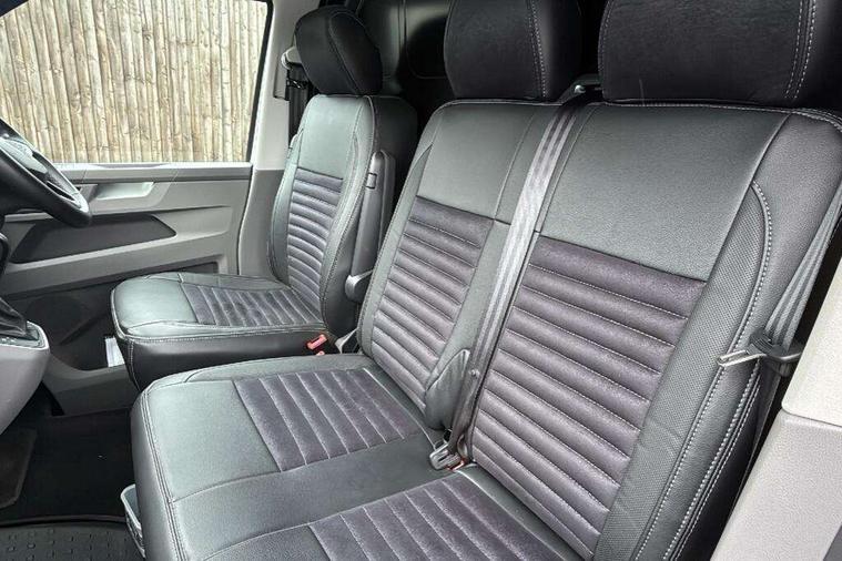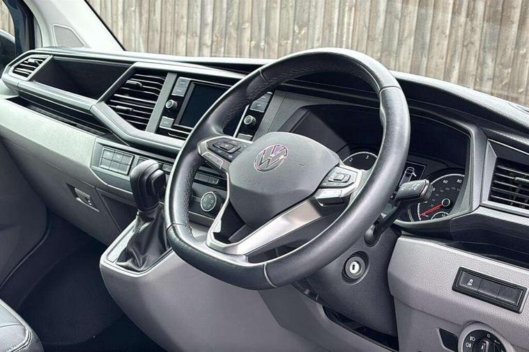 Adaptive cruise control, Cross wind assist, Dimmable illuminated instruments, Driver alert with Multi-function display plus, eCall emergency system, Forward collision warning front assist with autonomous emergency braking, Mobile phone interface, Multi function display plus with black and white display, 2 USB interfaces type C in dashboard, 4 speakers with 2 tweeters and 2 woofers, Composition colour radio with 6.5" touchscreen, Digital radio reception (DAB+), Volkswagen app connect, Closing rear wing door with unlatching from the inside, Front fog lamps with cornering light, Heat insulating glass (green) in cab and passenger/load compartment, Heated front windscreen, Left convex exterior mirror, Power folding adjustable door mirrors with separately heated, Radiator grille with 2 chrome trims, Rear wing doors without window apertures, Right convex exterior mirror, Transporter nameplate on the rear fender, 3 spoke leather wrapped multi function steering wheel, Comfort headliner in cab, hardboard roof trim in passenger and load compartment, Dust/pollen filter, Front and rear left without window closed side panel in load compartment, Front seats on the right in 1st row of seat, Heavy duty tool kit and jack, High partition, Interior plastic loading edge protection, LED Interior lighting in load and passenger compartment, Refrigerant R134a, Standard lower part dashboard in palladium, Storage compartments on cab seats and reading light, Without right side window apertures in passenger and load compartment, Comfort pack - Transporter, Exterior pack without fog light- Transporter, Light and vision pack - Transporter, Non smoker pack - Transporter, 3 point height adjustable seat belts on outer seats cab with electric pretensioners, Driver and front passenger airbag with front passenger airbag deactivation, Warning buzzer and light for driver and front passenger seat belt not fastened, Without child safety lock in passenger compartment, Anti theft alarm system with interior monitoring in cab, backup horn and towing protection, Lockable wheel bolts, 16" chassis with 16" brake system, Diesel particulate filter, Electronic stability control, ABS, ASR with deactivation button, hill start assist and brake assist system, Start/stop system with regenerative breaking, 17" Devonport silver alloy wheels,