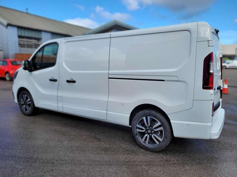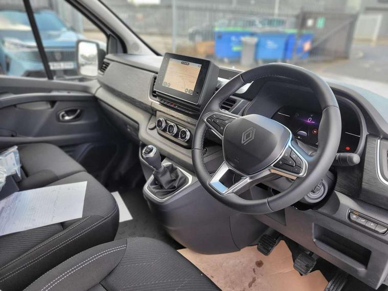 7" Colour TFT driver information display, Driver attention alert, Driver drowsiness warning, E-Call - automated emergency call, Easy link navigation with 8" touchscreen DAB radio with bluetooth, USB + aux input, compatible with Apple CarPlay and Android Auto, ECO mode button, Gearshift indicator, Intelligent Speed Assist, Lane departure warning system, PAS, Rear parking camera, Trip computer, Wireless smart phone integration with Android auto & Apple CarPlay, Automatic high beam, Blind spot mirror on passenger sunvisor, Body coloured door mirrors, Body coloured front bumper, Body coloured side mouldings, Chrome Grille, Electric folding door mirrors, Electric front windows with one touch drivers window, Front fog lights, Full LED headlights with C-shaped DRL, New brand identity, Roof bar fixings, Wide view mirror, 12V power socket in front, 16 load anchorage points, Closed glovebox, Height adjustable drivers seat with armrest and lumbar adjustment, Interior LED cabin lighting, Java cloth upholstery, LED load space lighting, Mobile office fold down middle passenger seat with detachable A4 clipboard and laptop storage, Premium dashboard with horizontal grain and chrome styling, Premium faux leather steering wheel, Look pack - Trafic, Visibility pack - Trafic, 3 point height adjustable seatbelts with pretensioners and load limiter, Driver and passenger airbags, Driver and passenger seatbelt reminder, Front lateral and curtain airbags and passenger airbag with deactivation, Alarm - Thatcham T1 volumetric alarm, Alcohol interlock pre-device, Deadlocking, Electronic immobiliser, Keyless entry system, Remote central locking, 20L AdBlue tank, 4 disc brakes, 6 speed gearbox, 80 litre fuel tank, ABS with EBD (Electronic Brake force Distribution), Active emergency braking system, ESC (Electronic Stability Control) with Hill Start Assist and Grip Xtend, 17" Avens alloy wheels,