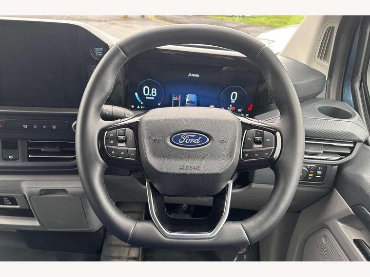 13" Touchscreen, 5G embedded modem, AECS NO SMS/Roll Detect 2G, PAS, Tyre pressure monitor, SYNC 4 - Android Auto/Apple Car Play, advance speech recognition, over the air update capability, Automatic headlights, Automatic windscreen wipers, Body coloured door mirrors, Body coloured front bumper, Body coloured rear bumpers, Daytime running lights, Electric front windows with one touch facility for driver and front passenger, Front mud flaps, Front splash guards, Low roof line, Quickclear front window defroster, Rear cargo hinged door, Rear splash guards, Trailer sway control, 8 Load compartment tie down loops, Courtesy light, Interior grab handle with driver's sunglasses holder, LED lights, Locking glove box lid, Sensico gearshift knob, 2 remote keys, Alcohol Interlock wiring preparation pack, Keyless entry and start, Locking wheel lug nut, Thatcham category 1 alarm, 20L AdBlue tank, ABS, Diesel particulate filter, ESP, Hill launch assist, Traction control, Full wheelcovers,
