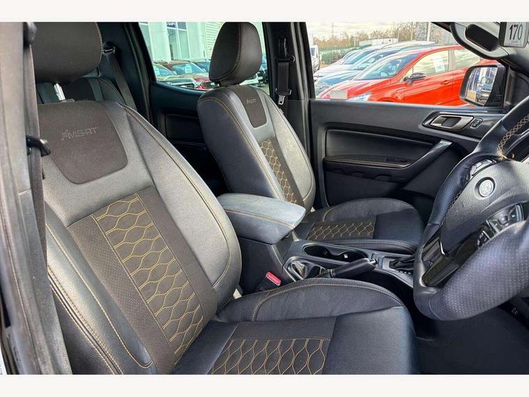 2 key fob, Collision mitigation braking system, Electric power assisted steering, Fixed rear view camera, Intelligent speed assistant, Lane keeping aid, Traffic sign recognition, Trip computer, Automatic headlights, Body coloured plastic front bumper, Boulder grey exterior door handle, Boulder grey exterior door mirror, Boulder grey radiator grille, Daytime running lights, Dual power heated fold back door mirror with puddle lamp and signal, Electrically operated windows with one shot driver's window, Electrochromic interior mirror, Front splash guard and mud flaps, Heated windshield and rear window, High mounted stop lamp with cargo area light, LED Front fog lamp, LED projector headlamps, Moulded in colour tailgate handle, Painted front fender grille, Privacy glass, Rain sensitive windshield wipers, Rear bumper chrome under-bar, Rear bumper step in boulder grey, Rear mudflaps, Roof rails, Side step with brushed inserts, Sports bar, Tailgate - Easy-lift/lower mechanism, Under hood engine cover, Underbody protection, Centre console coolbox, Chrome interior door handle, Driver seat back mounted map pocket, Dual control system - Electronic air temperature control (EATC), Ebony headliner, Heated front seat, Journey grain partial leather upholstery with Wildtrak logo, Leather gearknob, LED ambient interior lighting, Power adjustable 8 way driver seat, Premium front and rear floor mats with Wildtrak logo, Reach and rake adjustable steering column, Roof storage for driver sunglasses, Sport leather stitched steering wheel, Tie down rails and rope hooks, Wildtrak door trim panel insert, ICE feature pack 129 - Ranger, 3 point inertia rear seatbelts, Driver and front passenger airbag, side airbag, curtain airbag and driver knee airbag, ISOFIX child safety seat attachment, Seatbelt reminders for driver and front passenger, Tyre pressure sensors, Double locking power door lock with flip key, Immobiliser, Locking wheel nuts, Passive anti theft system, Passive keyless entry and start system, Power tailgate lock, Spare wheel lock, Thatcham category 1 alarm security system, ABS, ESP and roll over mitigation, Emergency brake assist, Engine start/stop system, Locking rear axle, Power converter,