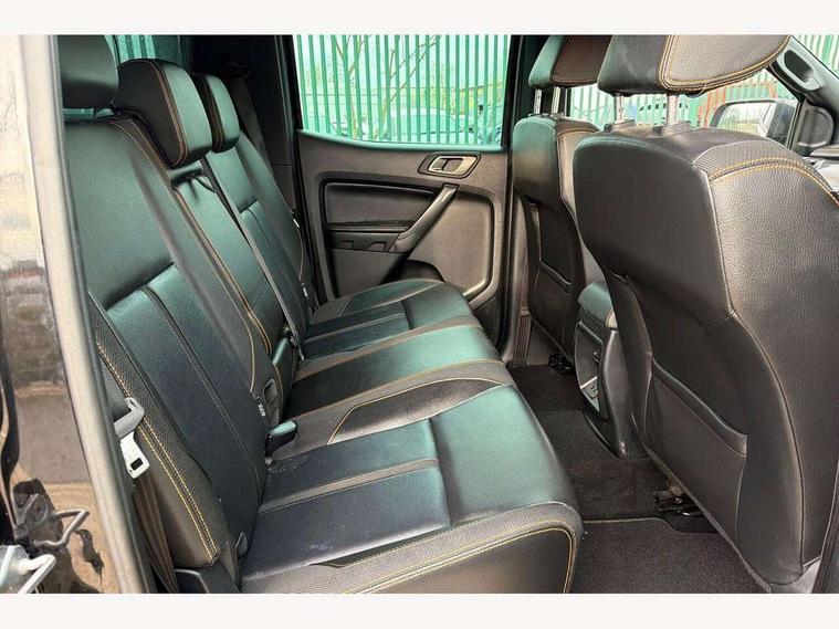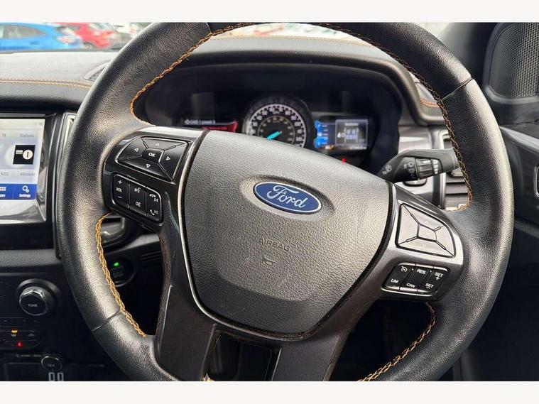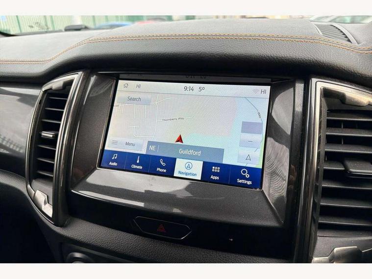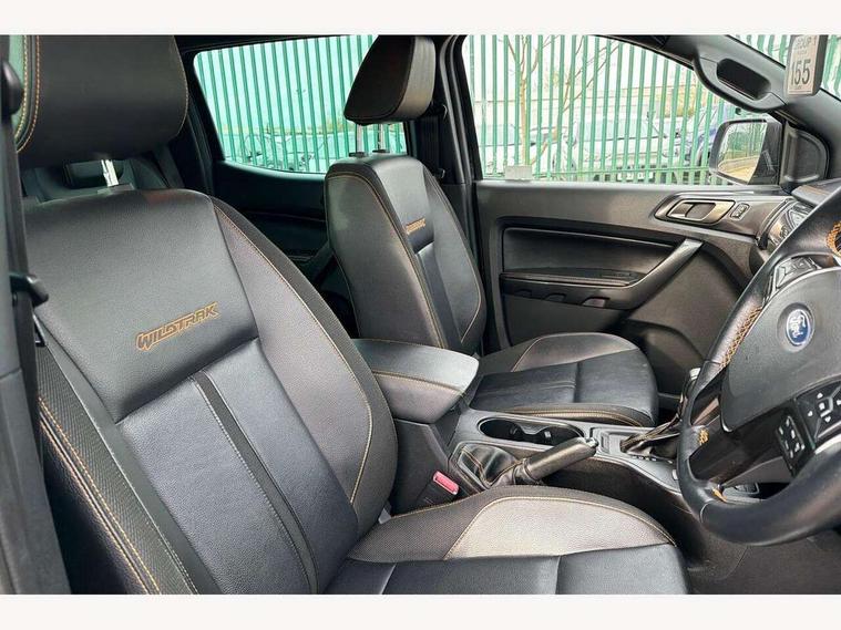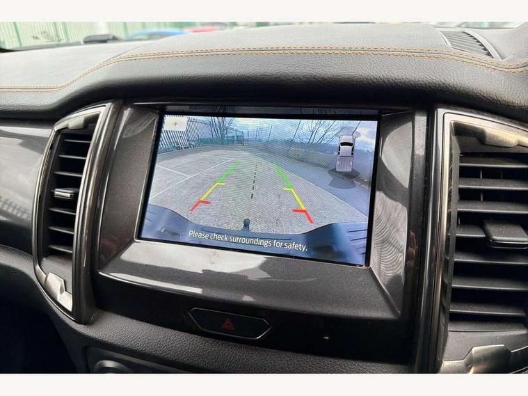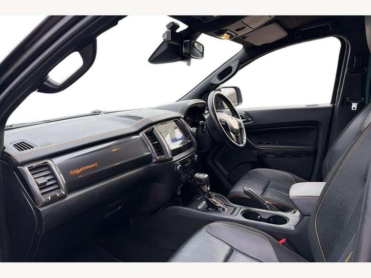 2 key fob, Collision mitigation braking system, Electric power assisted steering, Fixed rear view camera, Intelligent speed assistant, Lane keeping aid, Traffic sign recognition, Trip computer, Automatic headlights, Body coloured plastic front bumper, Boulder grey exterior door handle, Boulder grey exterior door mirror, Boulder grey radiator grille, Daytime running lights, Dual power heated fold back door mirror with puddle lamp and signal, Electrically operated windows with one shot driver's window, Electrochromic interior mirror, Front splash guard and mud flaps, Heated windshield and rear window, High mounted stop lamp with cargo area light, LED Front fog lamp, LED projector headlamps, Moulded in colour tailgate handle, Painted front fender grille, Privacy glass, Rain sensitive windshield wipers, Rear bumper chrome under-bar, Rear bumper step in boulder grey, Rear mudflaps, Roof rails, Side step with brushed inserts, Sports bar, Tailgate - Easy-lift/lower mechanism, Under hood engine cover, Underbody protection, Centre console coolbox, Chrome interior door handle, Driver seat back mounted map pocket, Dual control system - Electronic air temperature control (EATC), Ebony headliner, Heated front seat, Journey grain partial leather upholstery with Wildtrak logo, Leather gearknob, LED ambient interior lighting, Power adjustable 8 way driver seat, Premium front and rear floor mats with Wildtrak logo, Reach and rake adjustable steering column, Roof storage for driver sunglasses, Sport leather stitched steering wheel, Tie down rails and rope hooks, Wildtrak door trim panel insert, ICE feature pack 129 - Ranger, 3 point inertia rear seatbelts, Driver and front passenger airbag, side airbag, curtain airbag and driver knee airbag, ISOFIX child safety seat attachment, Seatbelt reminders for driver and front passenger, Tyre pressure sensors, Double locking power door lock with flip key, Immobiliser, Locking wheel nuts, Passive anti theft system, Passive keyless entry and start system, Power tailgate lock, Spare wheel lock, Thatcham category 1 alarm security system, ABS, ESP and roll over mitigation, Emergency brake assist, Engine start/stop system, Locking rear axle, Power converter,