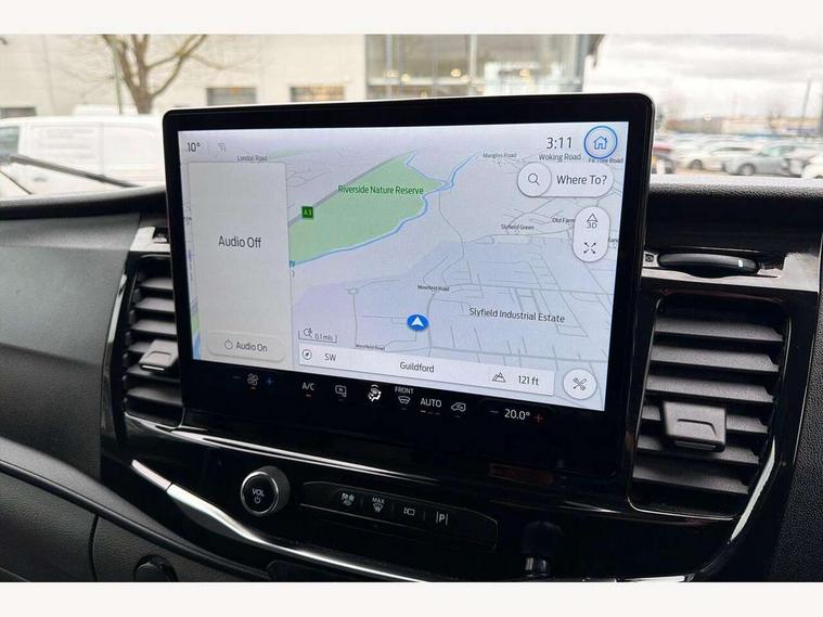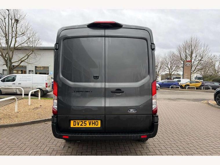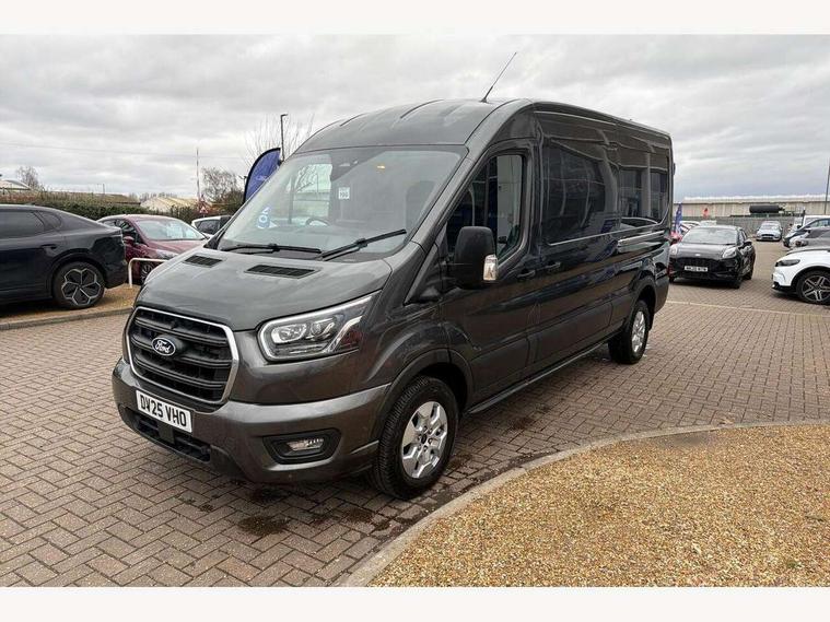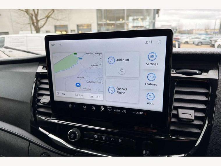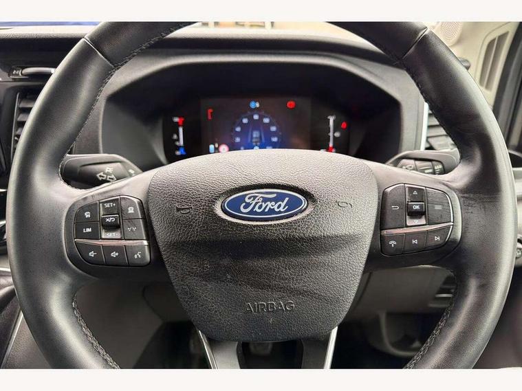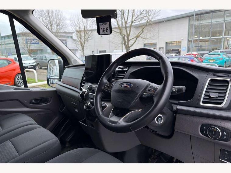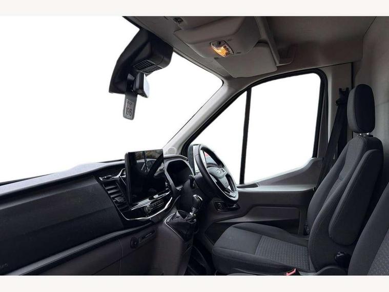 12" Touchscreen with SYNC4 navigation, 8" Part digital instrument cluster, Curvature Control, Easy fuel capless refuelling system, Emergency assistance, Emergency brake warning, Gearshift indicator light, Intelligent Speed Assist, PAS, Selectable drive mode, Vehicle maintenance monitor, Warning lights, Water in fuel filter with sensor, Wrong way alert, 4 radio speakers, Audio controls mounted on steering wheel, DAB Radio, Auto high headlamp, Automatic windshield wiper, Bi-Xenon headlights with LED daytime running lights, Body coloured lower front bumper, Body coloured upper front bumper, Digital rear view mirror, Driver large head/short arm mirror, Driver one touch up/down power windows, Electric windshield defroster, High intensity discharge headlamp with static cornering lights, High mounted stop lamp, Integrated indicators on door mirrors, Model badge, Plastic rear bumper, Quickclear heated windscreen, Rain sensing windscreen wipers, Rear fog lights, Rear mudflaps, Rear splash guards, Roof mounted radio antenna, Self coloured cargo door handle, Self coloured door handles, Self coloured front grille with chrome surround, Self coloured rear bumper with integral step, Static bending headlights, Wide bodyside self coloured mouldings, 2 litre twin facia mounted bottle holder, 4 spoke premium feel Sensico wrapped steering wheel, Automatic air conditioner with 12 inch multi function display, Driver sunglasses roof storage, Header mounted courtesy lights - 2 map lights, Leather gear shift knob, Leather steering wheel, Load compartment tie down loops, Lockable glove box lid, Overhead console, Partial molded headliner, Partial rubber inside floor cover, Radio with remote stalks, Reach and rake adjustable steering column, Storage box under dual passenger seat, Driver assistance pack 6 - Transit, Driver and passenger seatbelt reminder, Driver front seatbelt buckle pretensioner, Front passenger airbag deactivation, Tyre pressure sensors, Wireless beltminders, Configurable Unlocking, Door entry remote control unit 2 Fobs key, Locking wheel lug nut, Shielded power door deadlocks, Speed dependent power lock group, Two step door unlock system, Visible Vehicle Identification Number (VIN), 2 x 12V power outlets, ABS + ESP + Hill start assist, Auto start/stop system, Cold start (-20), Electric parking brake, Electronic dynamic cornering control, Front independent MacPherson struts, linear rate coil springs, stabiliser bar, gas pressurised shock absorbers and rear leaf springs, Non limited slip differential front axle, Rear axle Alt A - Narrow track, Side wind mitigation, 16" 5 spoke alloy wheels x 6.5, Delete wheel covers, P235/65 R16C BSW tyre size, Single rear wheels,